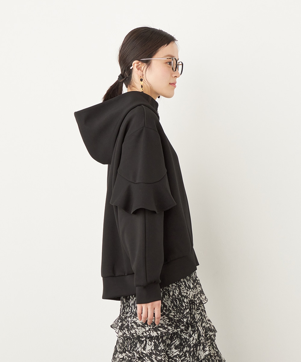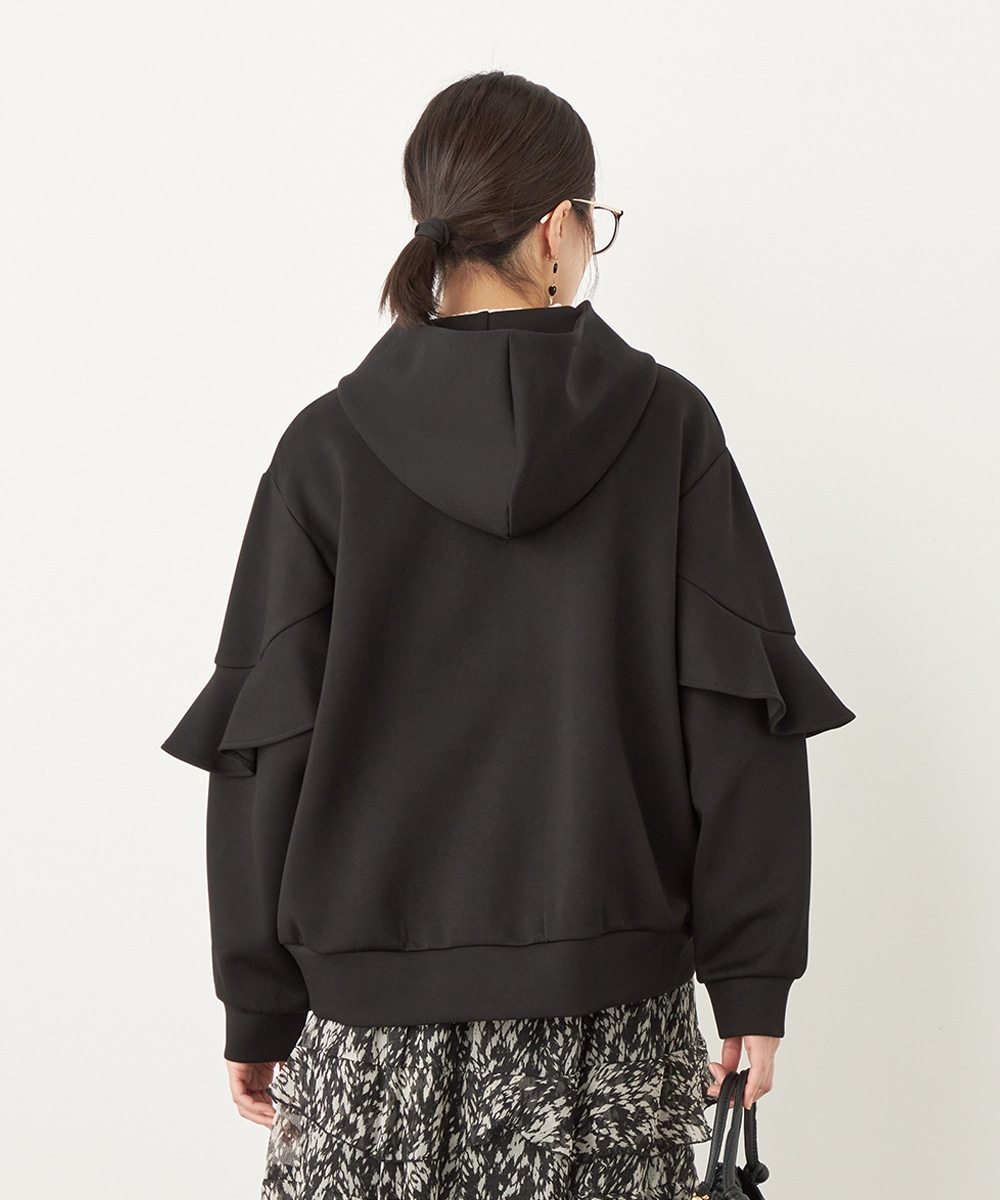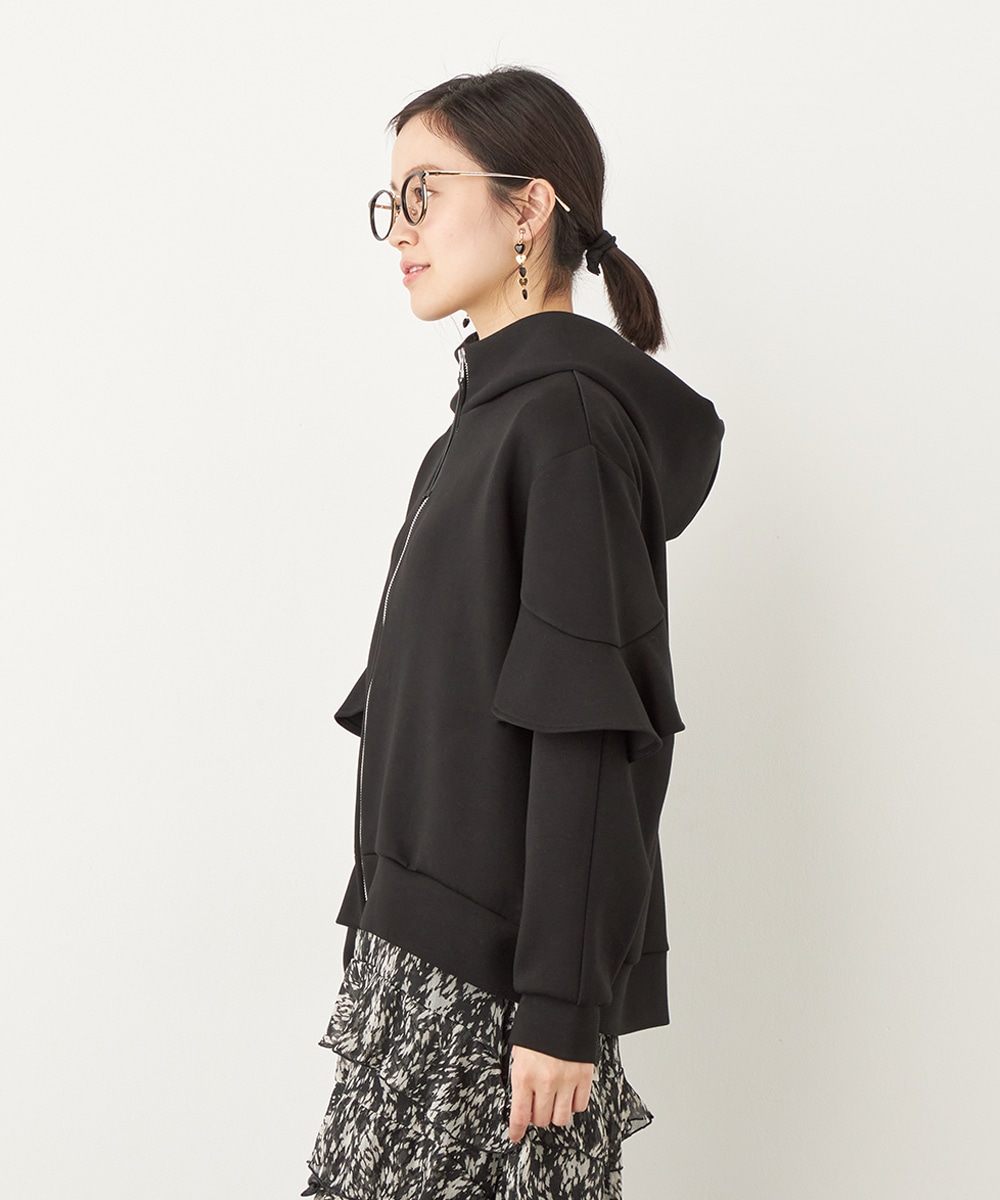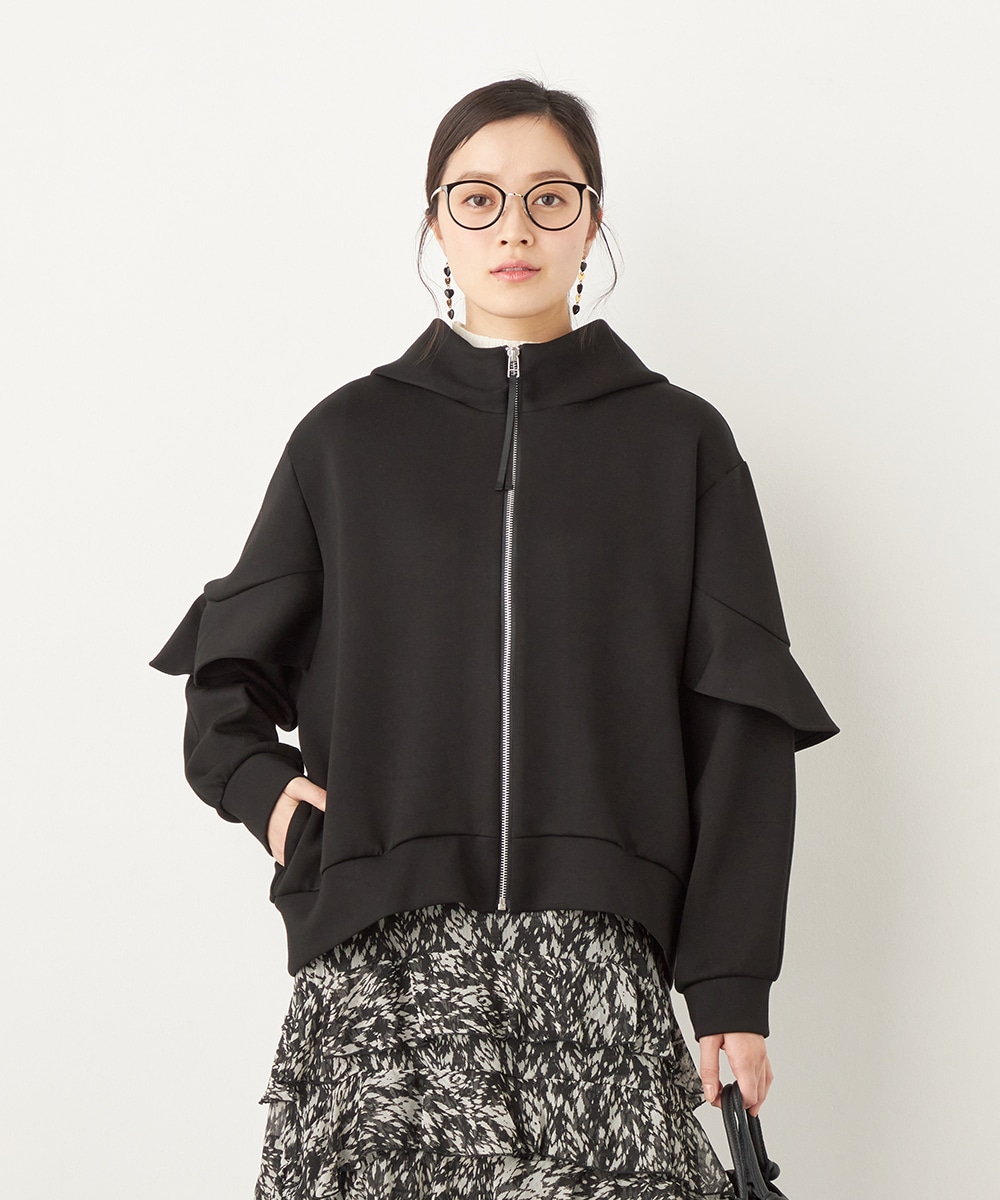 袖にあしらったフリルがフェミニンかつ華やかな印象のブルゾン。
