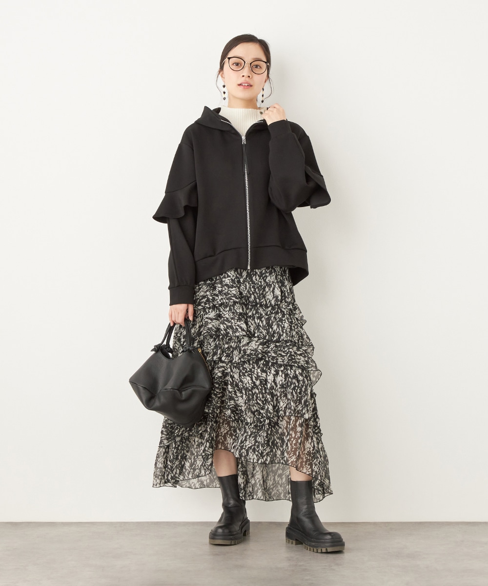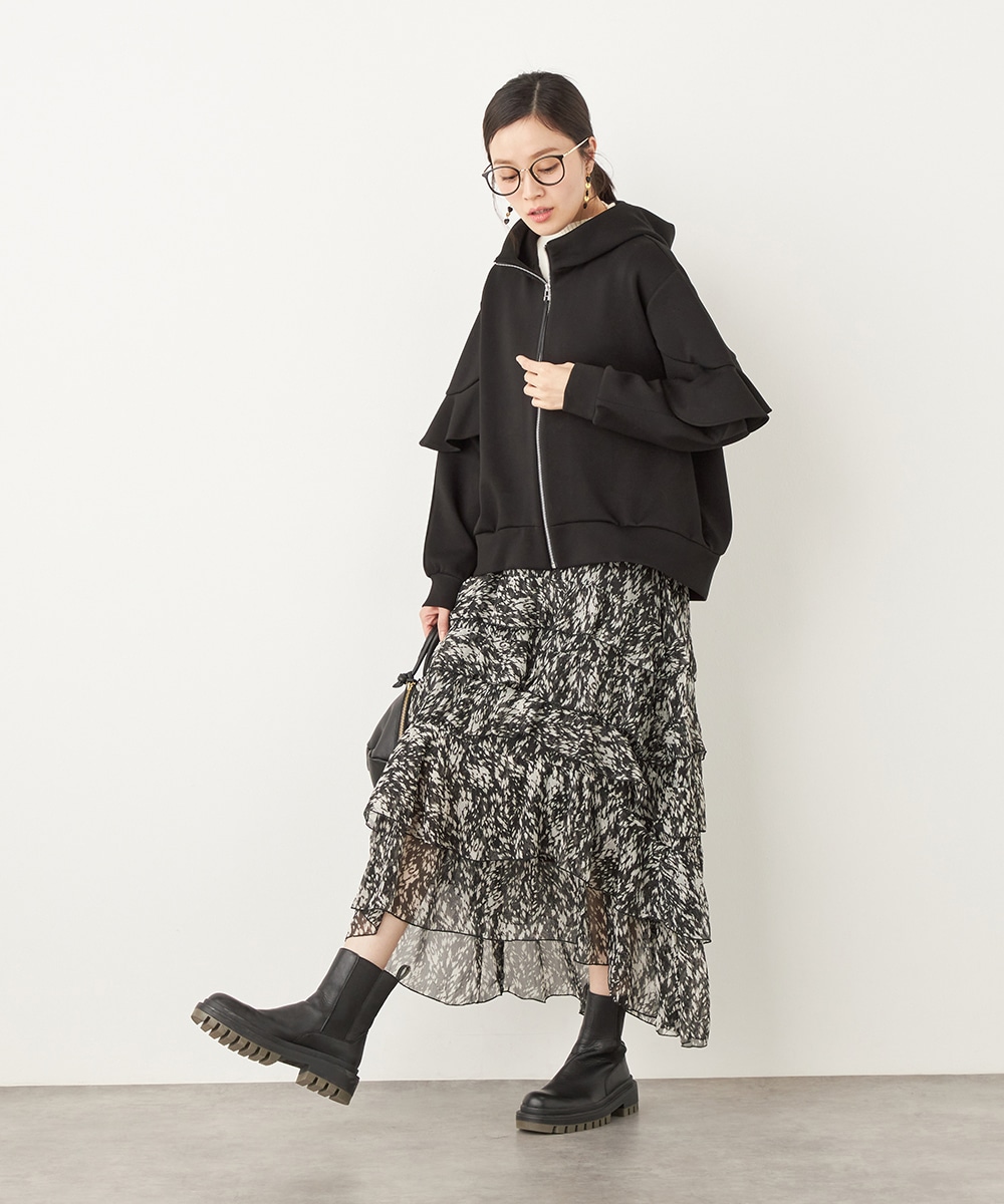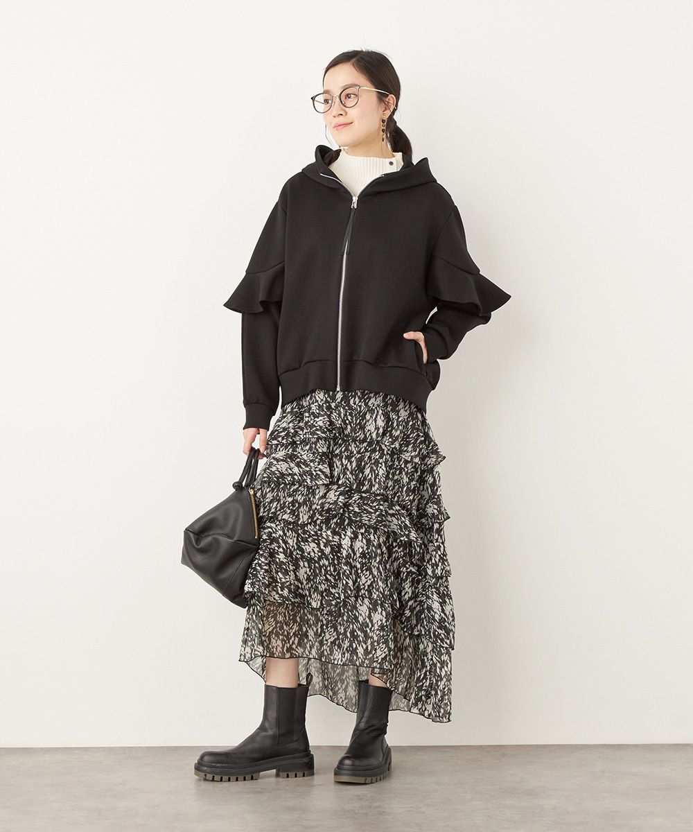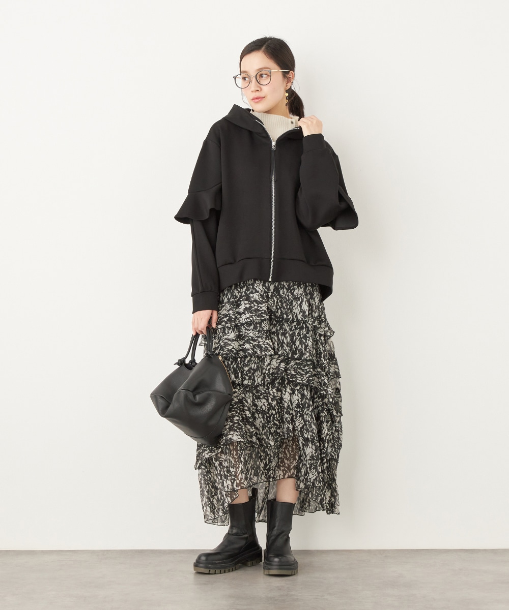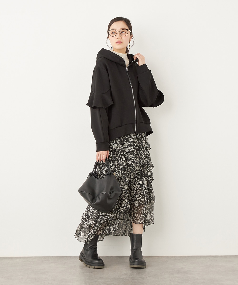 袖にあしらったフリルがフェミニンかつ華やかな印象のブルゾン。