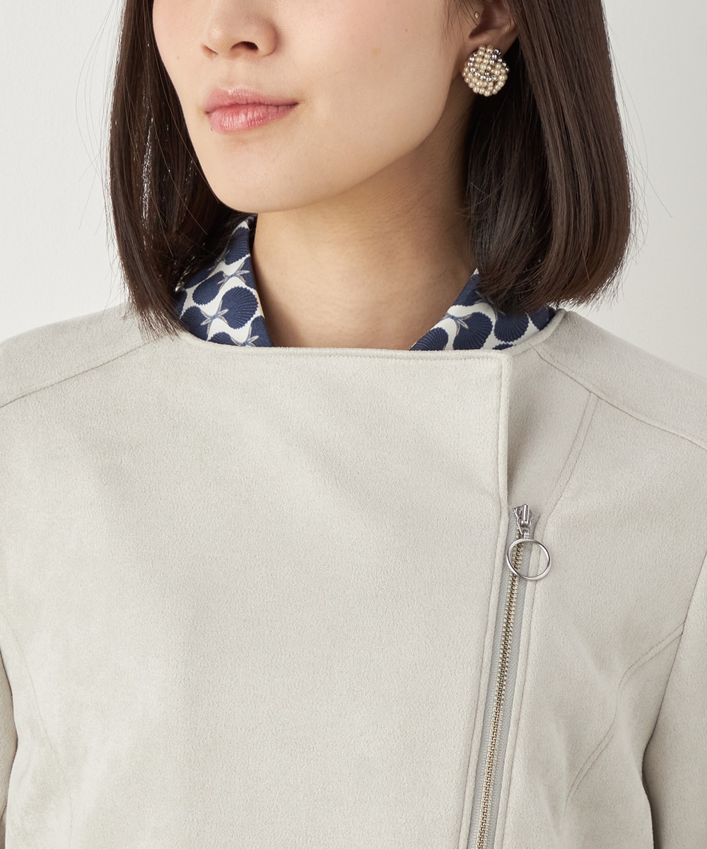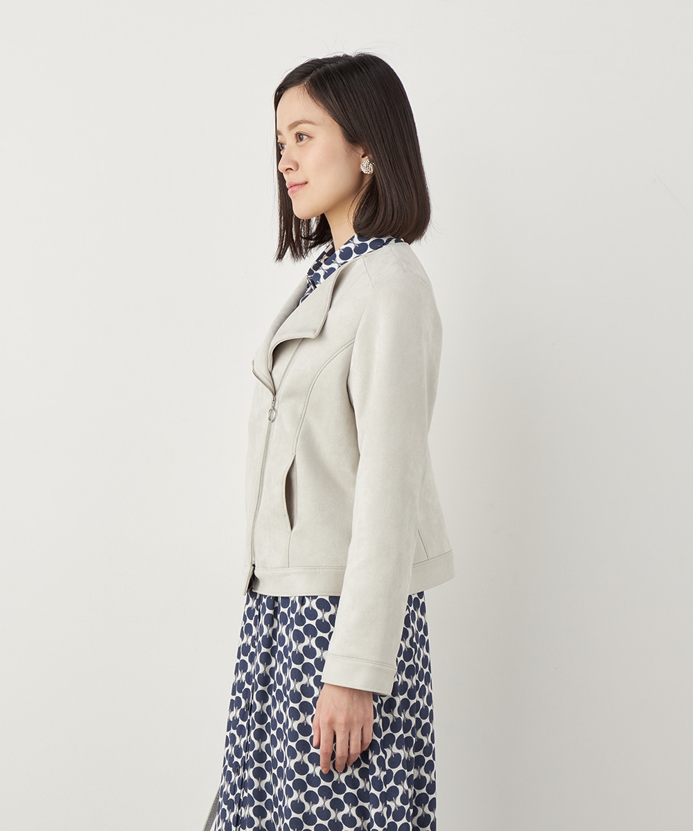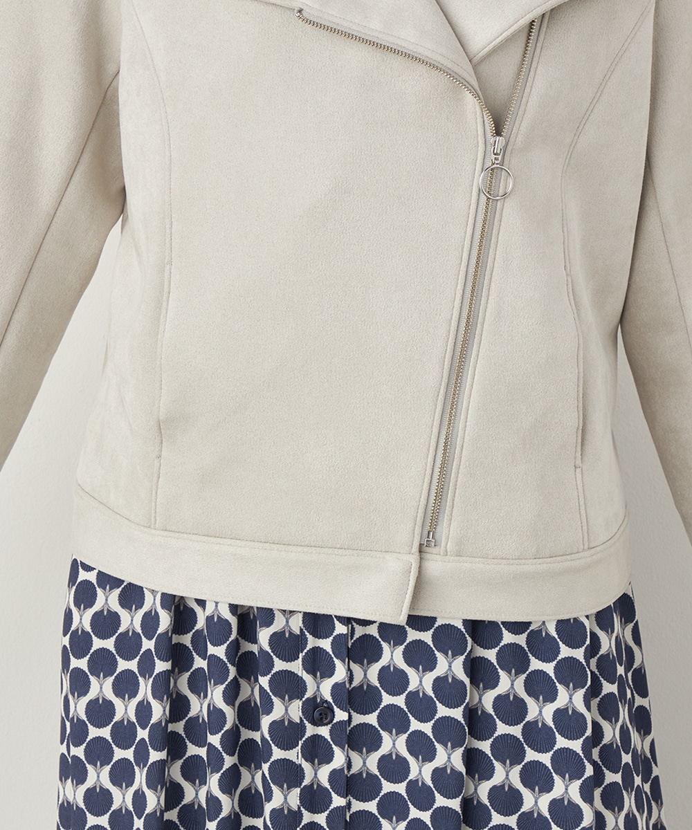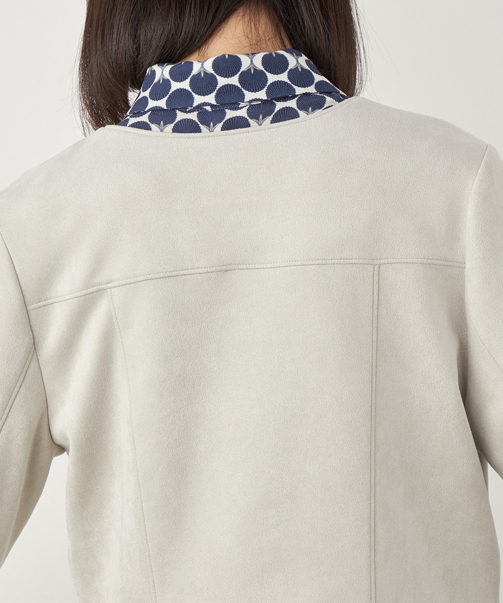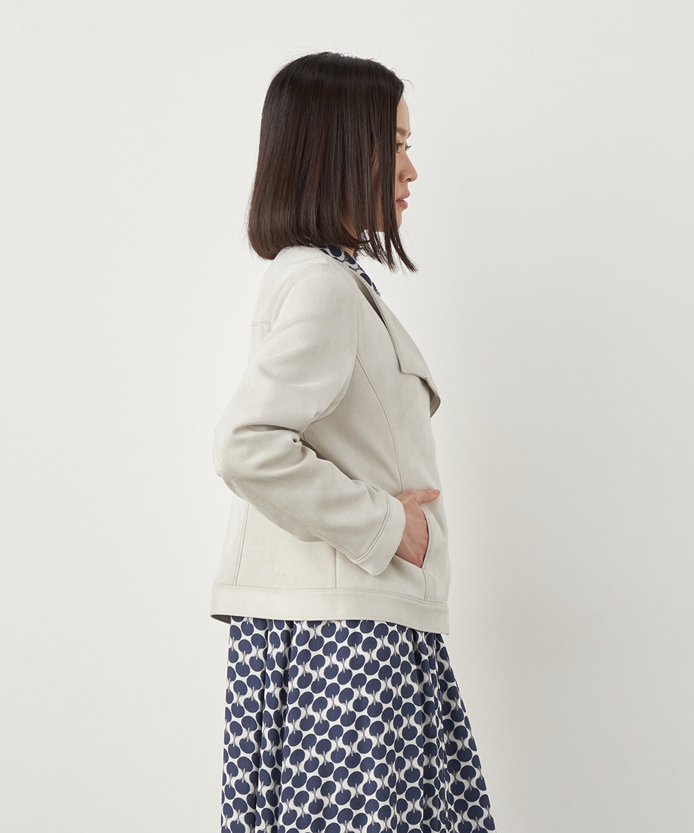 薄手でソフトな風合いのフェイクスウェード素材を使用。カーディガン感覚で羽織れるブルゾン。