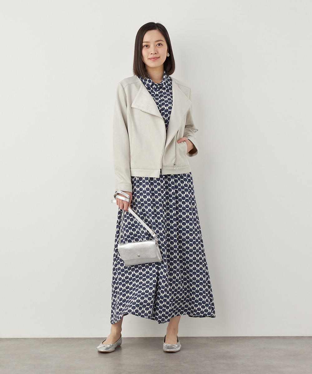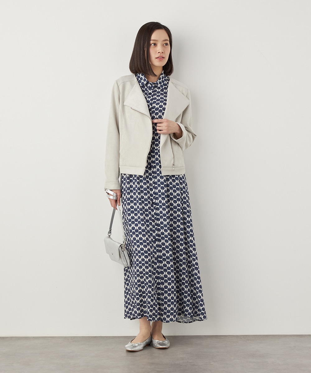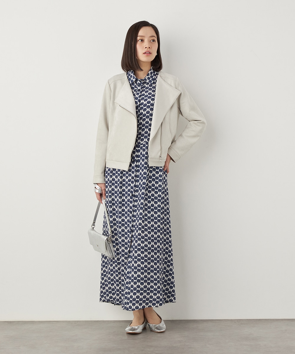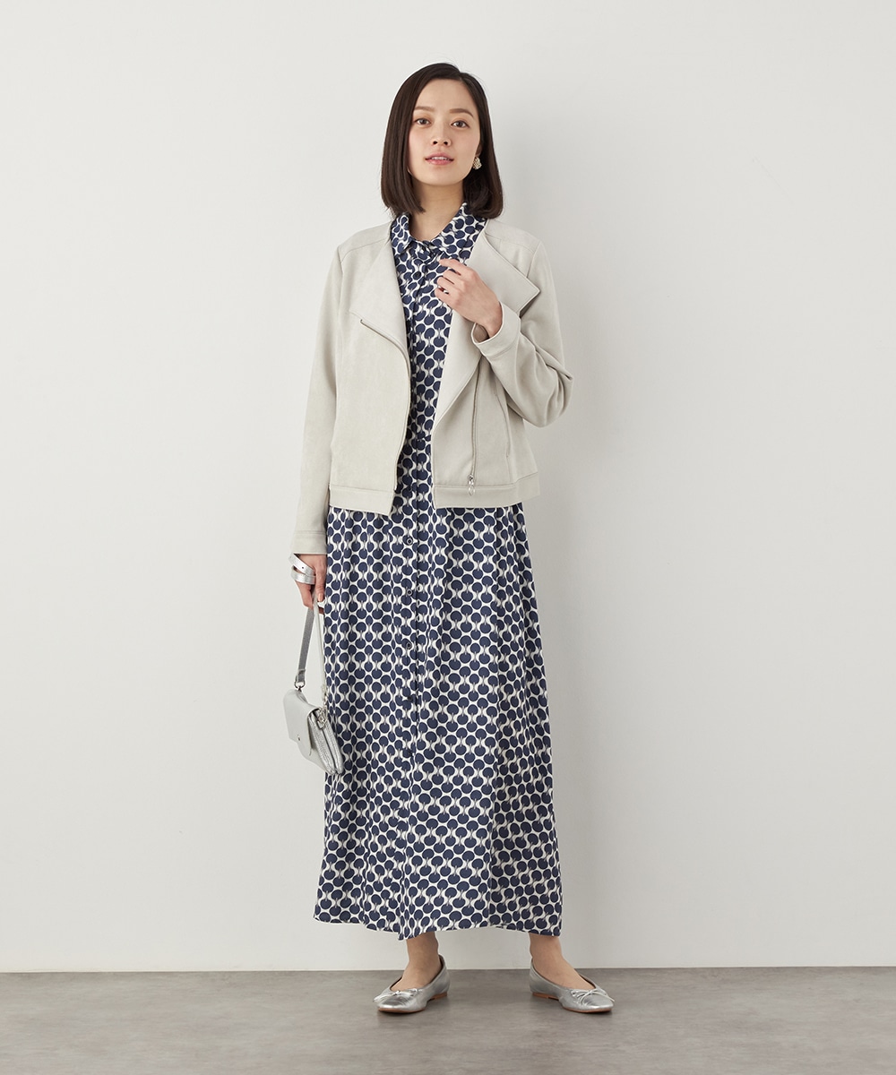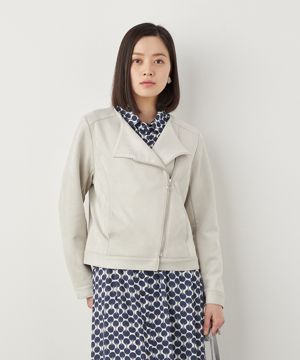 薄手でソフトな風合いのフェイクスウェード素材を使用。カーディガン感覚で羽織れるブルゾン。