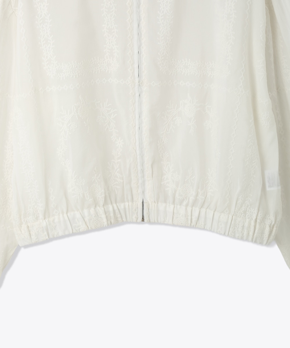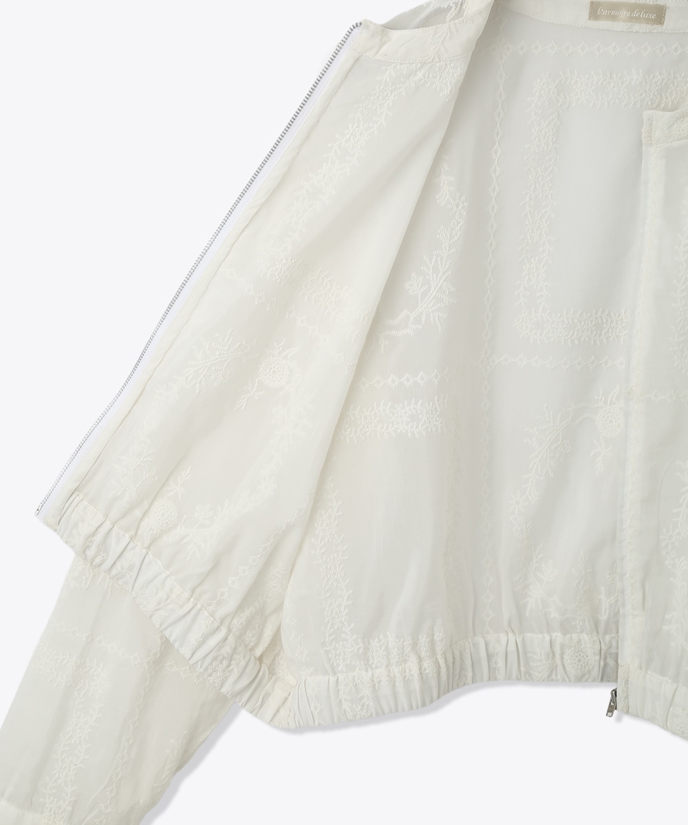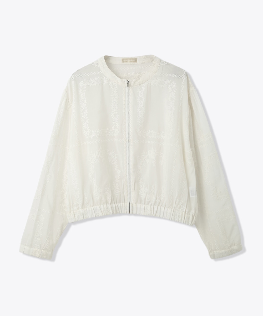 贅沢に総刺繍を施したブルゾン。やわらかな素材感と軽やかな仕上がりで、さっと羽織りやすいのが魅力です。ワンピースに重ねて女性らしくまとめたり、フレアスカートと合わせてやわらかなシルエットを活かした着こなしもおすすめです。さりげない華やかさをプラスしてくれます。