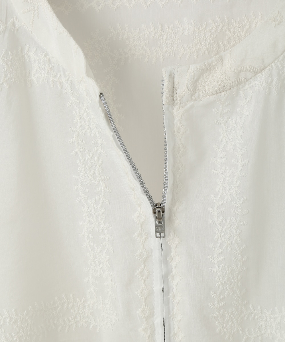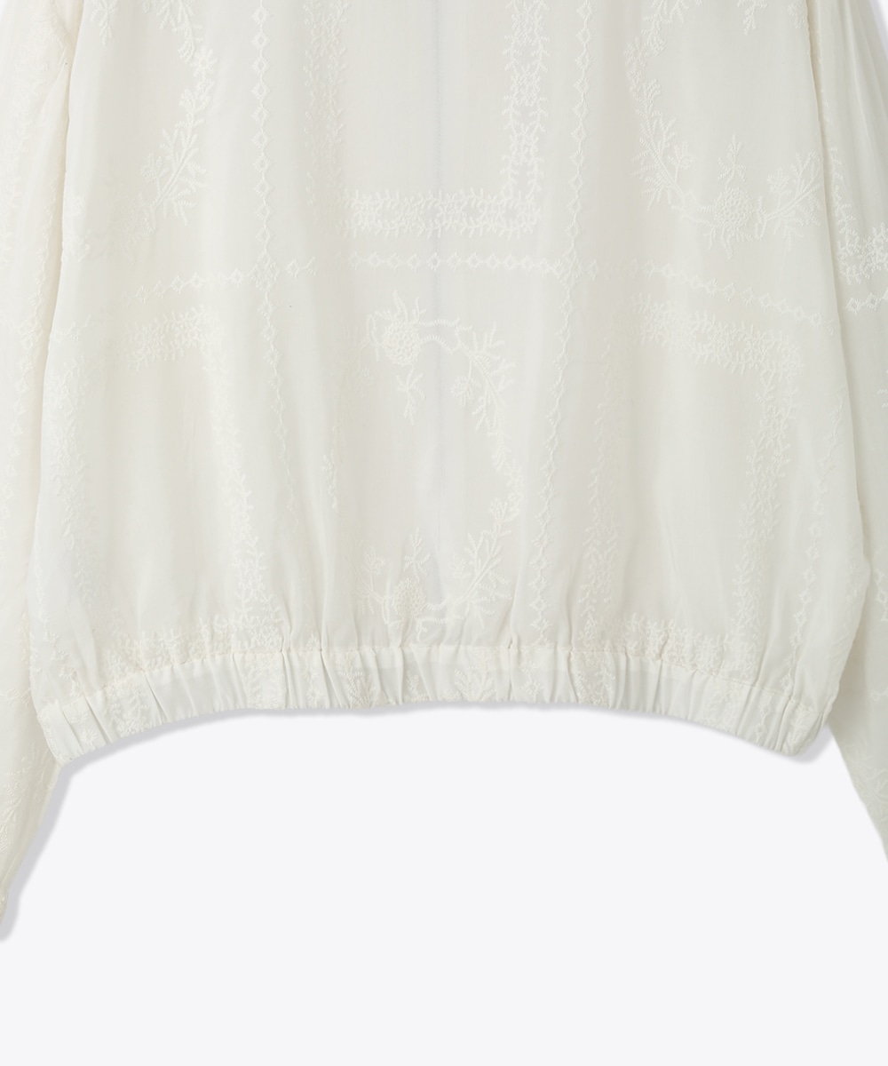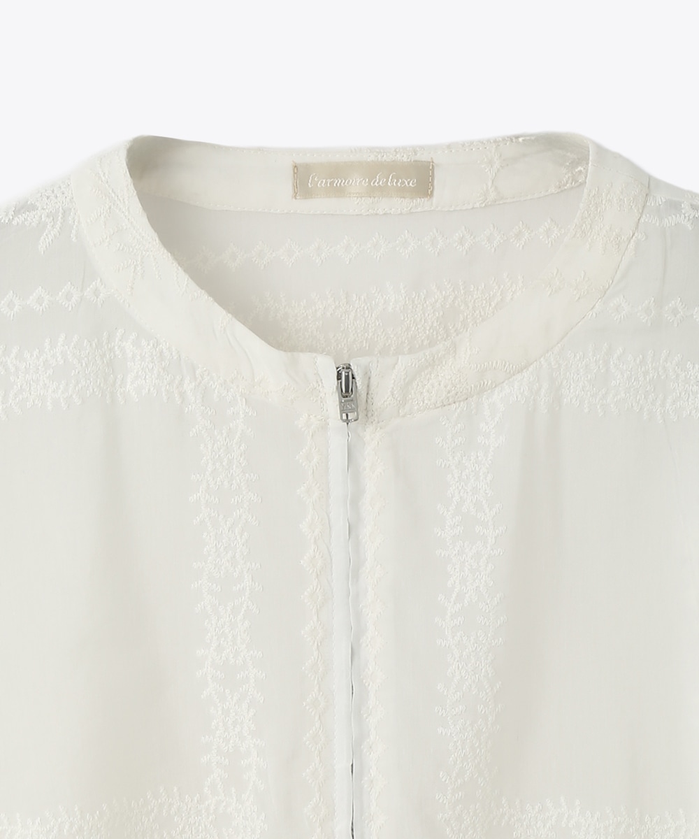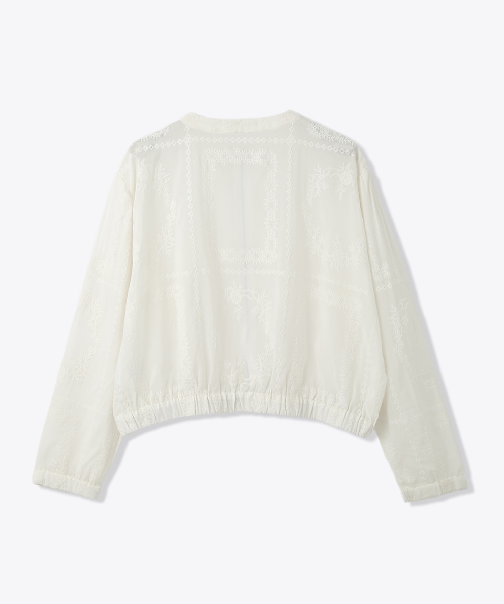 贅沢に総刺繍を施したブルゾン。やわらかな素材感と軽やかな仕上がりで、さっと羽織りやすいのが魅力です。ワンピースに重ねて女性らしくまとめたり、フレアスカートと合わせてやわらかなシルエットを活かした着こなしもおすすめです。さりげない華やかさをプラスしてくれます。
