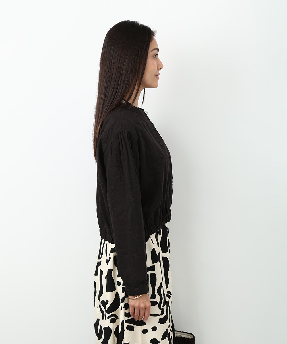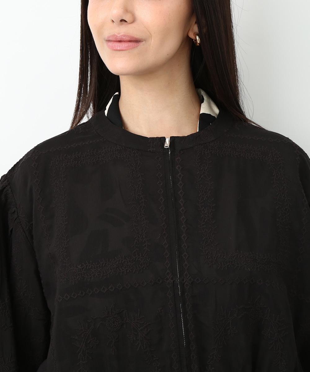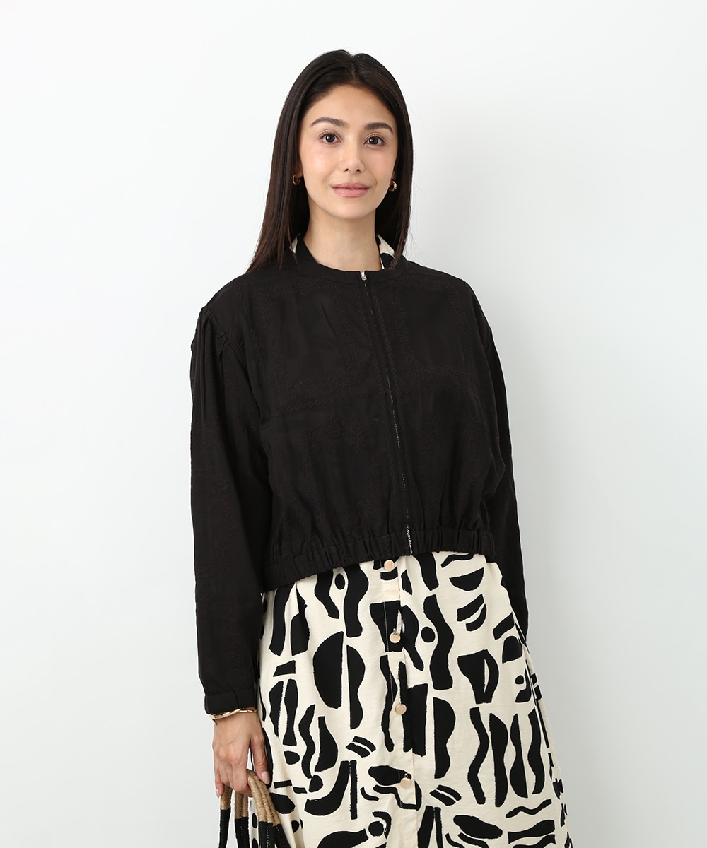 贅沢に総刺繍を施したブルゾン。やわらかな素材感と軽やかな仕上がりで、さっと羽織りやすいのが魅力です。ワンピースに重ねて女性らしくまとめたり、フレアスカートと合わせてやわらかなシルエットを活かした着こなしもおすすめです。さりげない華やかさをプラスしてくれます。
