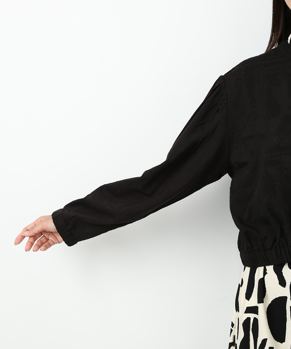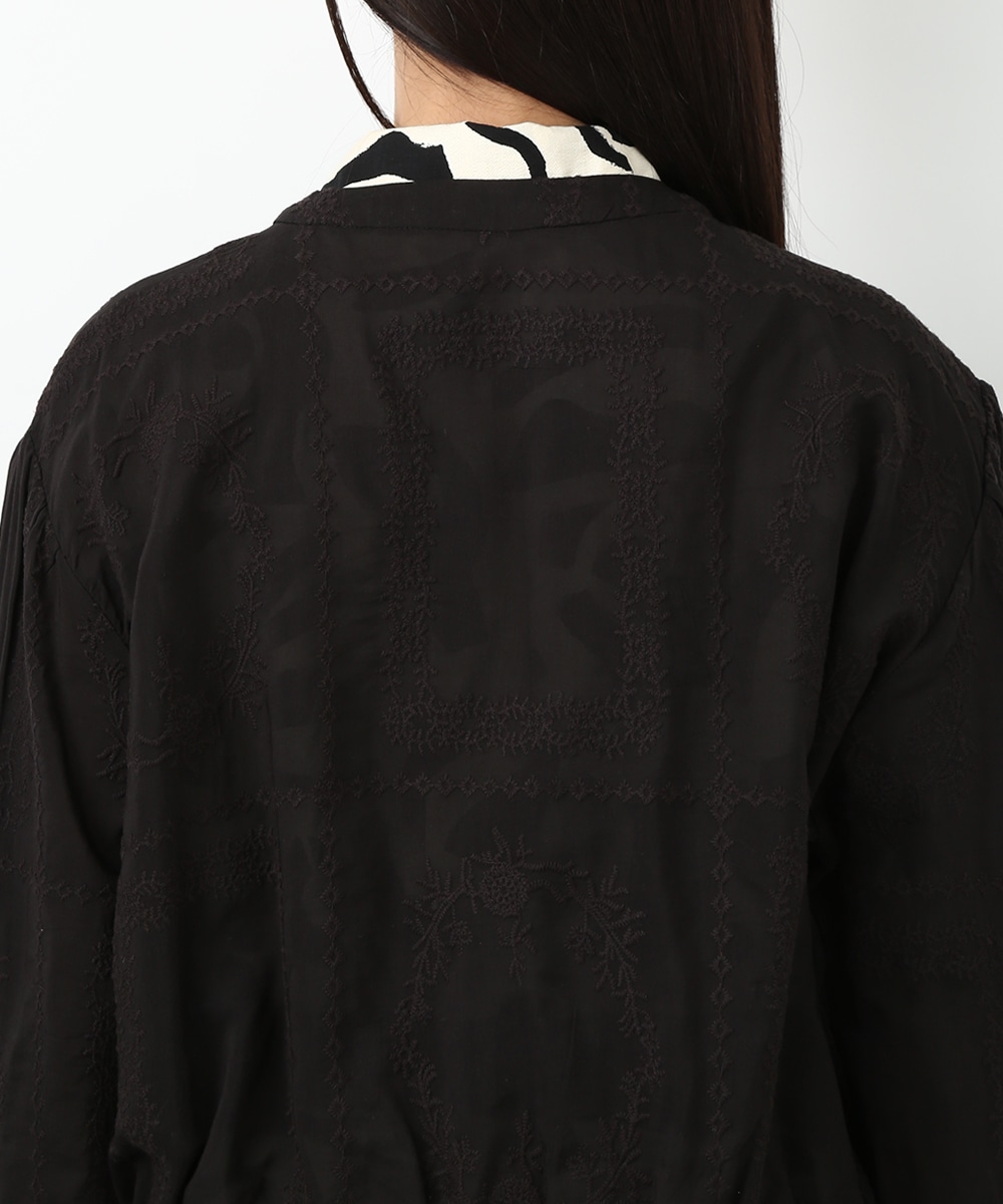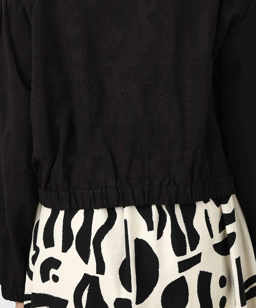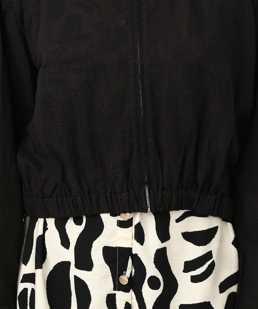 贅沢に総刺繍を施したブルゾン。やわらかな素材感と軽やかな仕上がりで、さっと羽織りやすいのが魅力です。ワンピースに重ねて女性らしくまとめたり、フレアスカートと合わせてやわらかなシルエットを活かした着こなしもおすすめです。さりげない華やかさをプラスしてくれます。