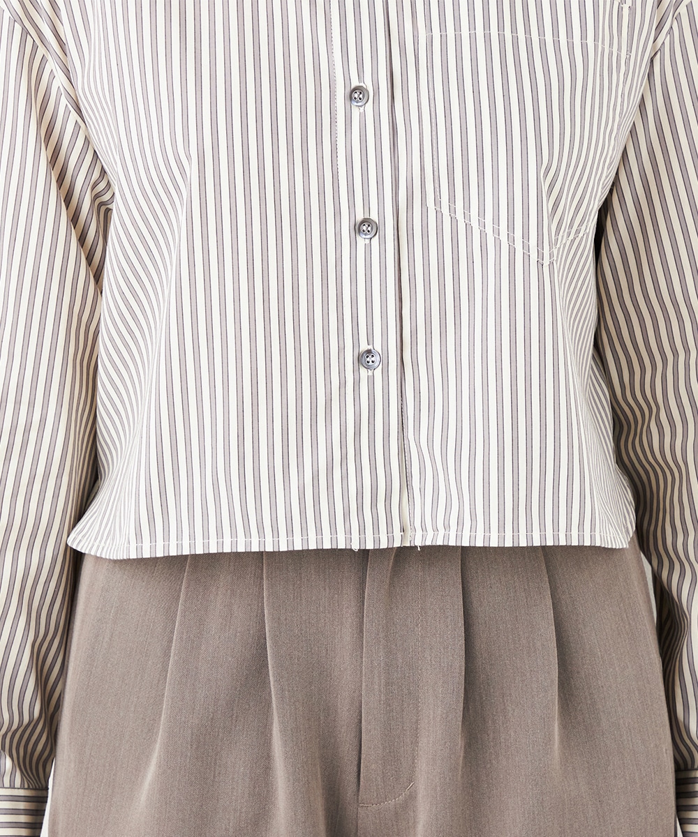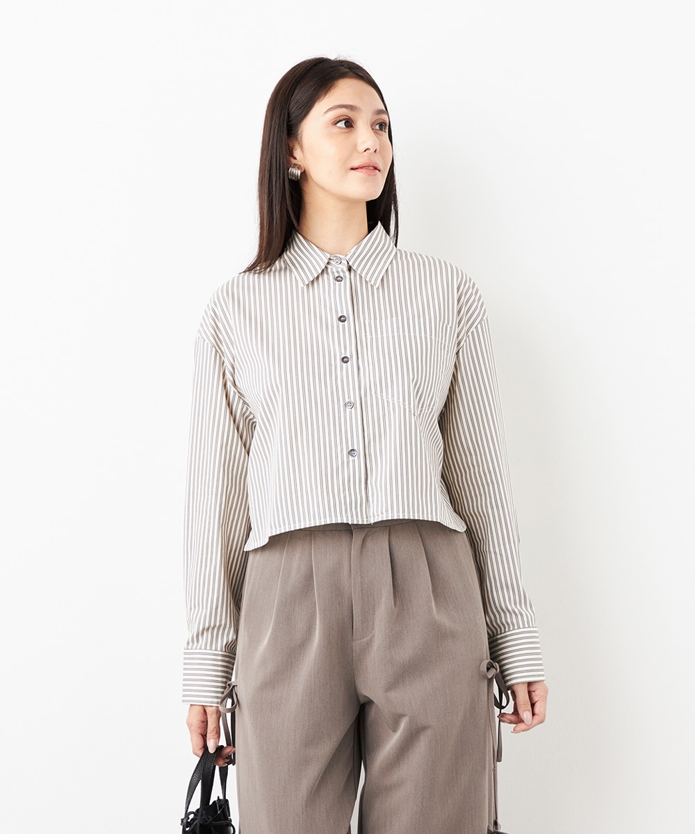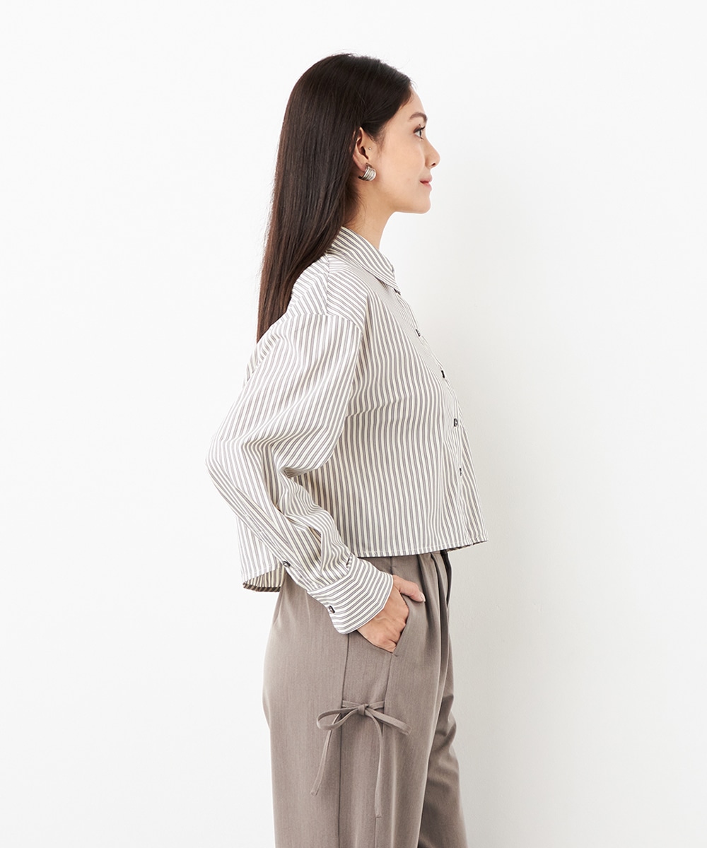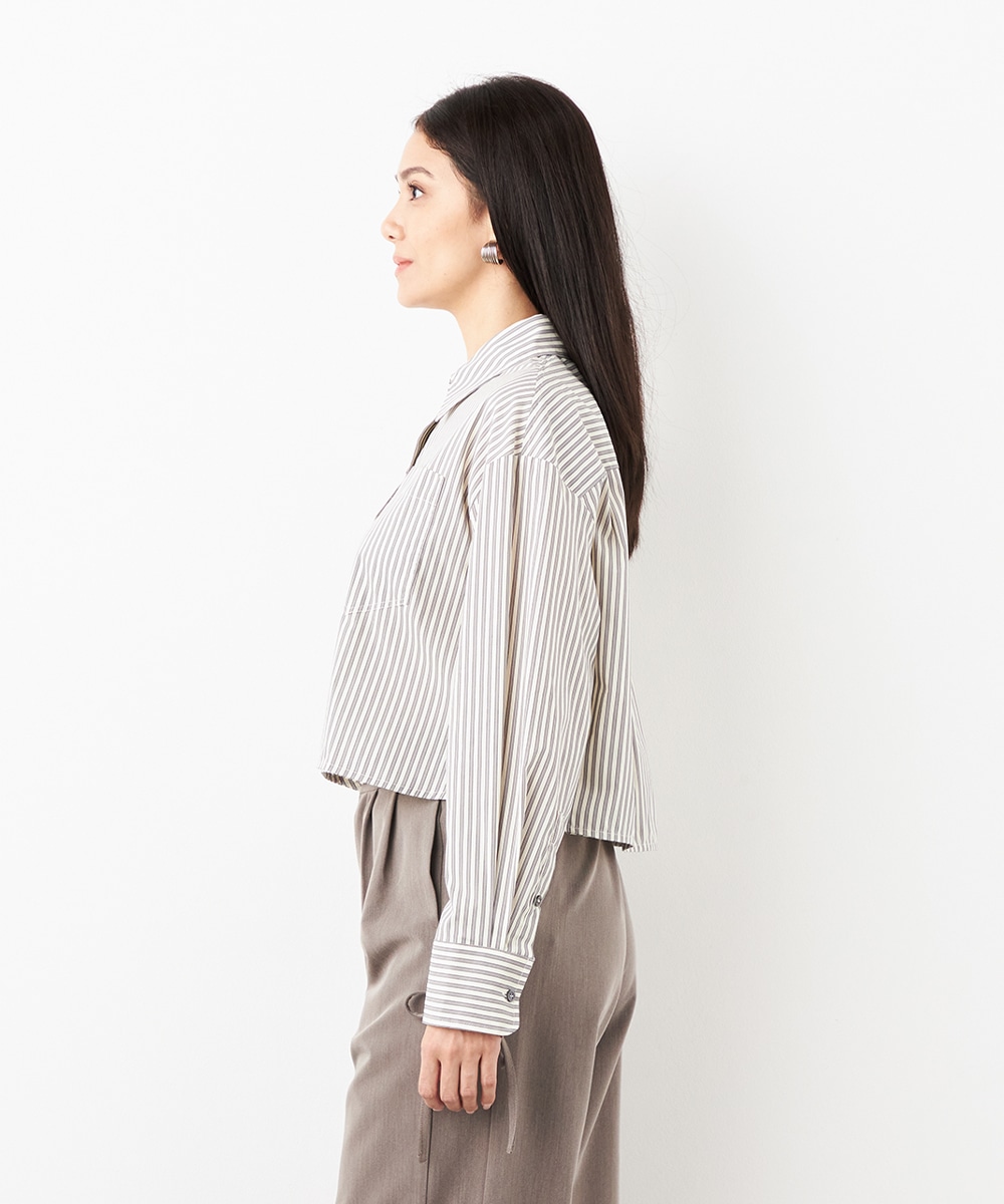 大きめの胸ポケットがカジュアルなアクセントとして効いています。すっきりと着こなせてボトムスを選ばないショート丈のデザイン。シルエットはゆったりとして、リラックス感を印象付けます。一枚着として活用するのはもちろん、羽織として取り入れるのもかわいさが出ておすすめです。