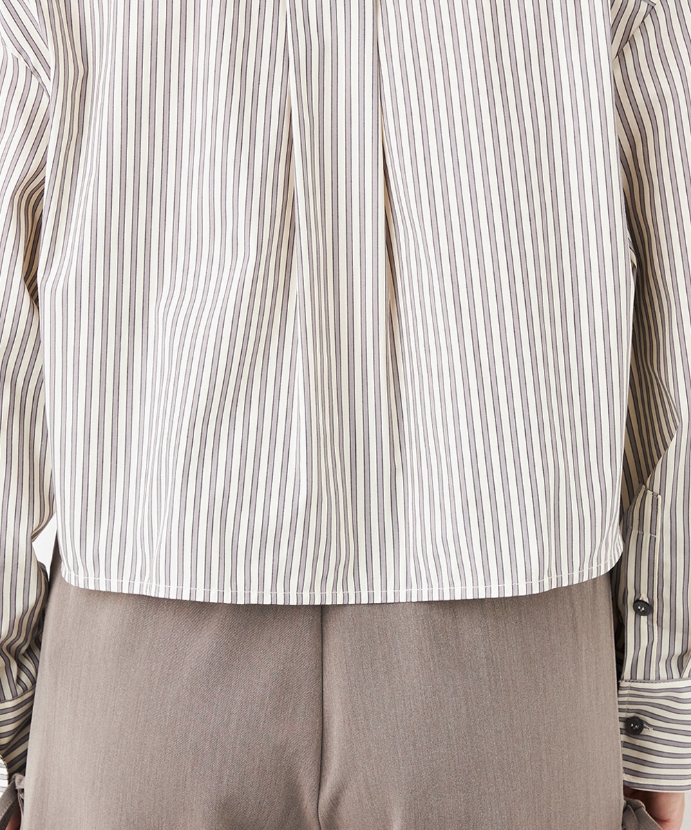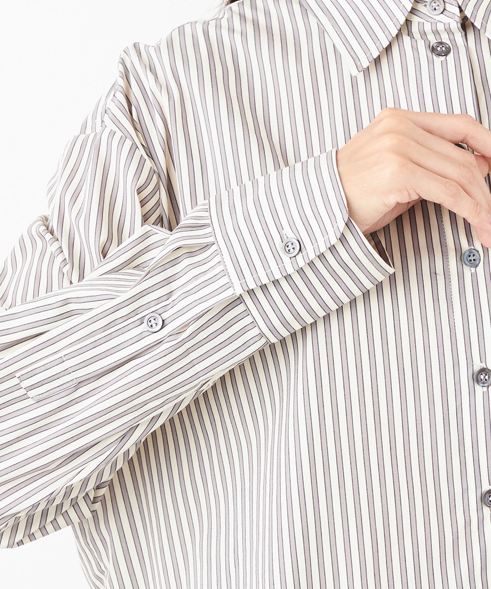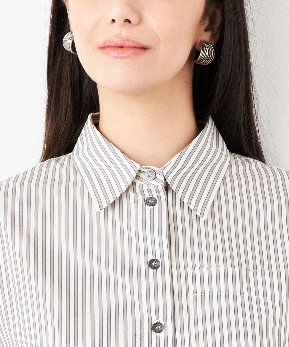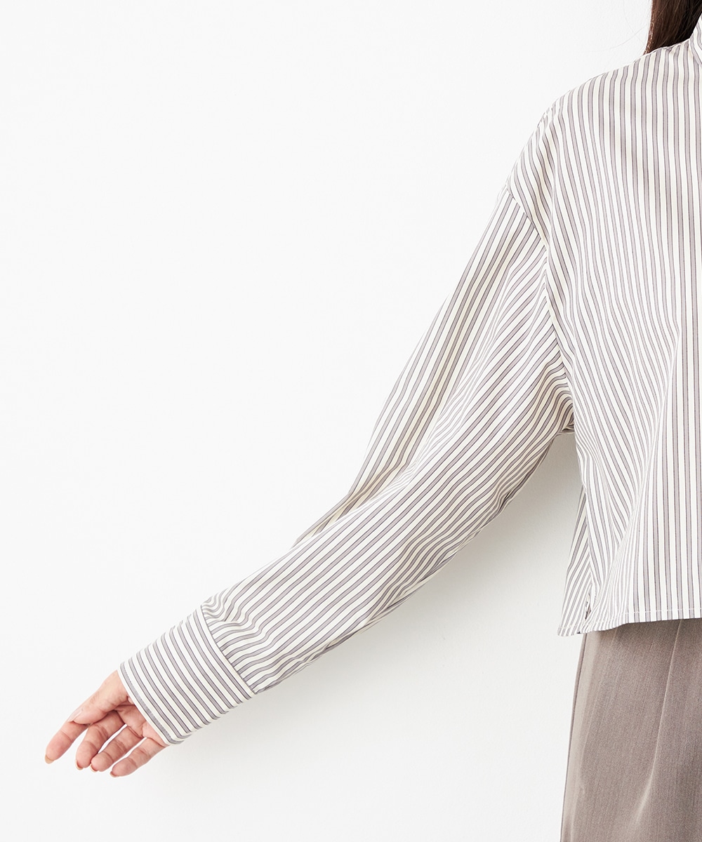 大きめの胸ポケットがカジュアルなアクセントとして効いています。すっきりと着こなせてボトムスを選ばないショート丈のデザイン。シルエットはゆったりとして、リラックス感を印象付けます。一枚着として活用するのはもちろん、羽織として取り入れるのもかわいさが出ておすすめです。
