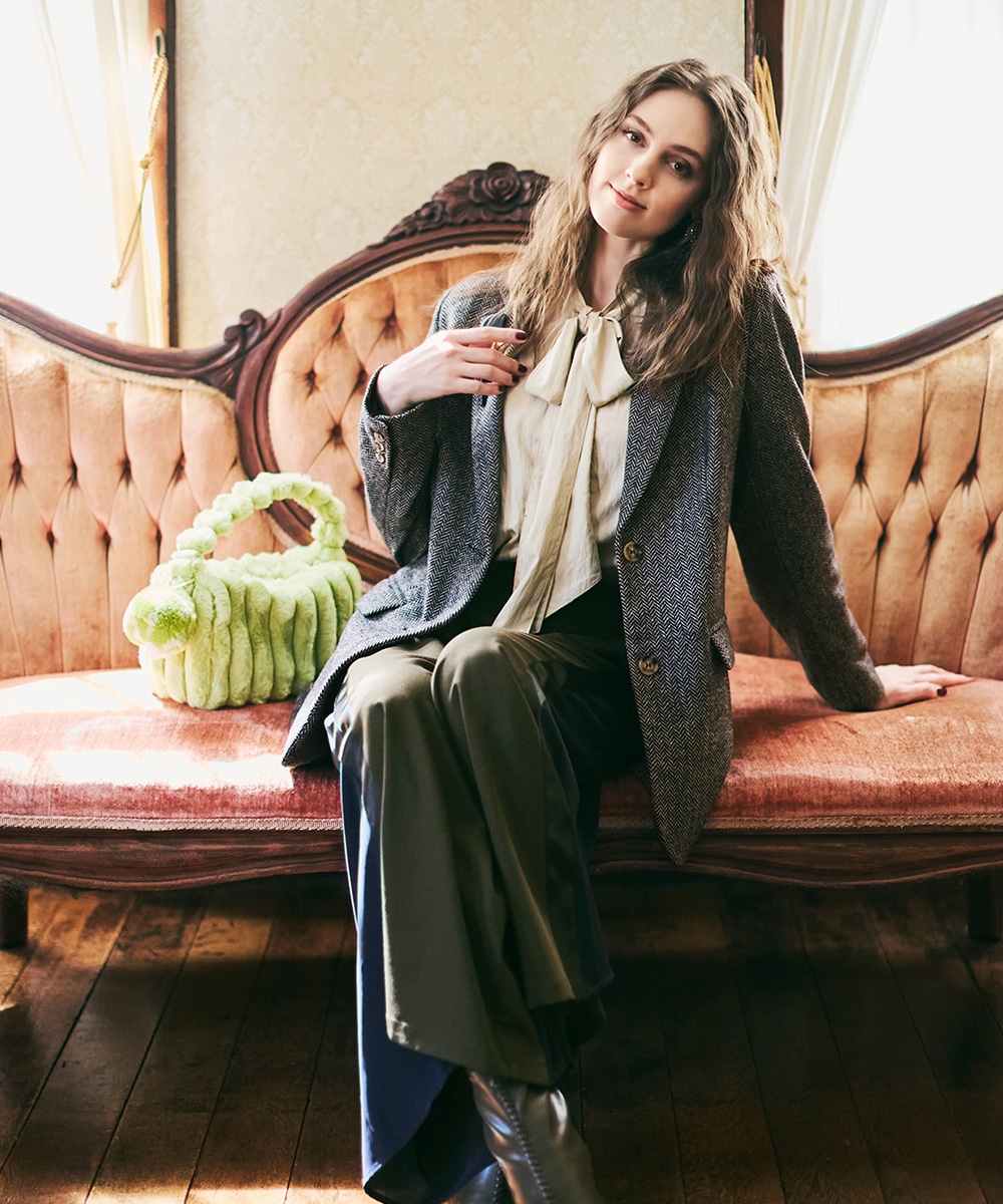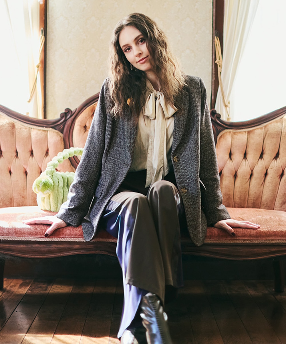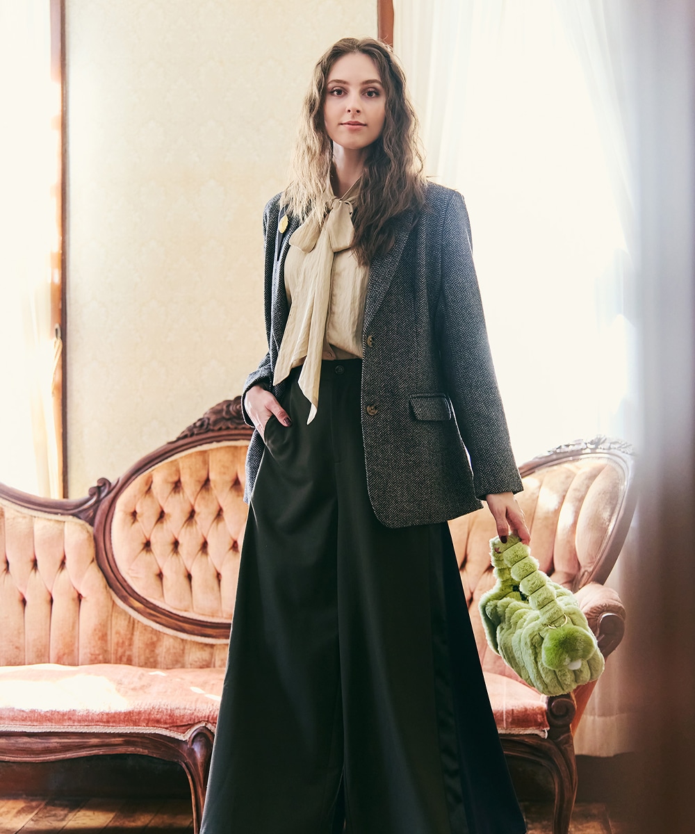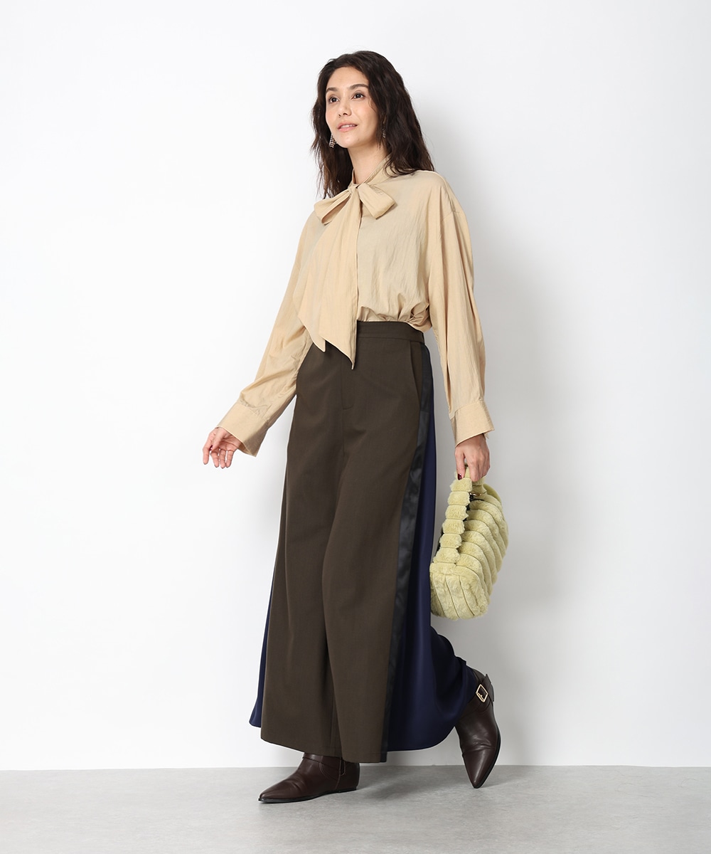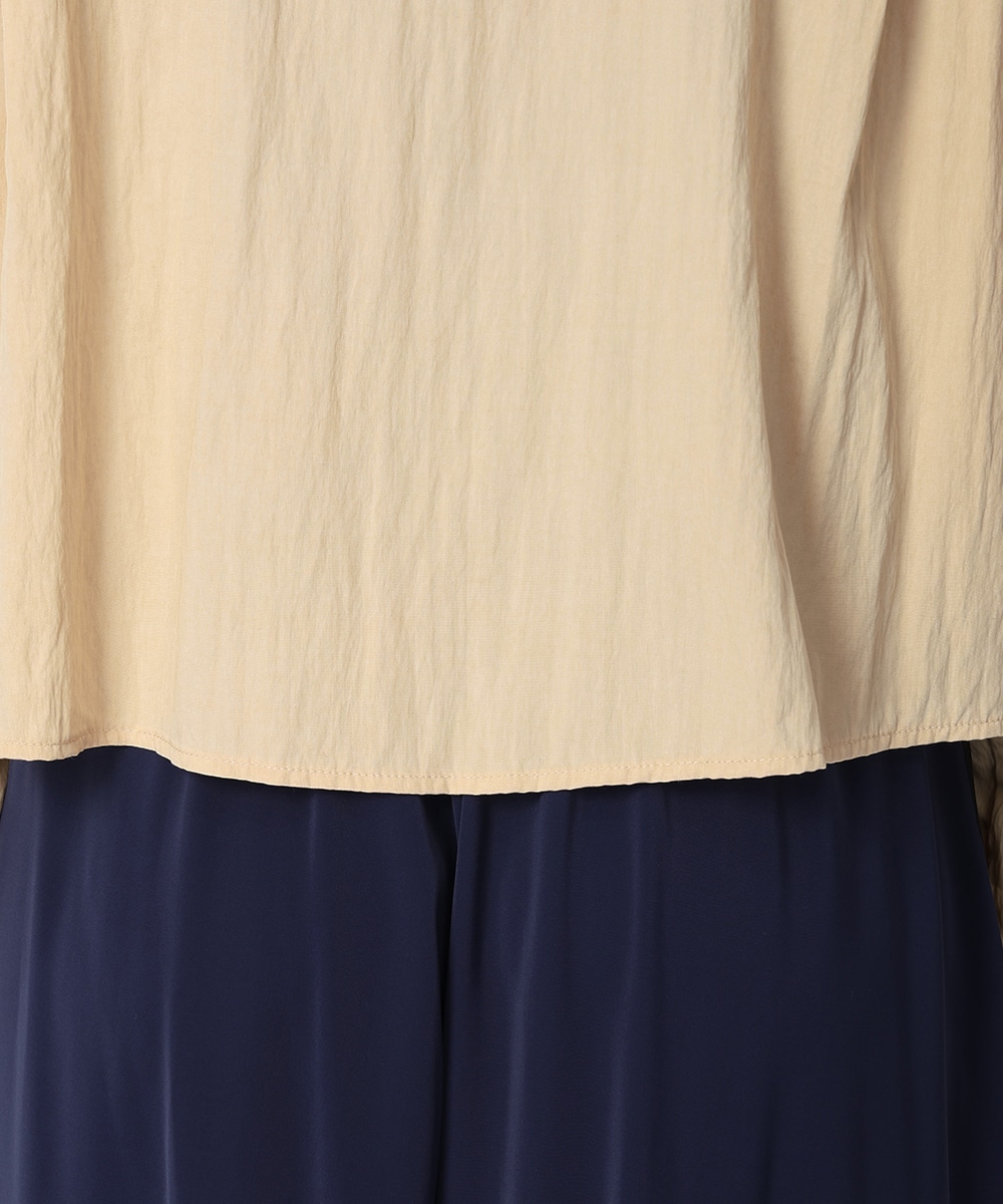 長めのボウタイリボンが胸元にアクセントをプラスし、大人可愛いスタイリングを演出。柔らかな生地感で程よいゆとりがあり、着用しやすいのも嬉しいポイント。共布ボタンを合わせたシンプルさと上品なベージュカラーも魅力です。カジュアルからキレイめな着こなしにと、幅広いコーディネートにも活躍してくれる1枚です。