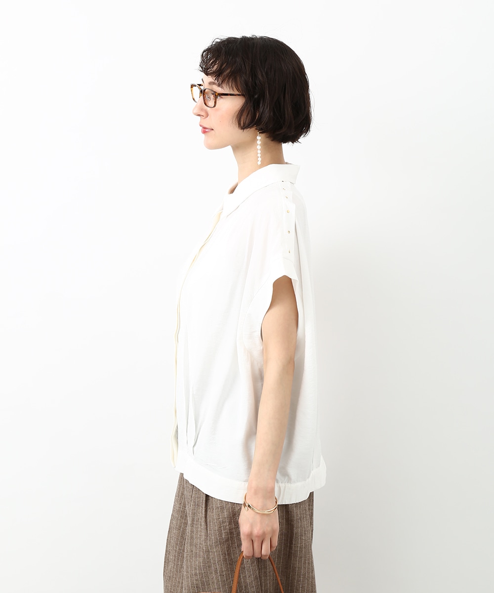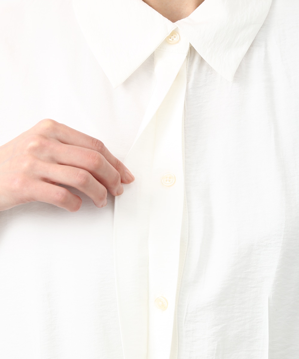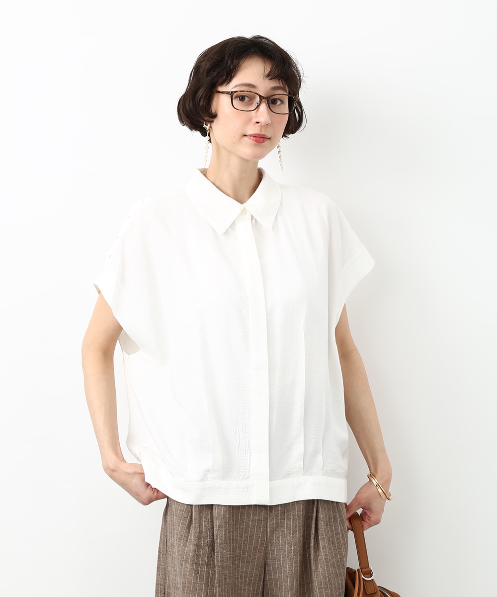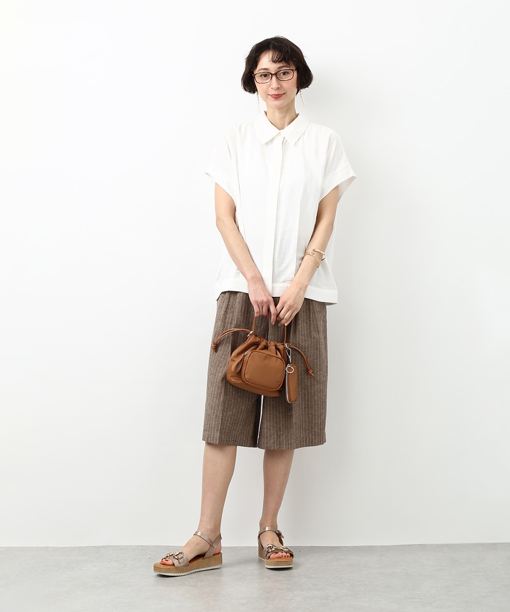 ウエストにタックを入れた丸みのあるコクーンシルエットのシャツ。ゆとりのあるサイズ感で軽やかに着られ、すっきりとした印象に仕上がるのもポイント。ハーフパンツを穿いて軽やかにまとめた、季節感のある着こなしもおすすめです。夏の羽織りとしても取り入れやすい1枚です。