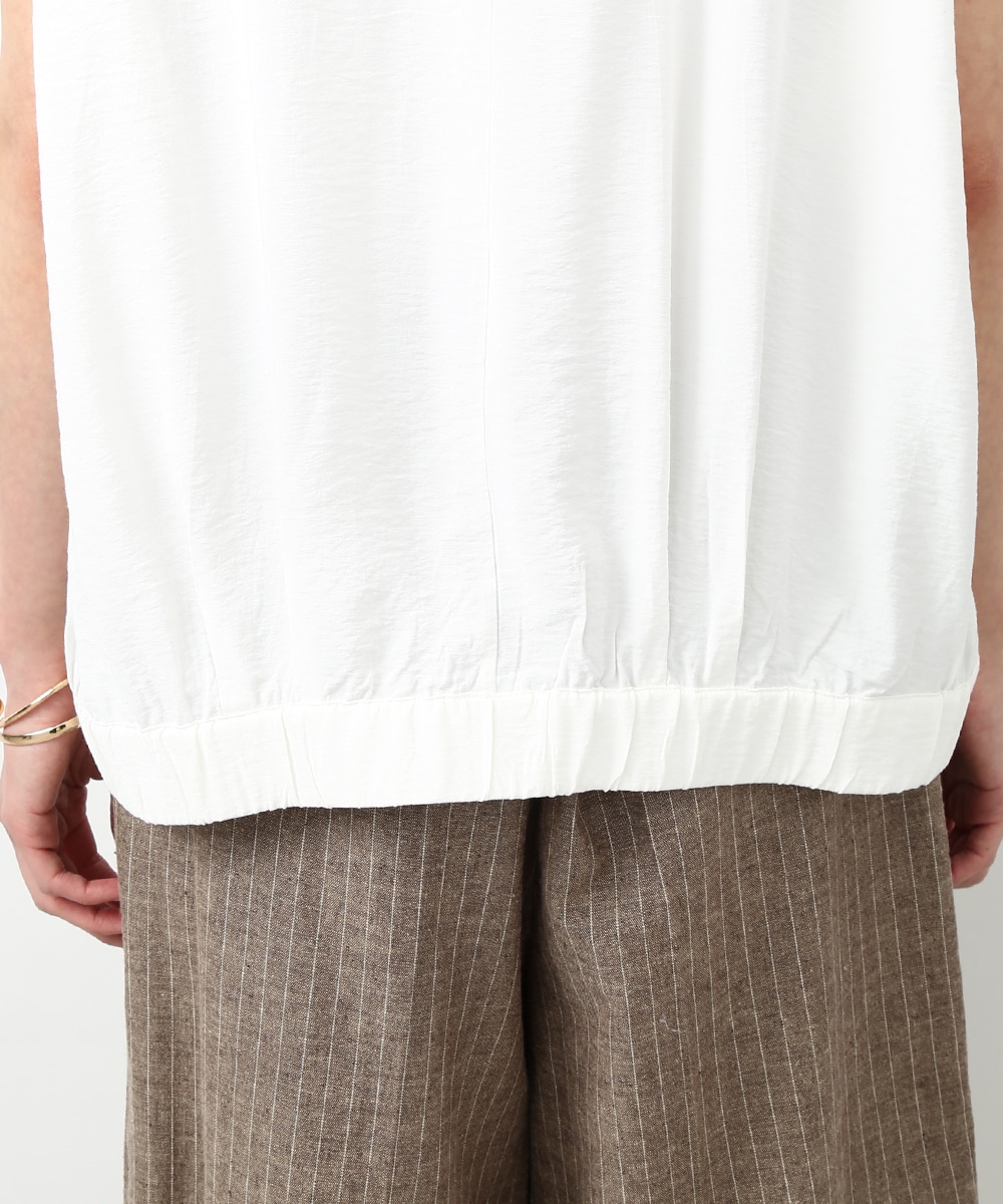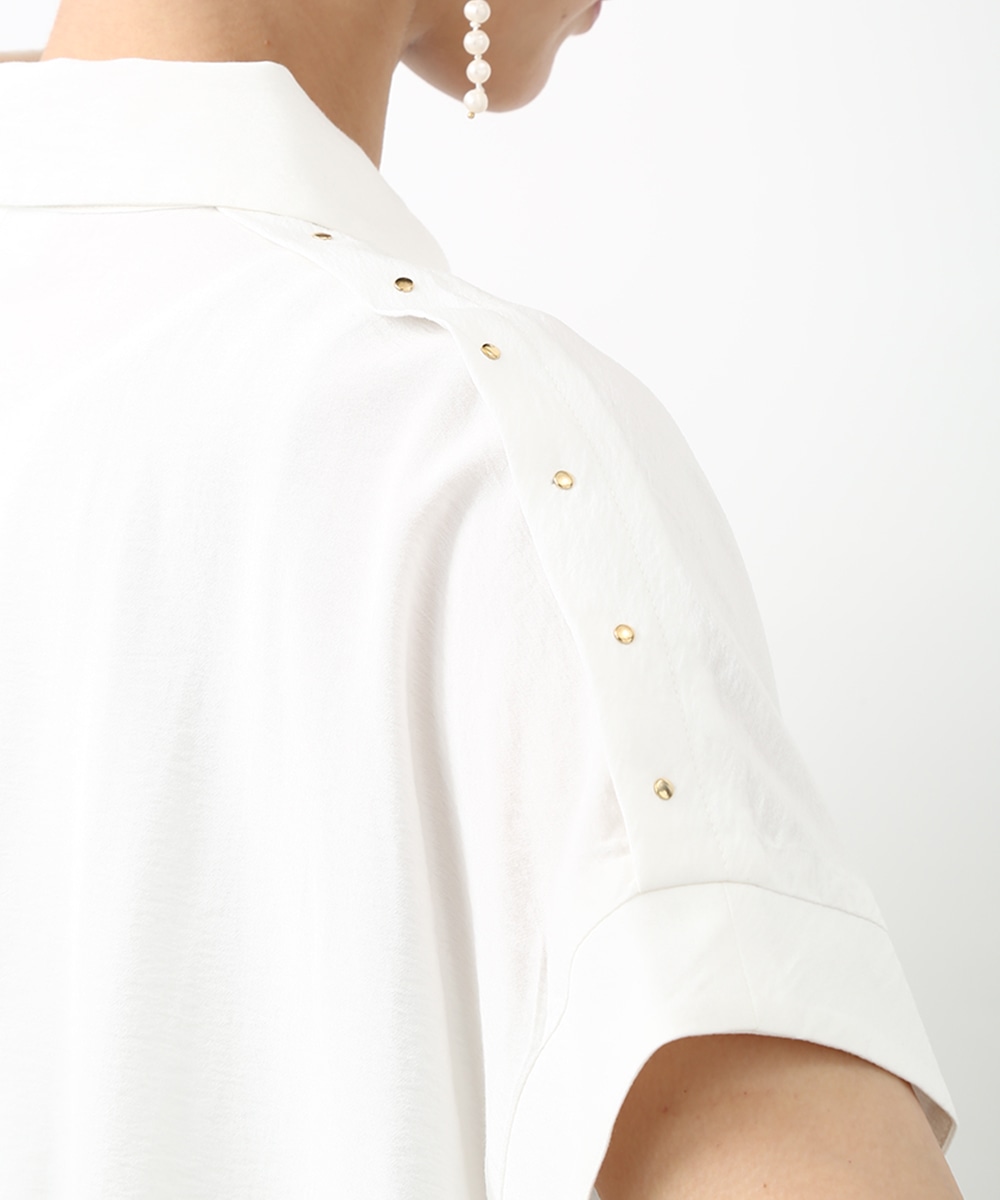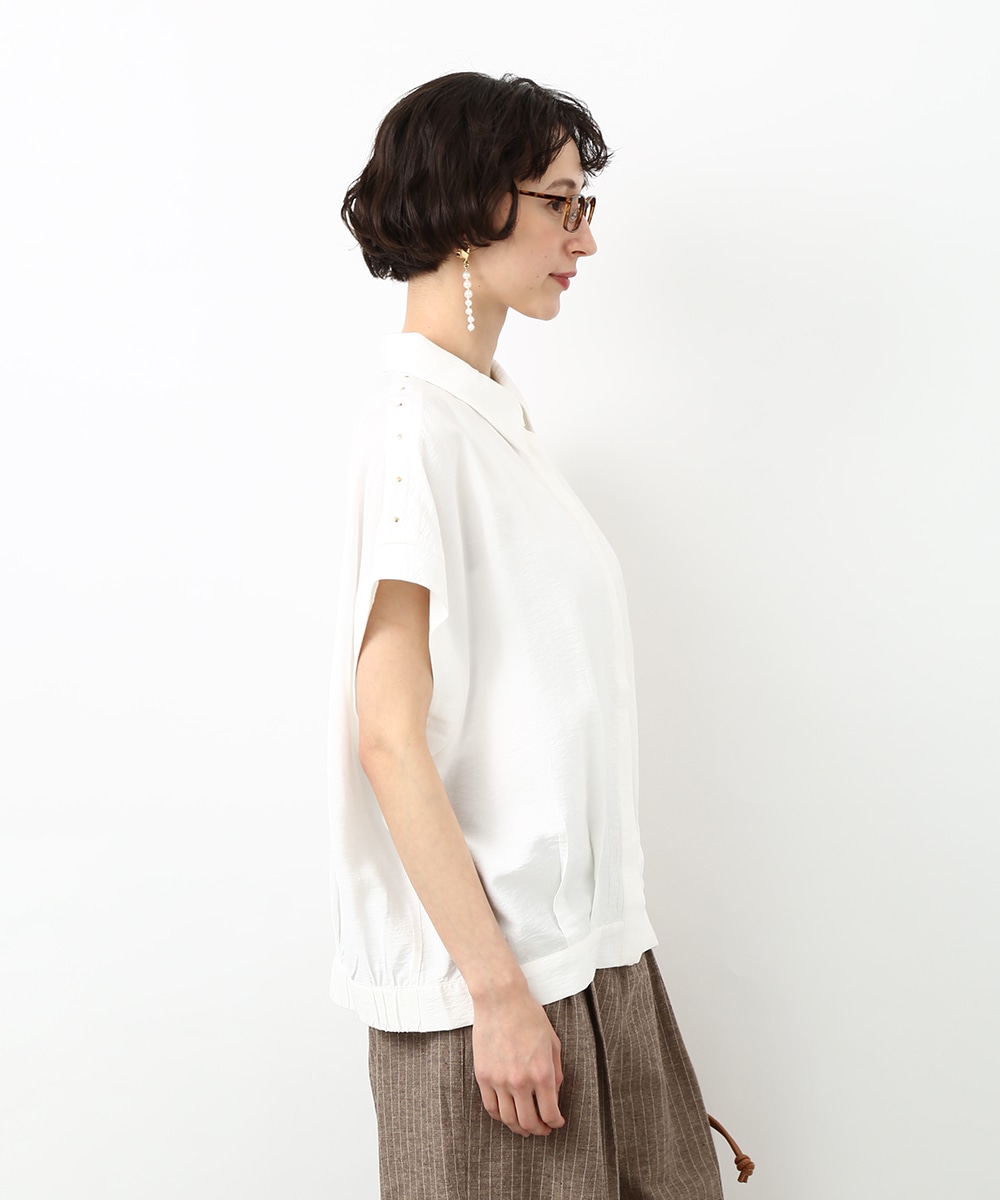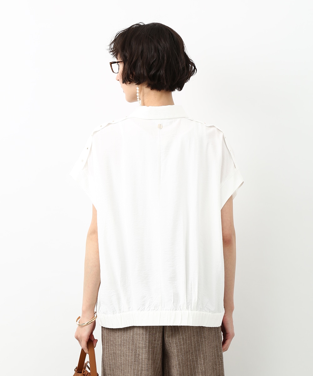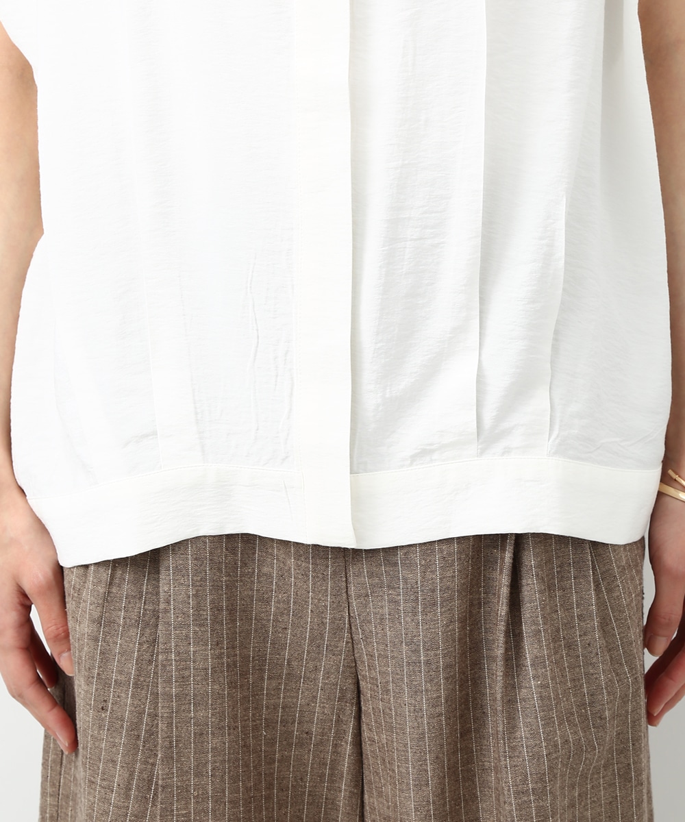 ウエストにタックを入れた丸みのあるコクーンシルエットのシャツ。ゆとりのあるサイズ感で軽やかに着られ、すっきりとした印象に仕上がるのもポイント。ハーフパンツを穿いて軽やかにまとめた、季節感のある着こなしもおすすめです。夏の羽織りとしても取り入れやすい1枚です。