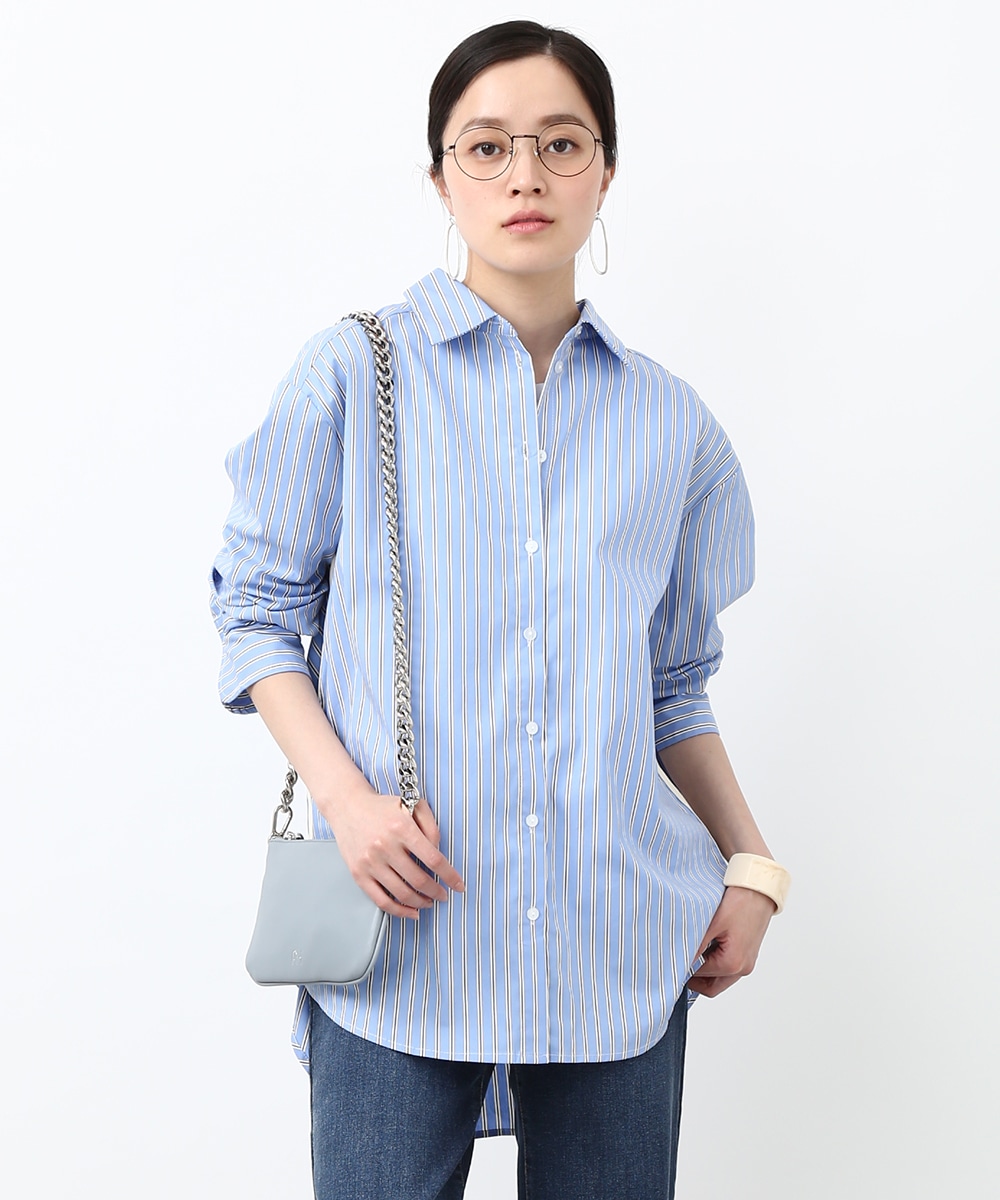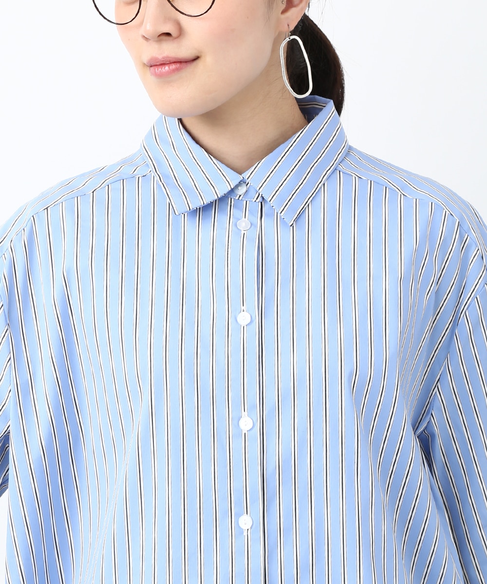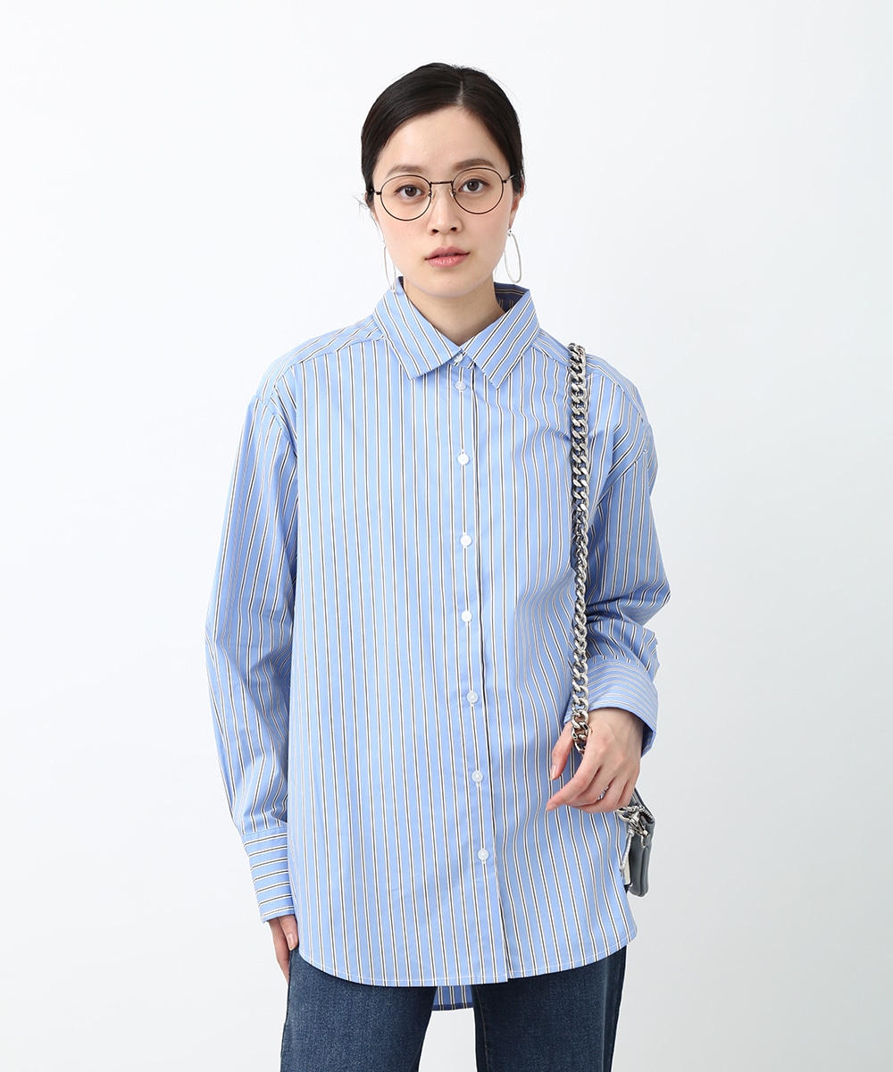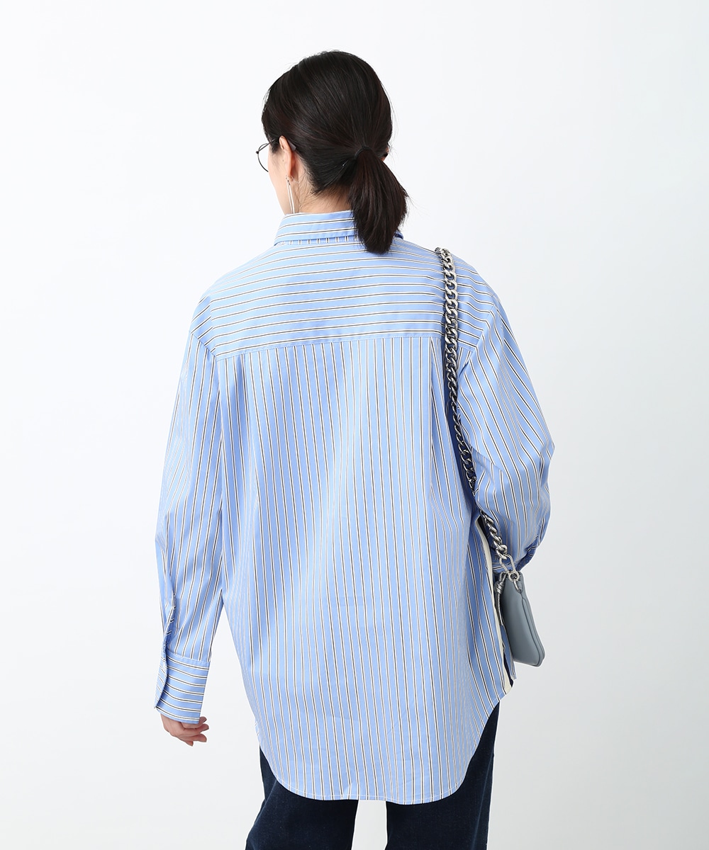 脇にライン入りのテープを施し、スポーティな要素を取り入れたストライプシャツ。ヒップにかかる丈感とゆとりのあるシルエットで、さらっと着るだけでバランスよくまとまるのもポイント。デニムパンツを穿いてラフに合わせたり、前を開けて羽織りとして取り入れることで、軽やかなレイヤードスタイルも楽しめます。