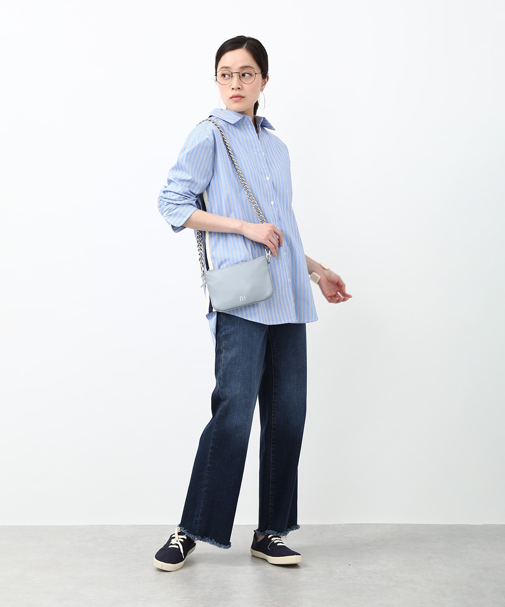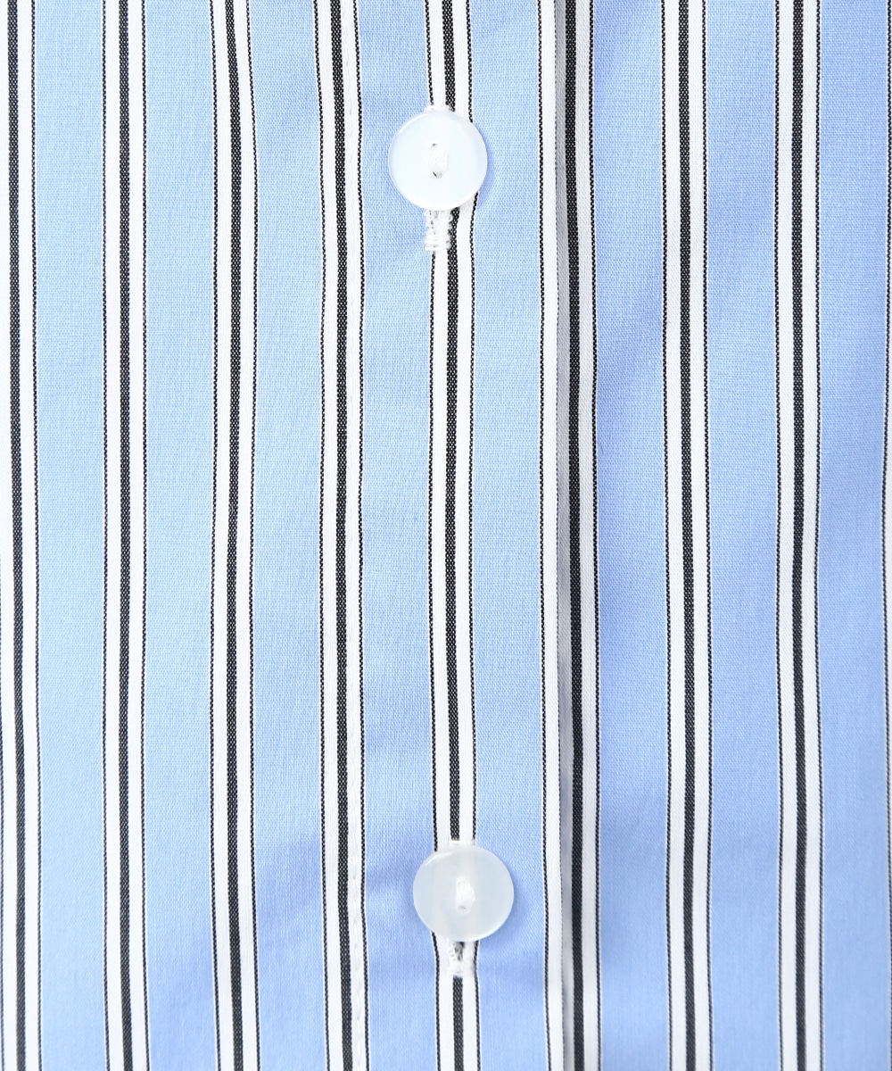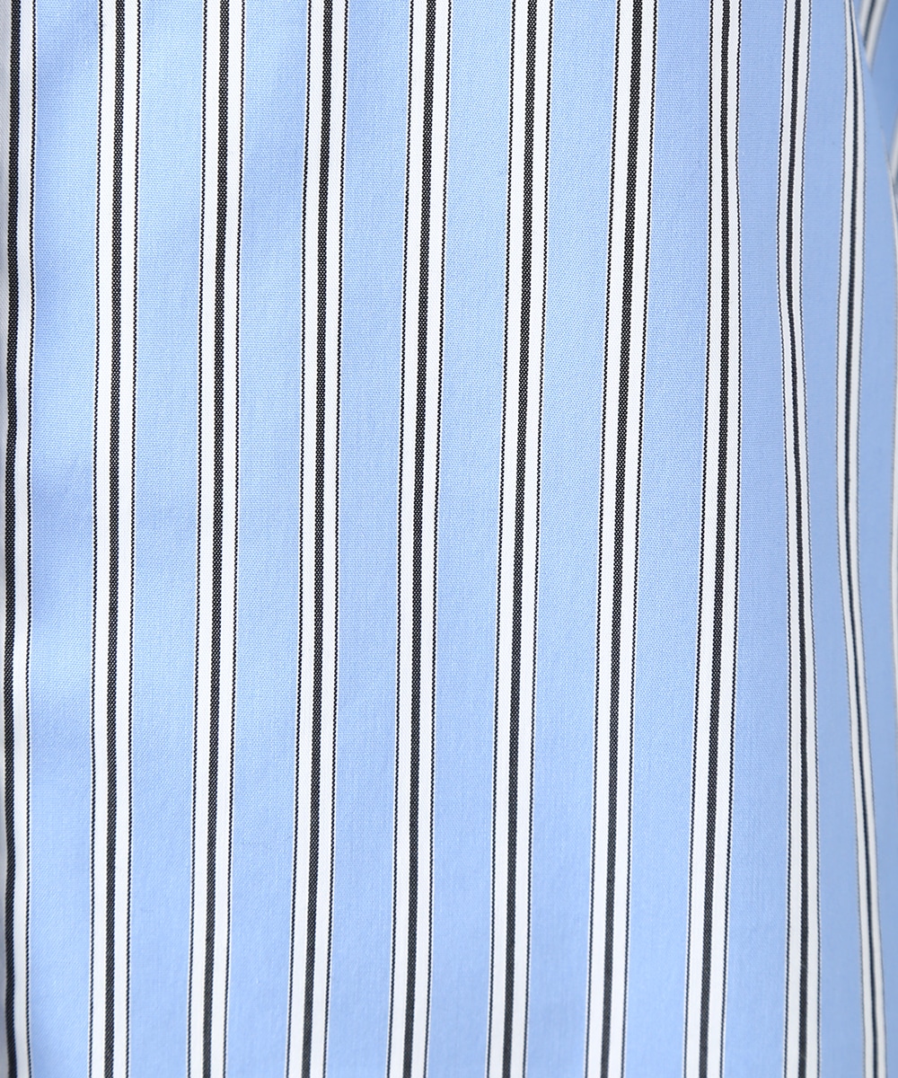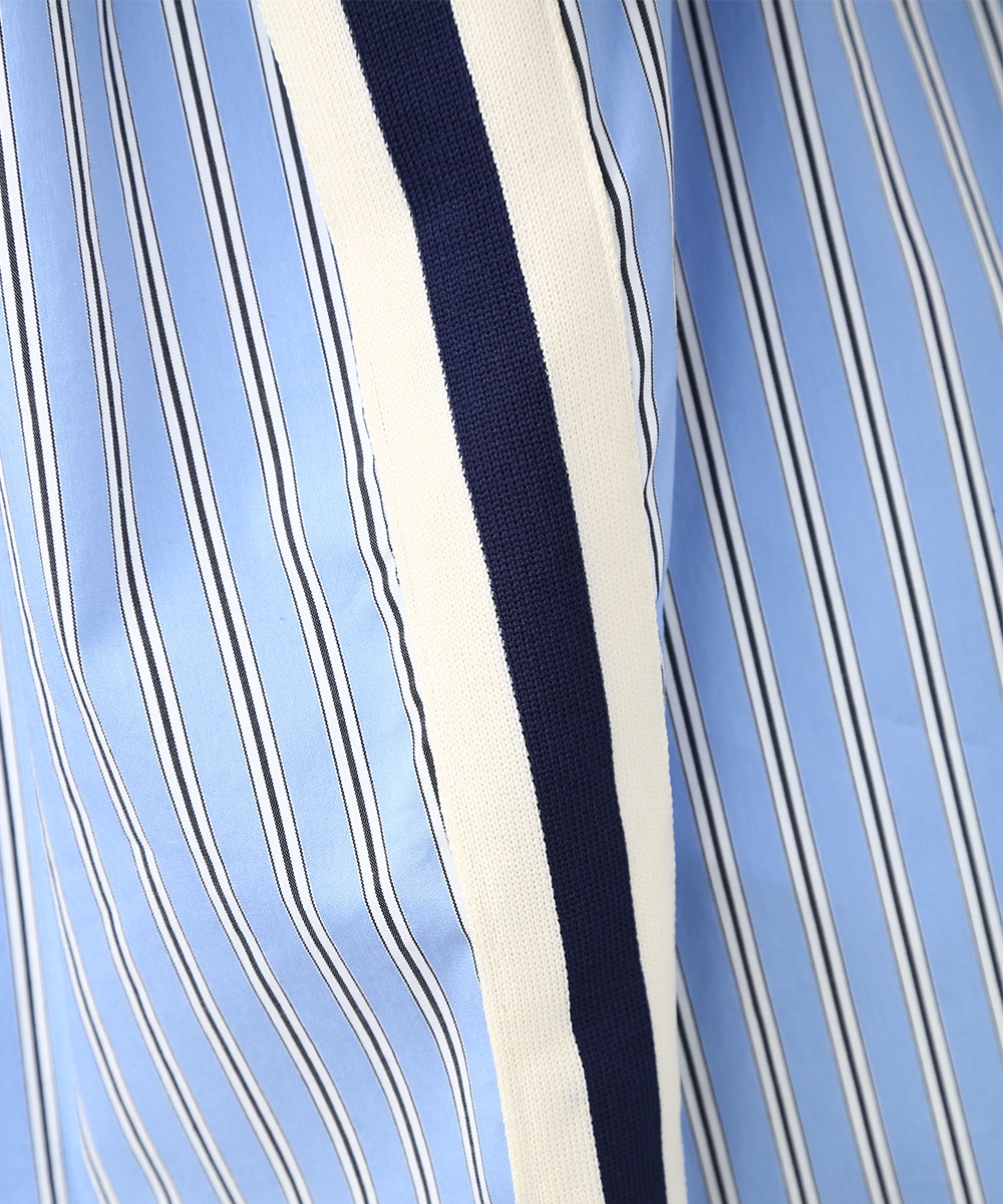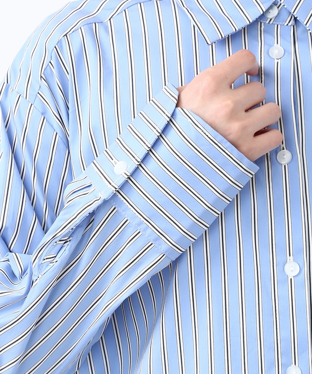 脇にライン入りのテープを施し、スポーティな要素を取り入れたストライプシャツ。ヒップにかかる丈感とゆとりのあるシルエットで、さらっと着るだけでバランスよくまとまるのもポイント。デニムパンツを穿いてラフに合わせたり、前を開けて羽織りとして取り入れることで、軽やかなレイヤードスタイルも楽しめます。