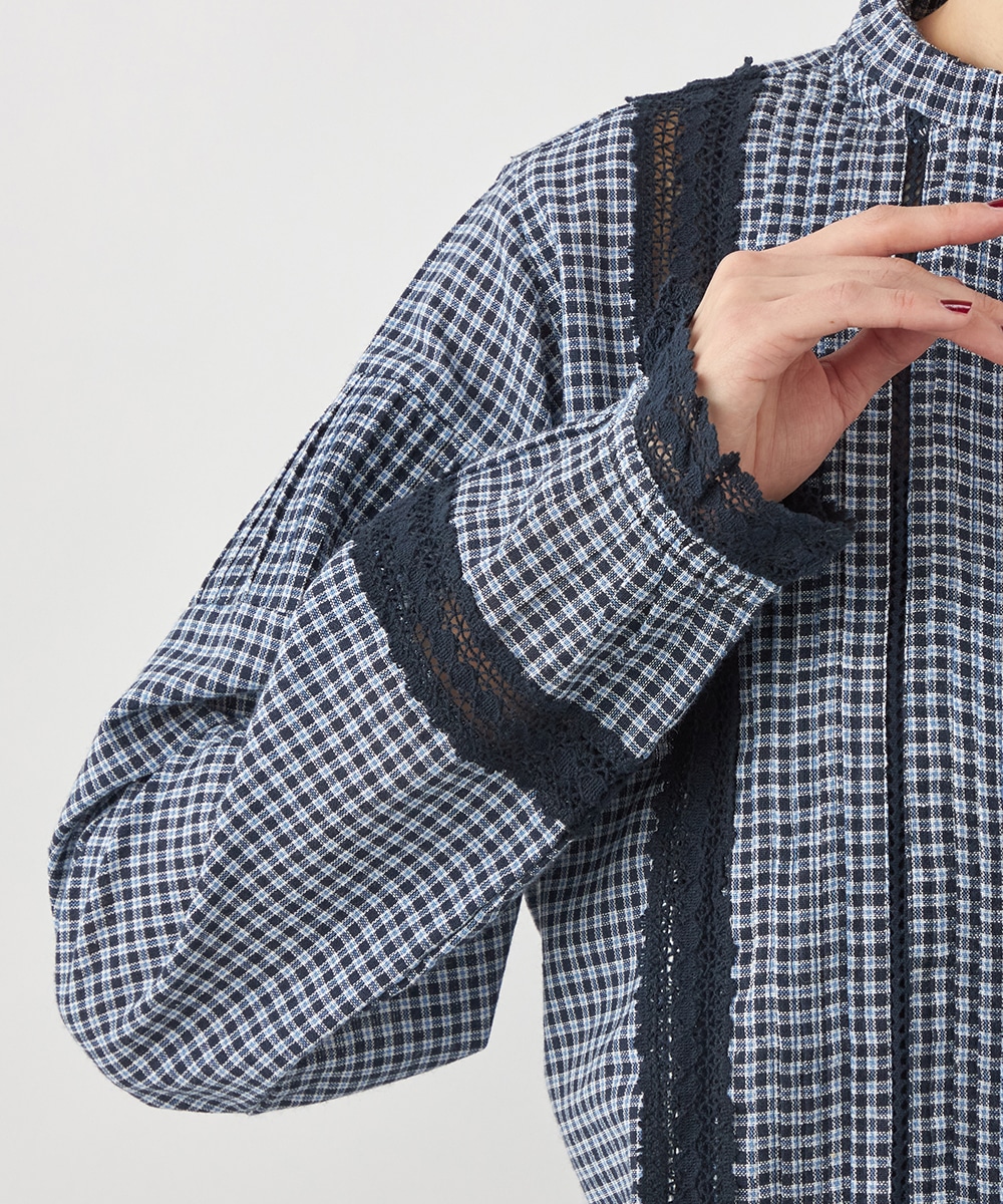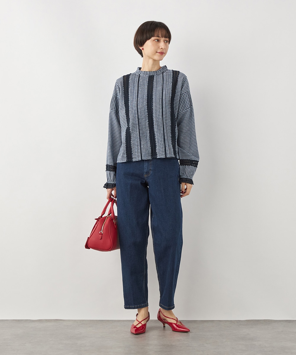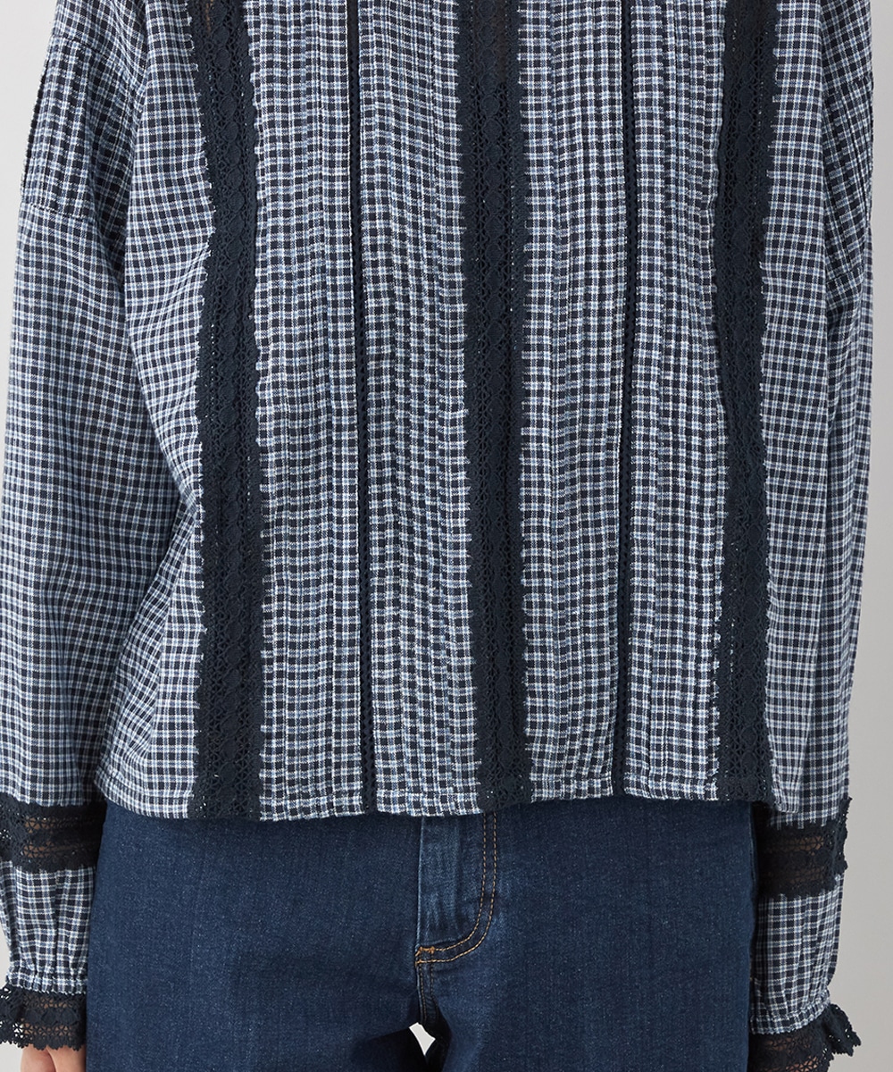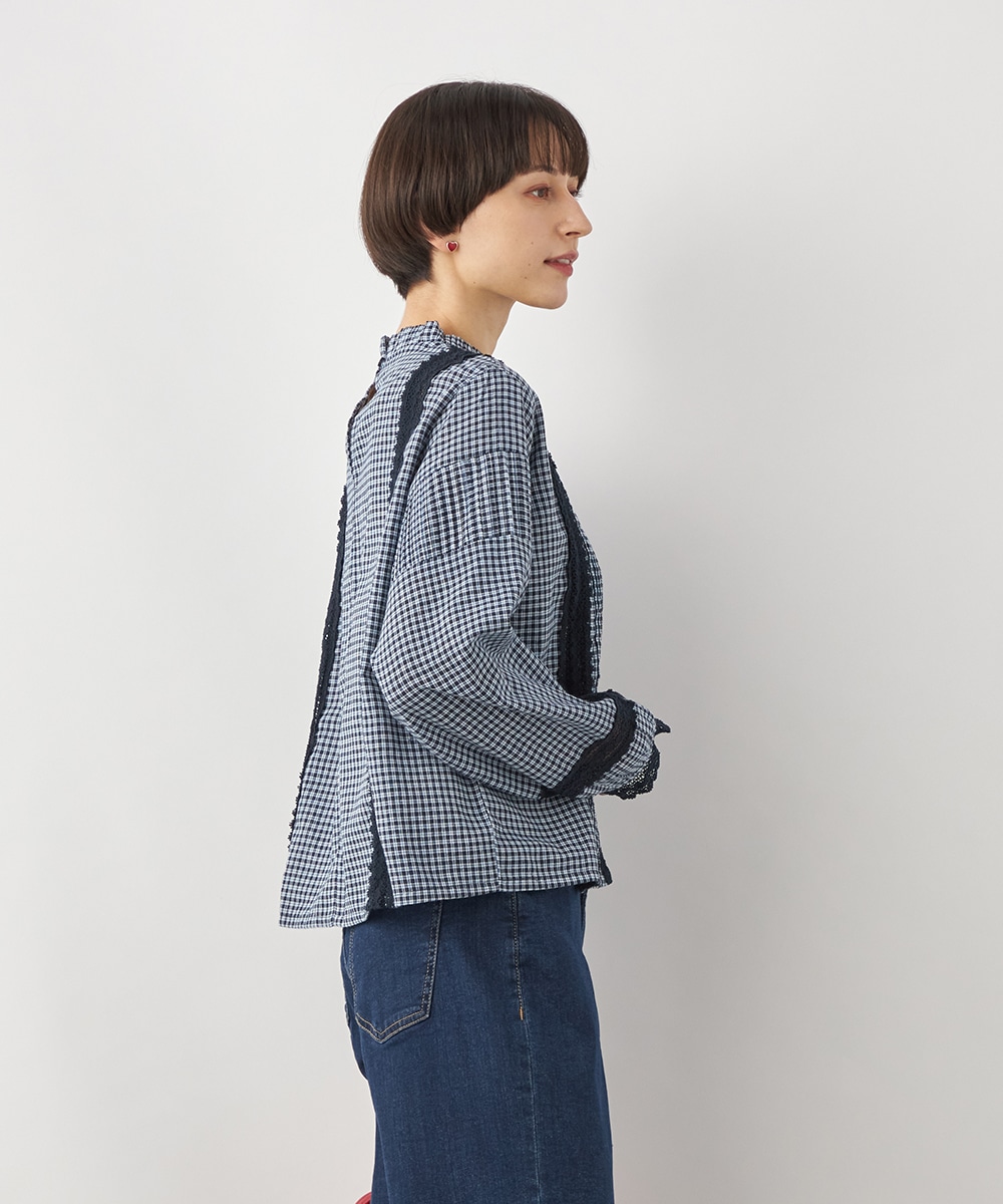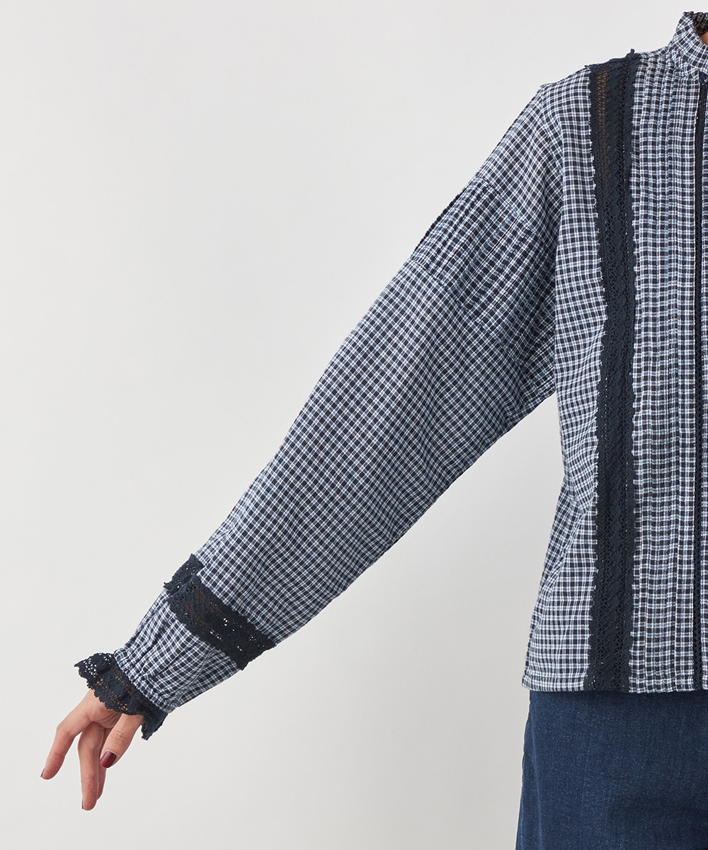 身頃と袖の細かなタックや襟元のフリルなど、こだわりのディテールを取り入れています。シルエットは適度なゆとりがあり、動きやすくて普段のカジュアルにぴったりです。着丈は長すぎず、すっきりと着こなせます。パンツともスカートとも合わせやすく、アレンジ力の高さも魅力です。