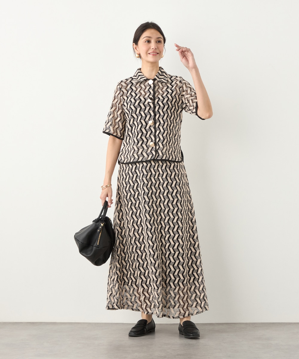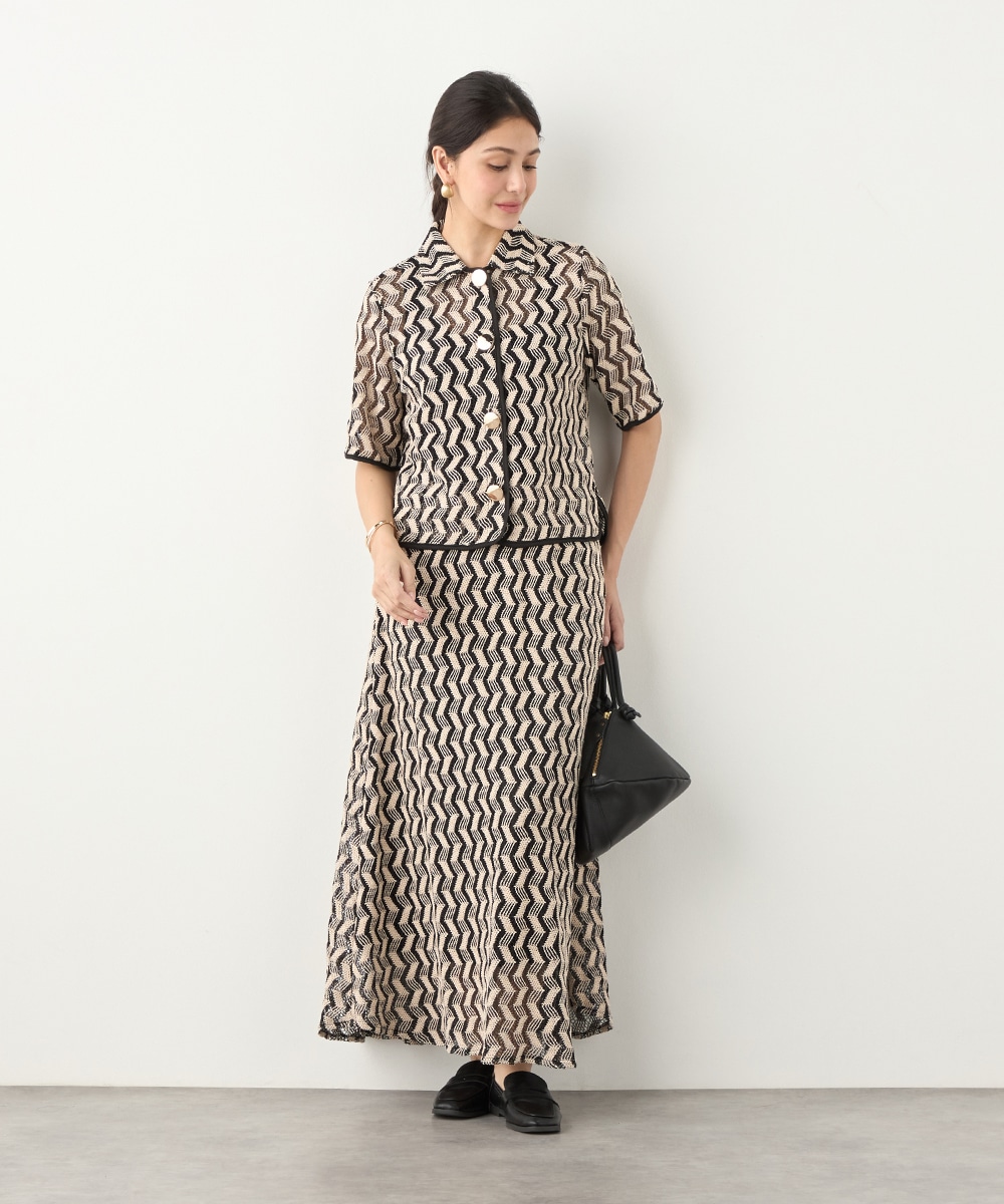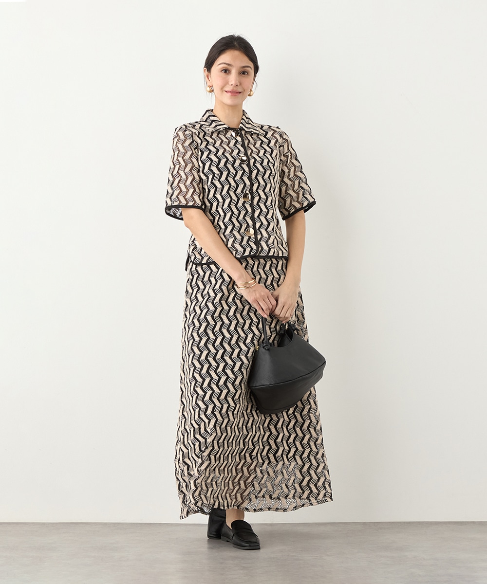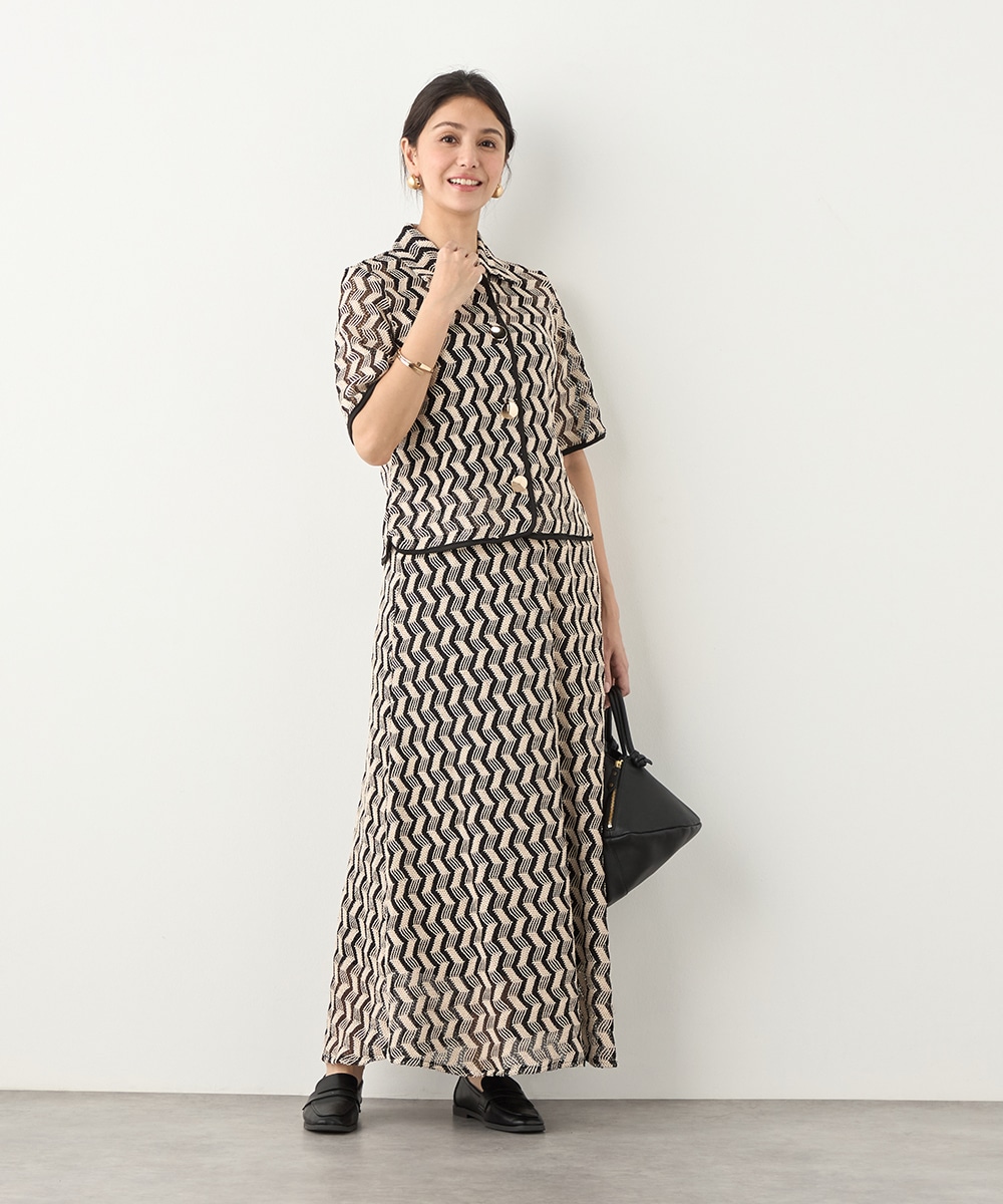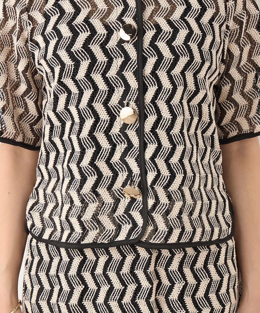 フロントに並ぶ大きなメタルボタンがアクセントとして効いています。五分袖のデザインと少し短めの着丈で軽やかな印象に着こなせます。一枚着としてはもちろん、羽織として取り入れても素敵です。セットアップコーディネートを楽しめる、同素材のスカートもございます。