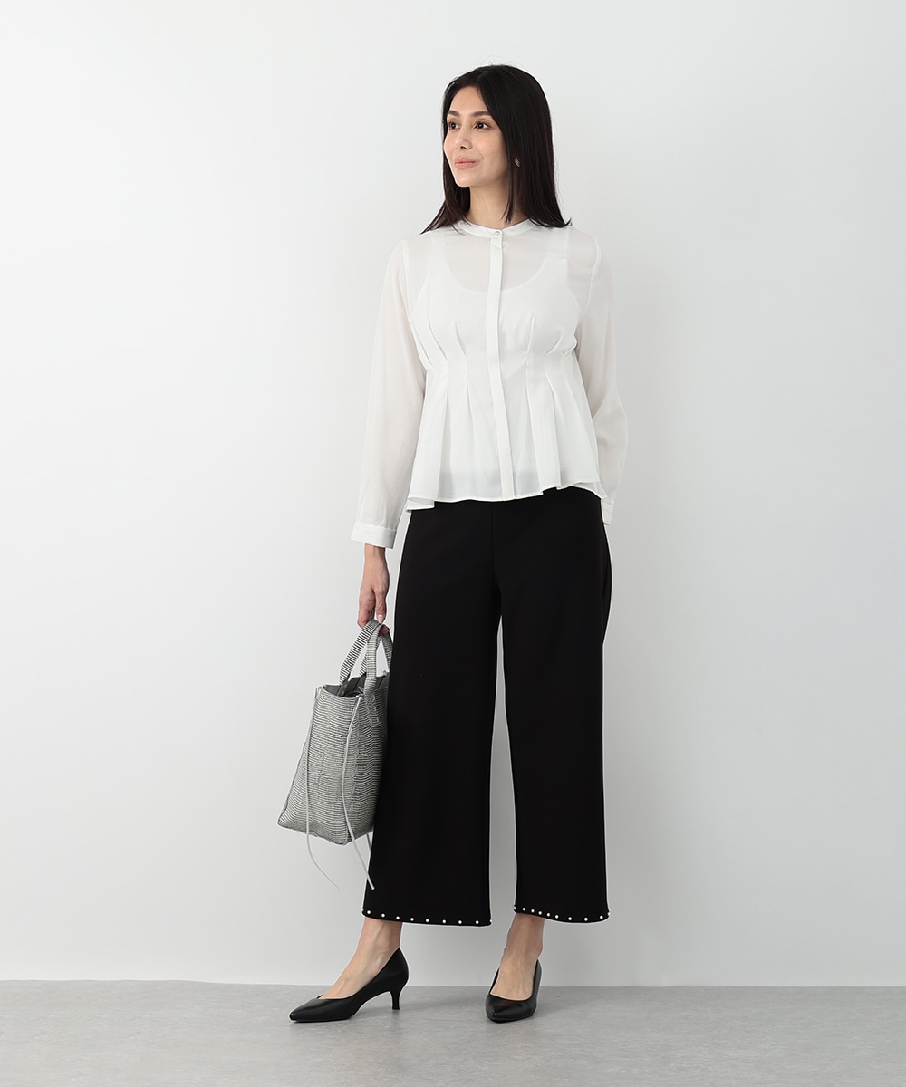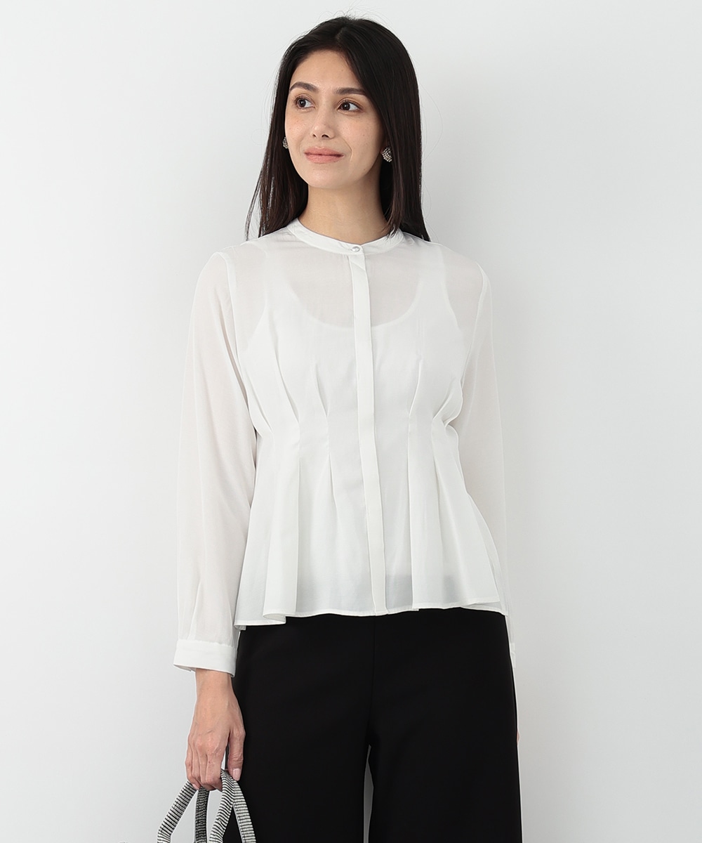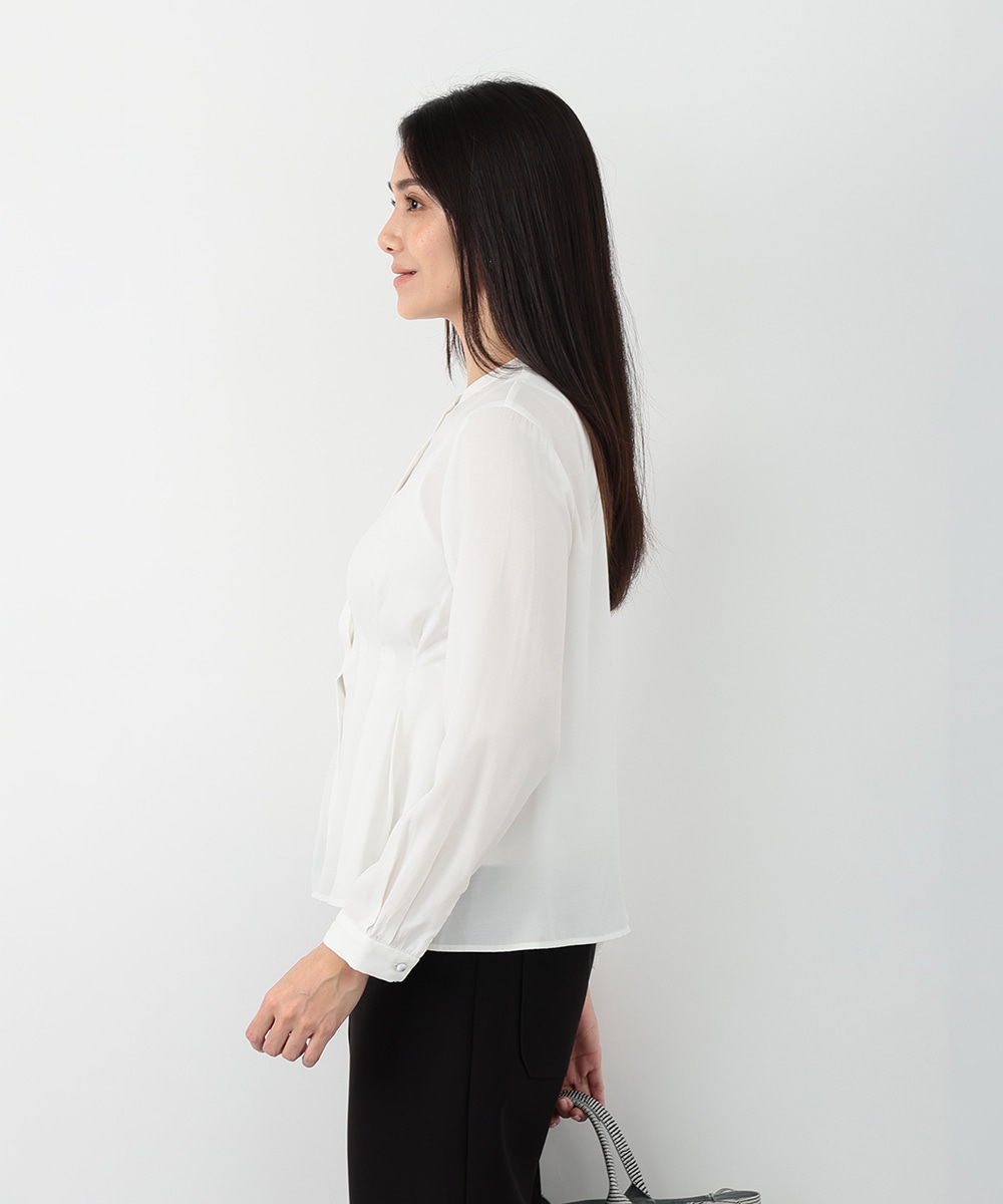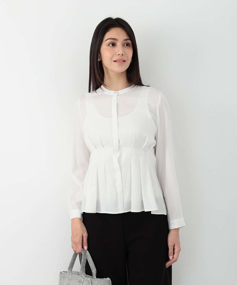 明るく軽やかなカラーが魅力のピケタックブラウス。繊細な透け感とフロントタックが、女性らしい柔らかな印象を演出します。身体のラインを拾いにくいシルエットで、自然な体型カバーも叶う一枚。シンプルなパンツと合わせるだけで、洗練されたきれいめスタイルが完成します。