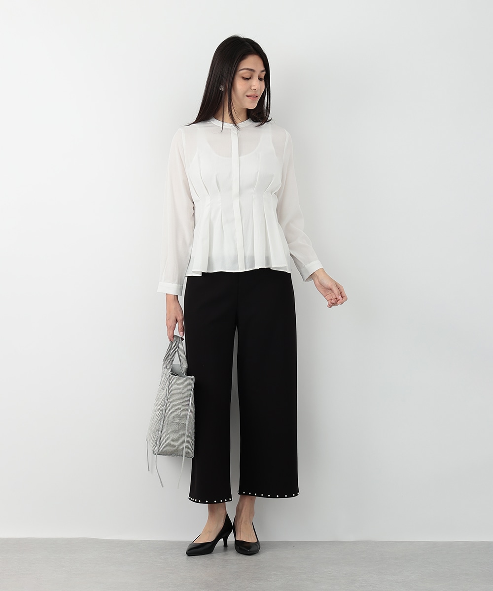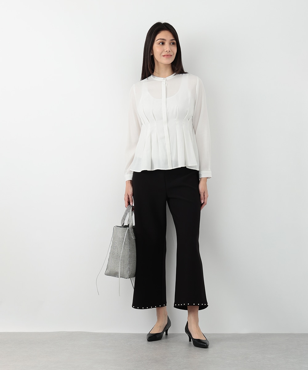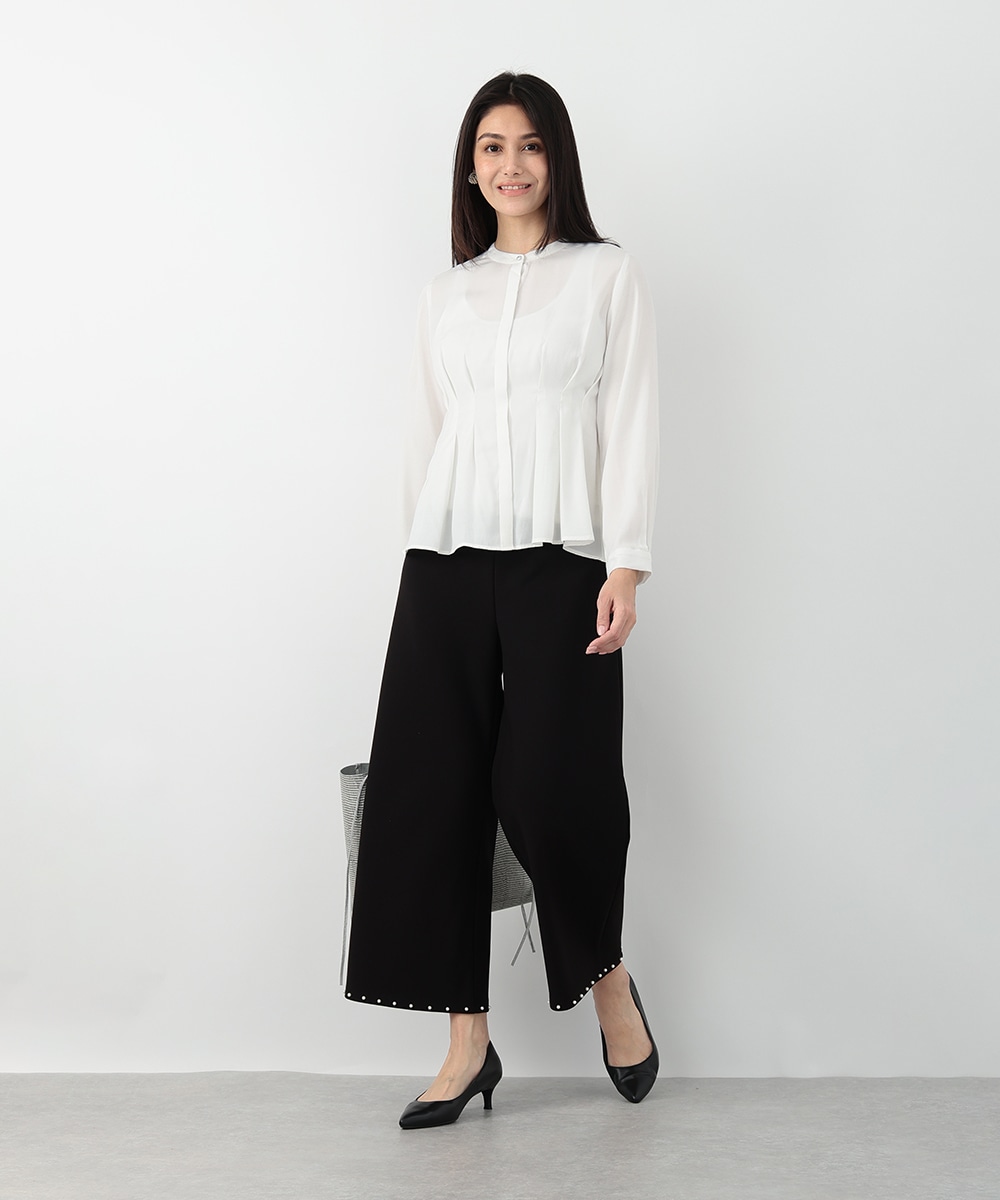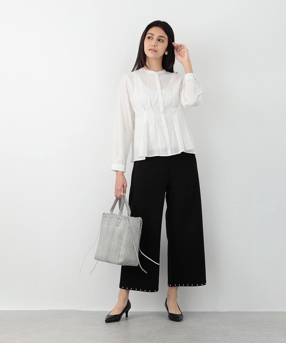 明るく軽やかなカラーが魅力のピケタックブラウス。繊細な透け感とフロントタックが、女性らしい柔らかな印象を演出します。身体のラインを拾いにくいシルエットで、自然な体型カバーも叶う一枚。シンプルなパンツと合わせるだけで、洗練されたきれいめスタイルが完成します。