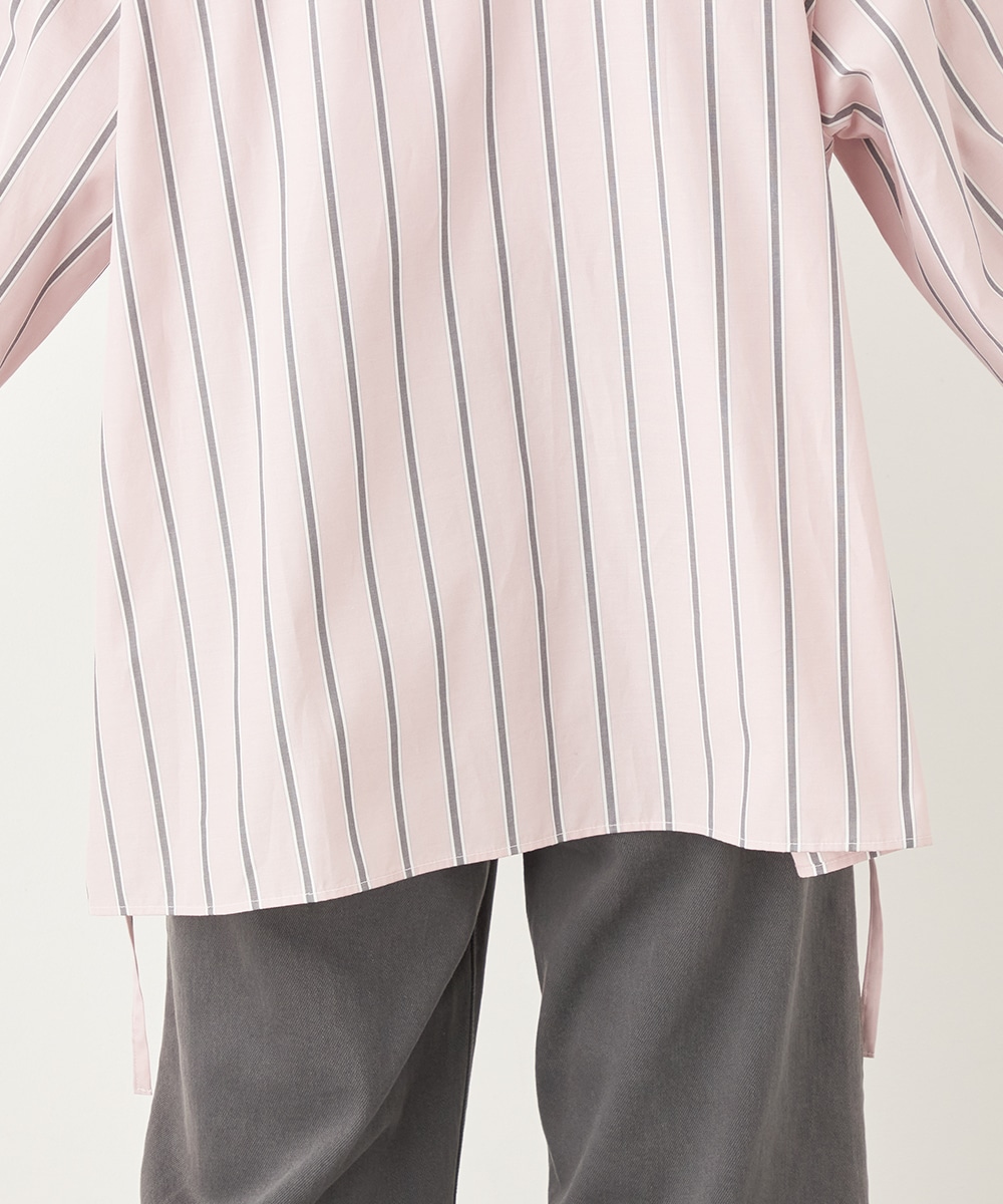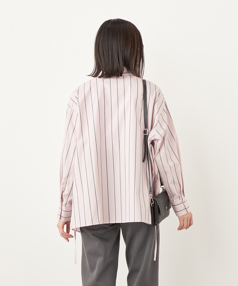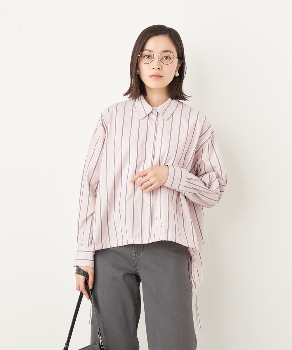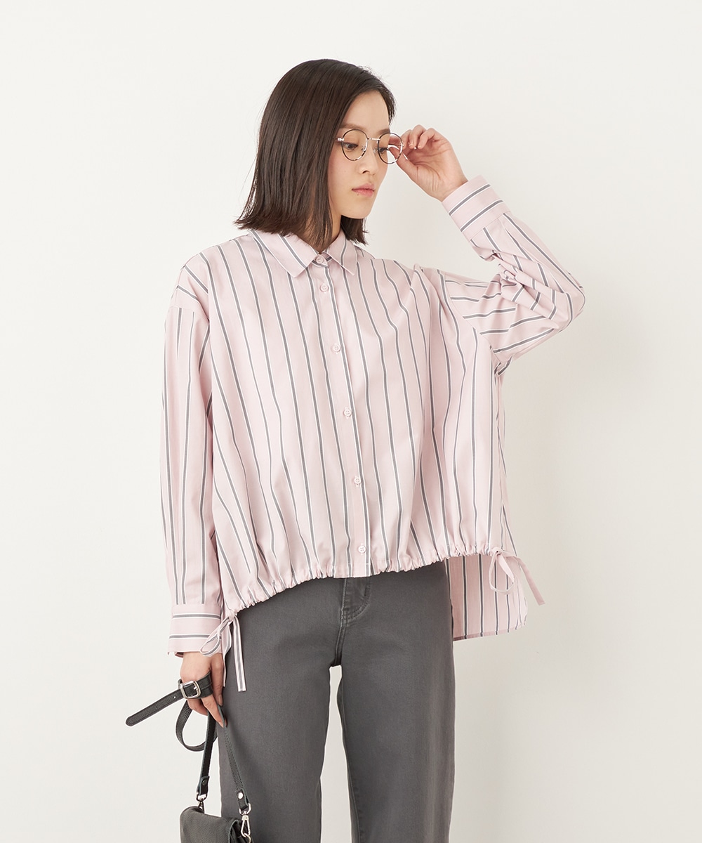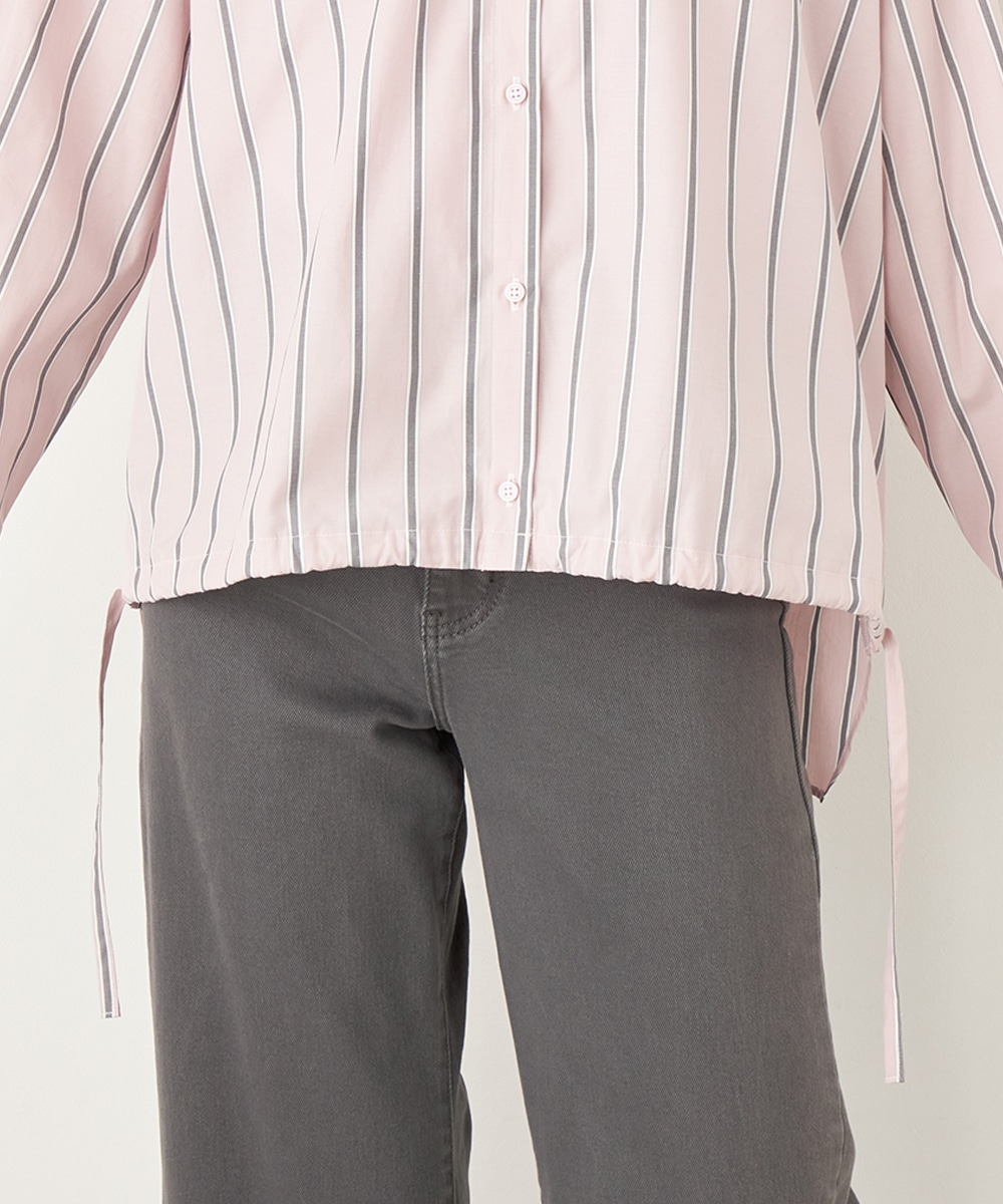 ドロップショルダーのゆったりとしたサイズ感がトレンドにマッチします。前裾のコードを絞ることでシルエットのアレンジが可能です。襟付きでほどよいキレイ目感もあり、大人のコーディネートにぴったり。一枚着として活用するのはもちろん、暖かな時季には羽織として取り入れても素敵です。