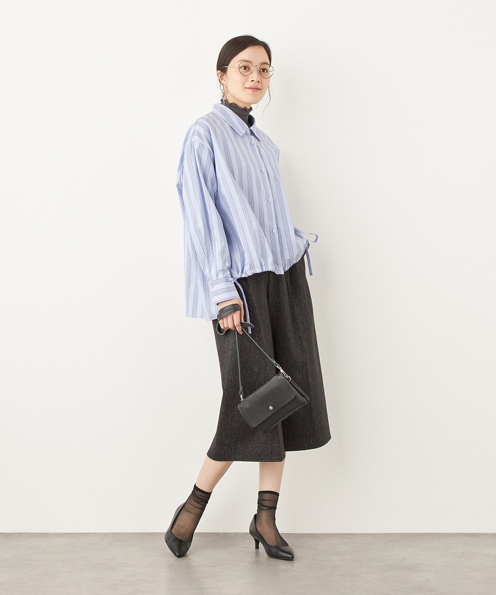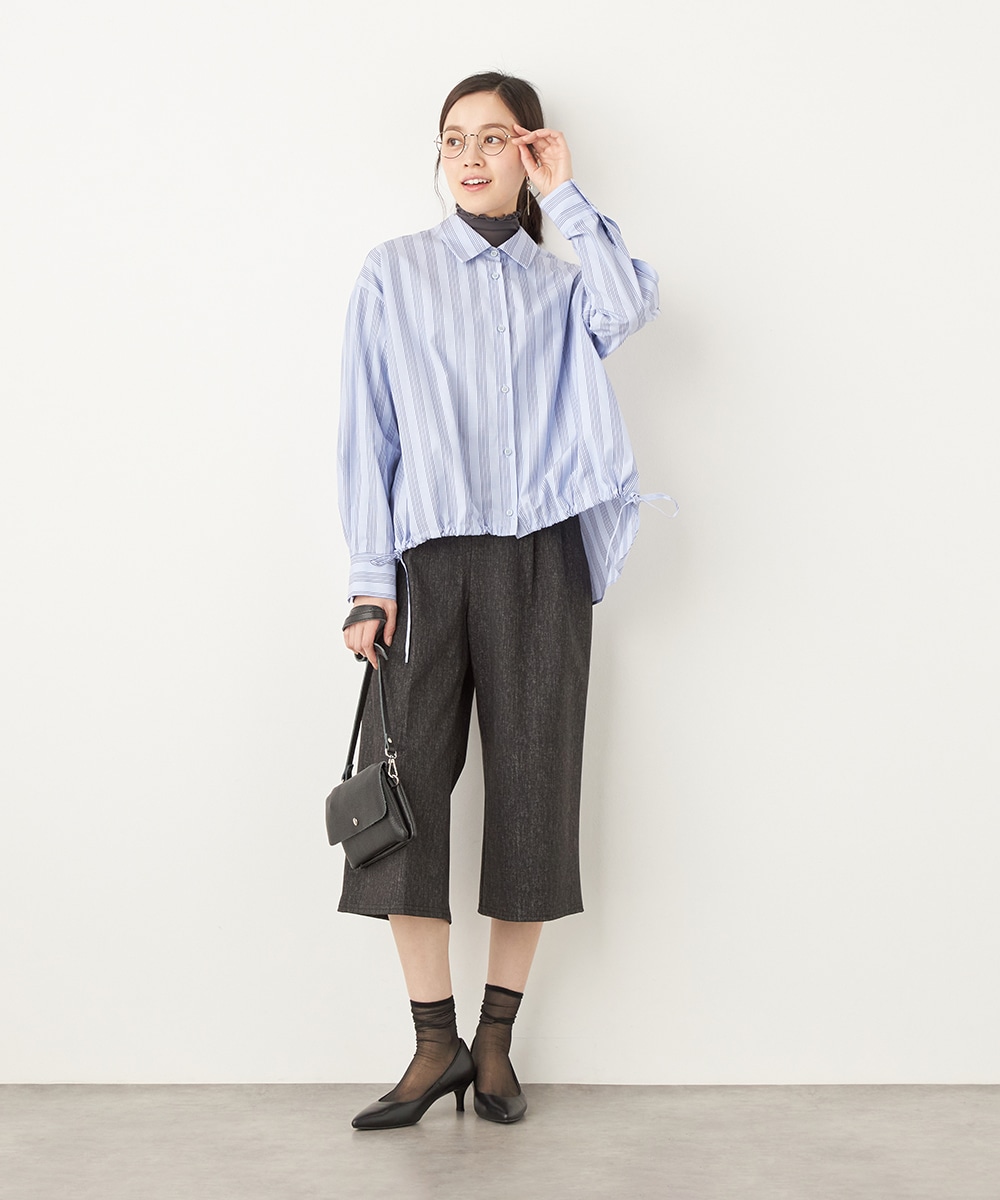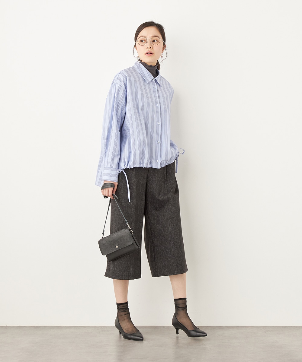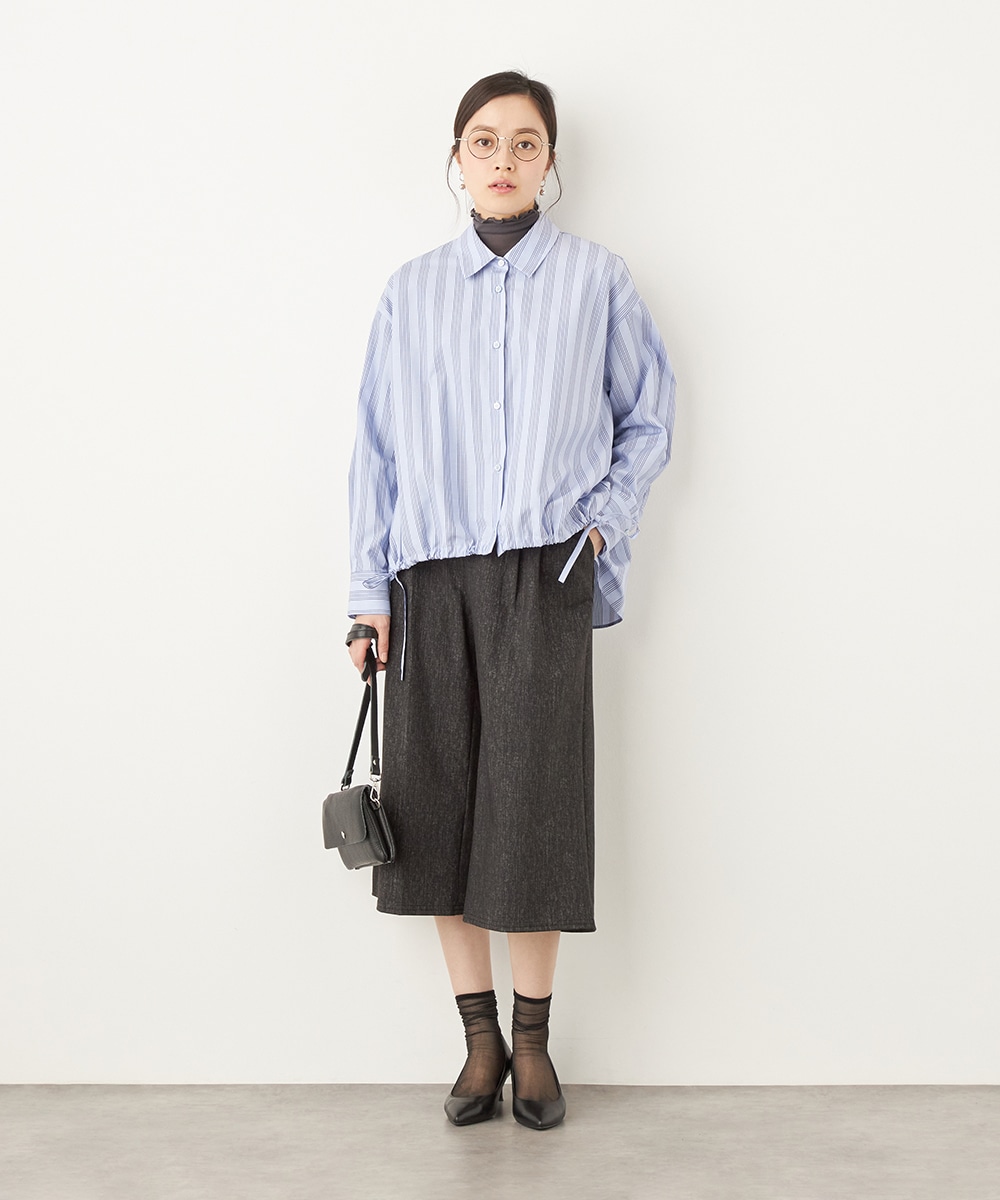 ドロップショルダーのゆったりとしたサイズ感がトレンドにマッチします。前裾のコードを絞ることでシルエットのアレンジが可能です。襟付きでほどよいキレイ目感もあり、大人のコーディネートにぴったり。一枚着として活用するのはもちろん、暖かな時季には羽織として取り入れても素敵です。