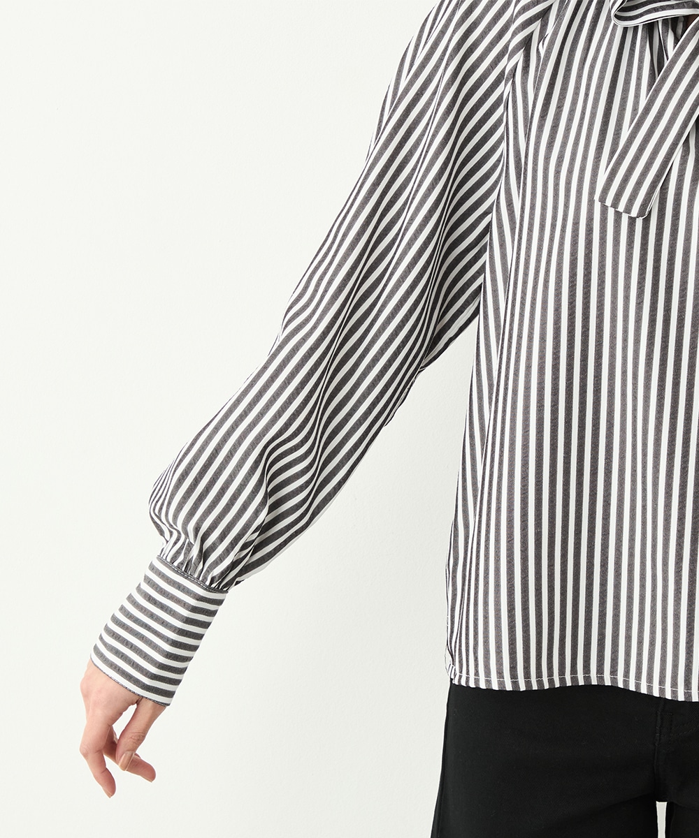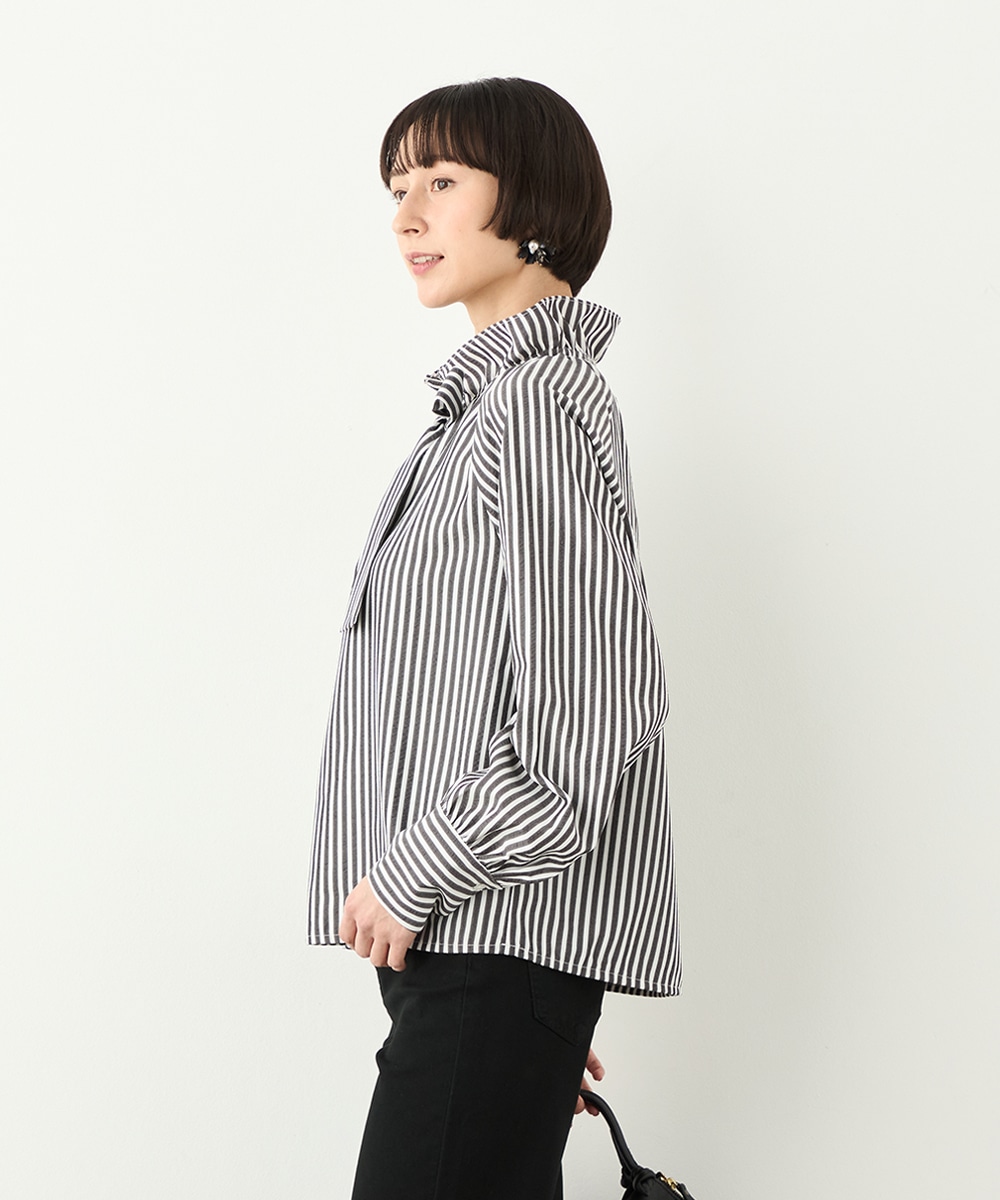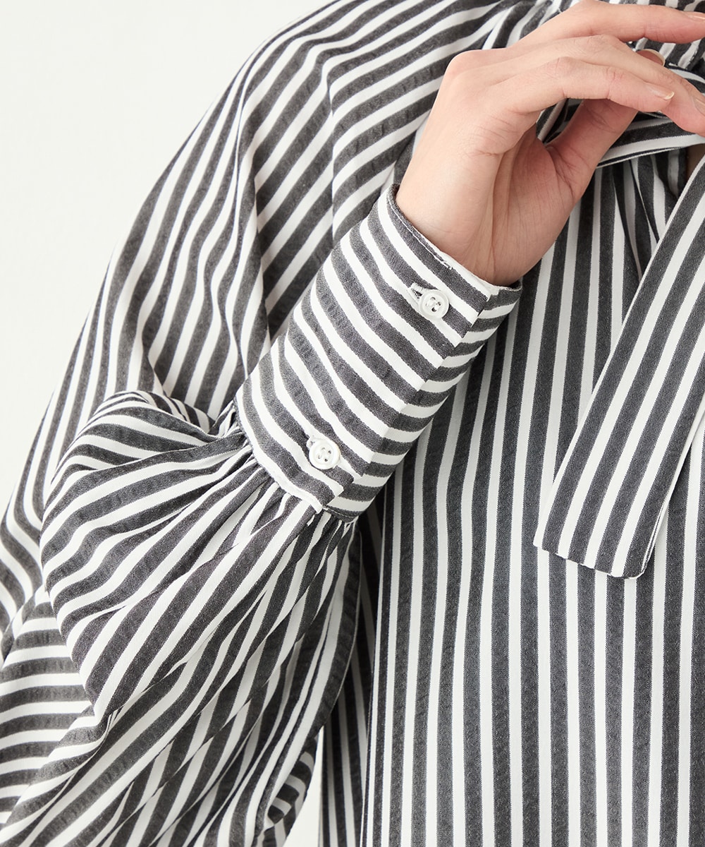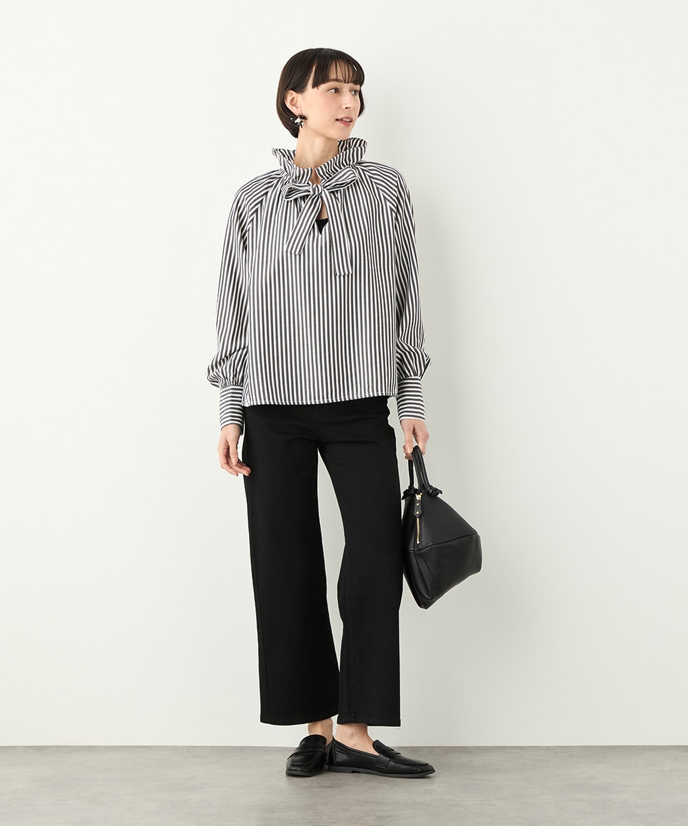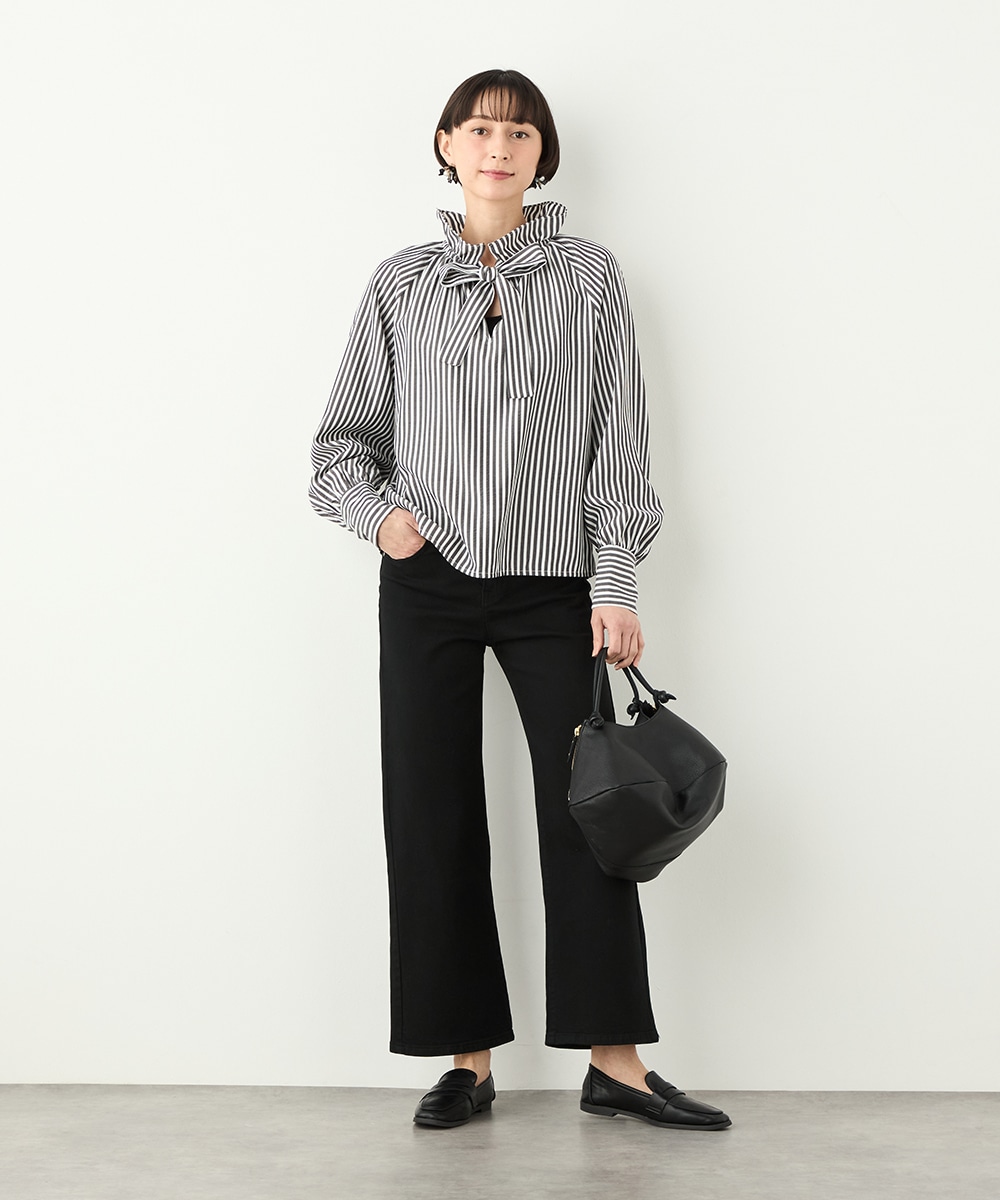 カラーリングと柄が甘さを抑え、大人可愛い印象に着こなせます。シルエットはゆとりがあり、トレンドのリラックスムードを演出。長めにデザインした袖口の切り替えはクラシカル感をプラスします。コットン素材のほどよいラフさはデイリーカジュアルにもぴったりです。