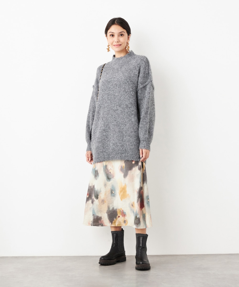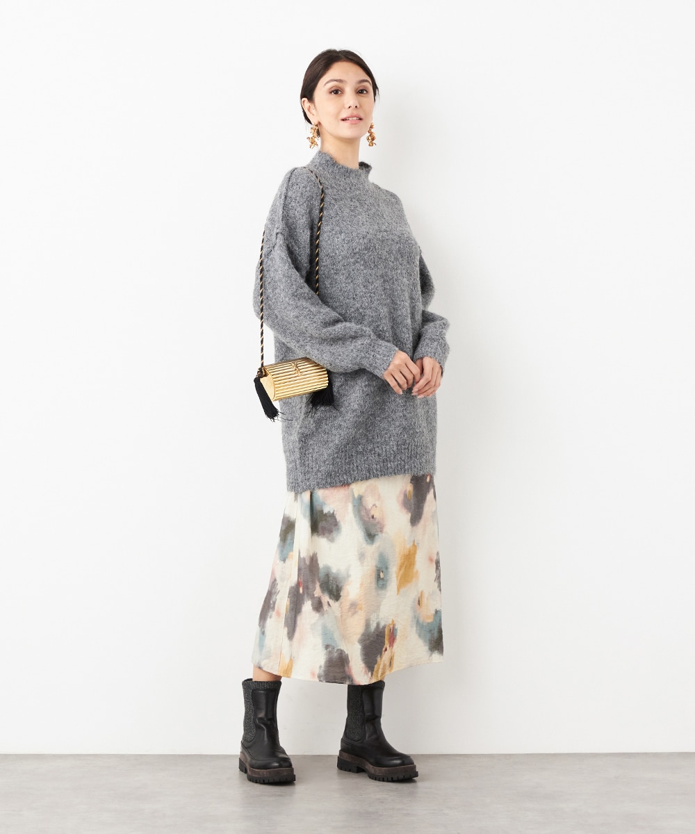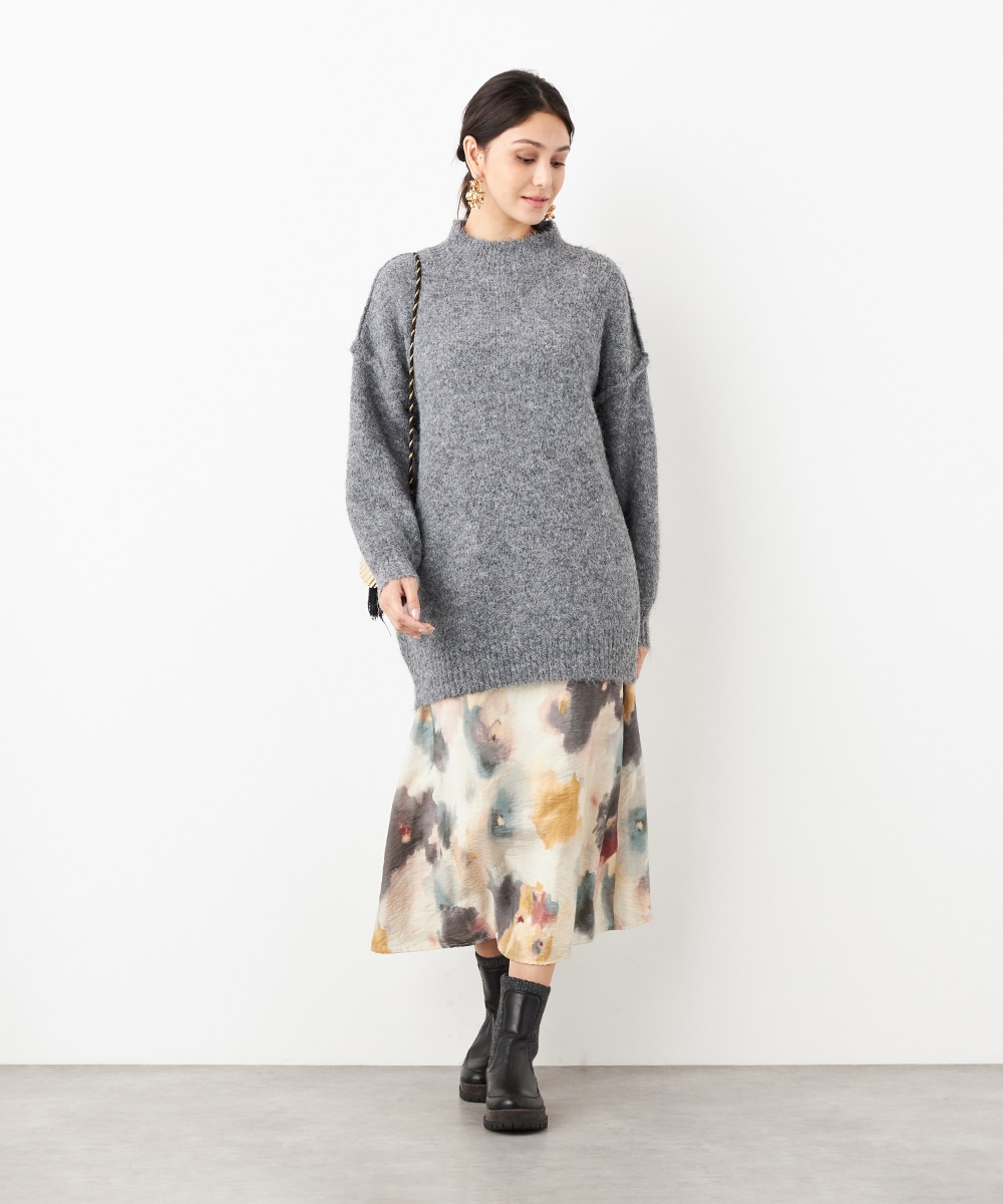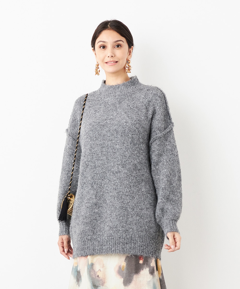 ヒップの隠れるチュニック丈で新鮮な印象をプラス。スカートともバランス良く合わせられるようこだわって仕上げています。ほどよい毛羽感の見られる表情やハイネックのデザインは秋冬コーディネートにぴったりです。シンプルにまとまって取り入れやすく、デイリーカジュアルに活躍します。