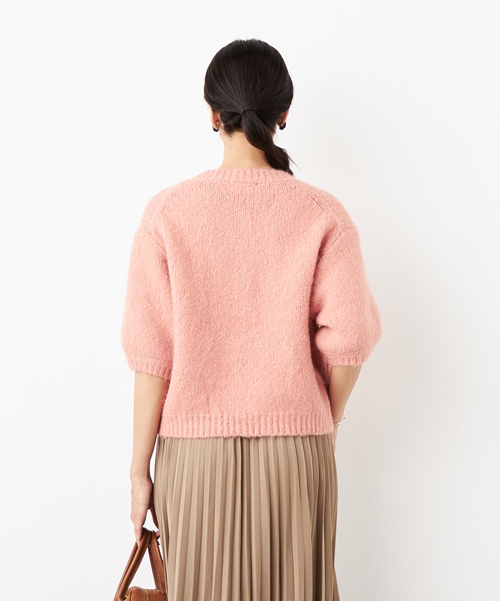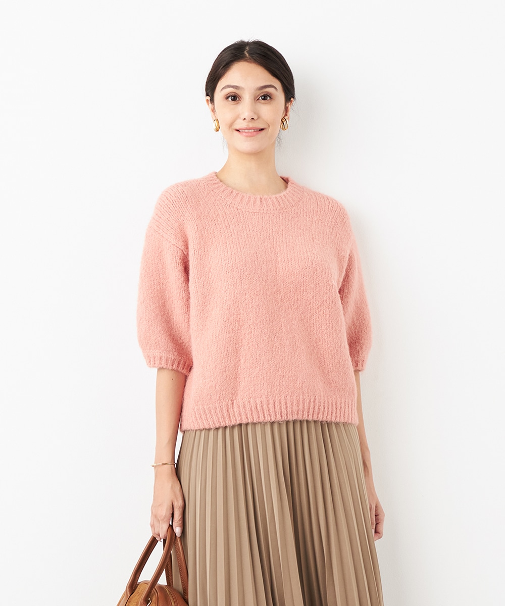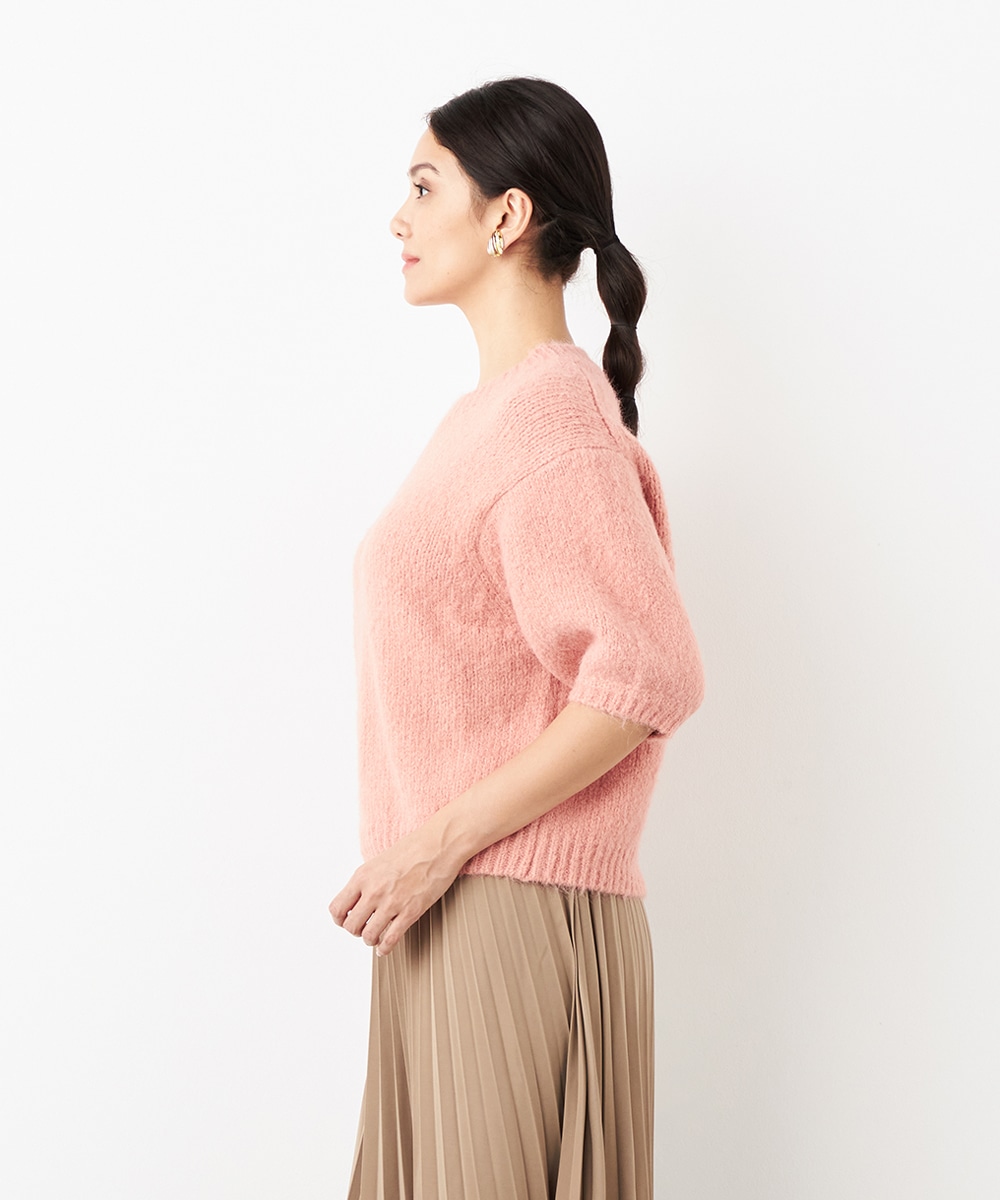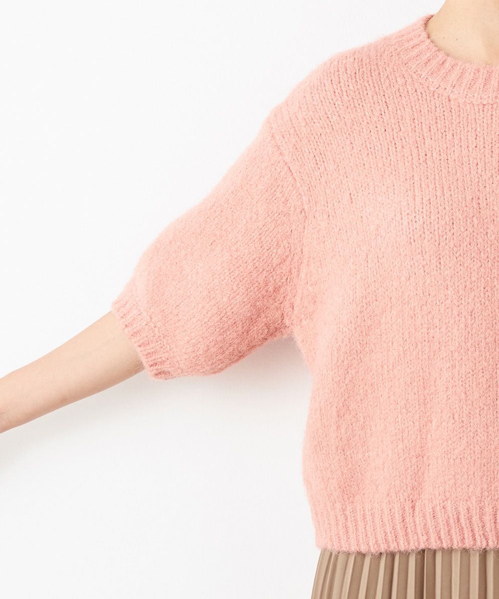 ヨーロッパのトレンドでもある半袖ニットは、レイヤードのアレンジも楽しめる注目のアイテムです。ゆったりとしたリラックス感のあるシルエットがデイリーカジュアルにマッチします。着こなしやすいクルーネックを採用。ふわふわとした適度な毛羽感の見られる表情も魅力です。