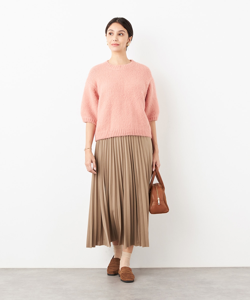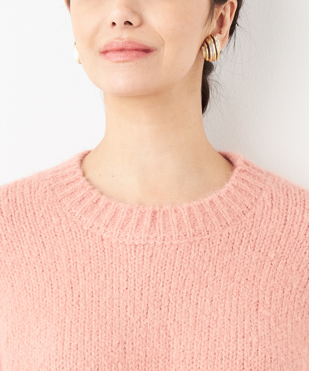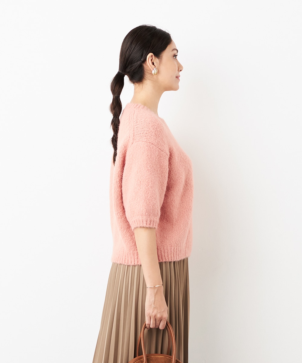 ヨーロッパのトレンドでもある半袖ニットは、レイヤードのアレンジも楽しめる注目のアイテムです。ゆったりとしたリラックス感のあるシルエットがデイリーカジュアルにマッチします。着こなしやすいクルーネックを採用。ふわふわとした適度な毛羽感の見られる表情も魅力です。