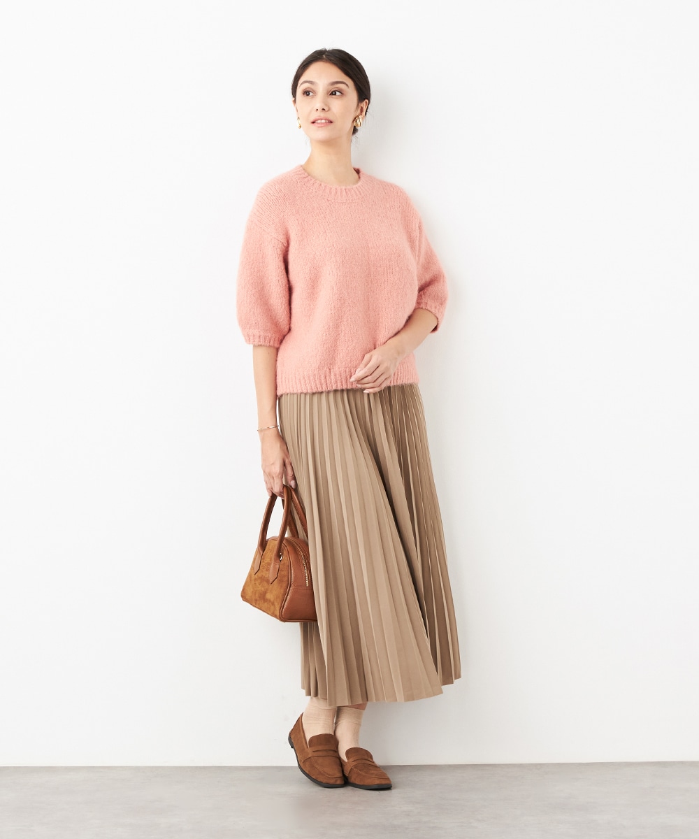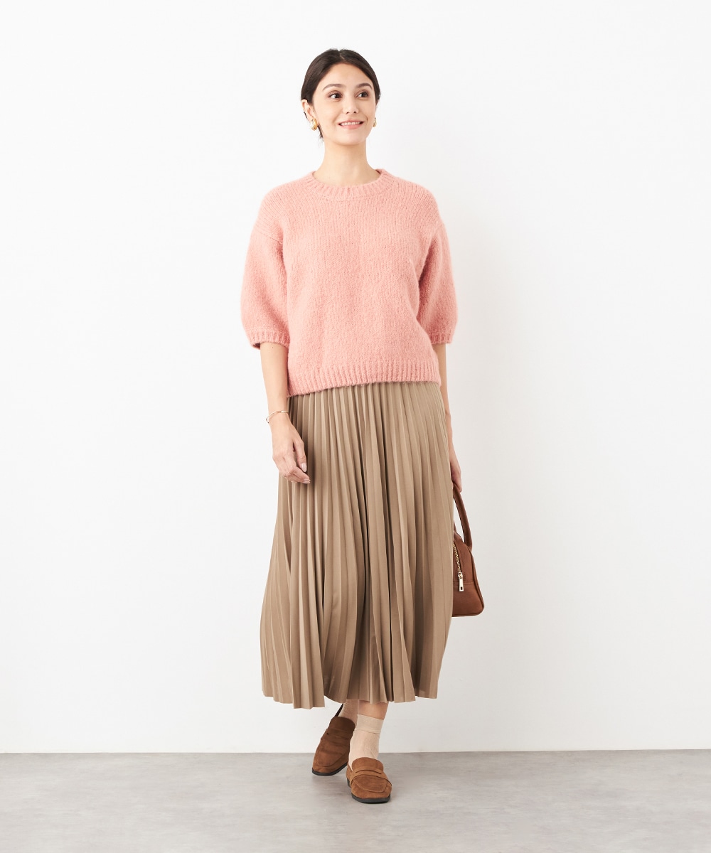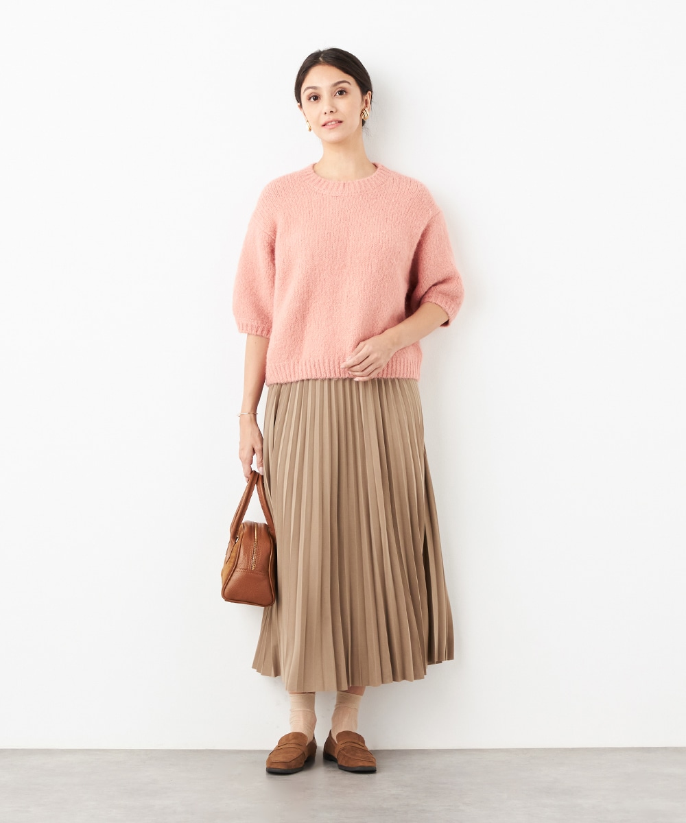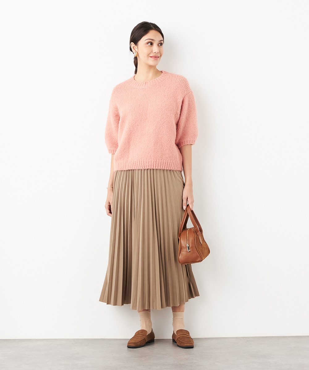 ヨーロッパのトレンドでもある半袖ニットは、レイヤードのアレンジも楽しめる注目のアイテムです。ゆったりとしたリラックス感のあるシルエットがデイリーカジュアルにマッチします。着こなしやすいクルーネックを採用。ふわふわとした適度な毛羽感の見られる表情も魅力です。