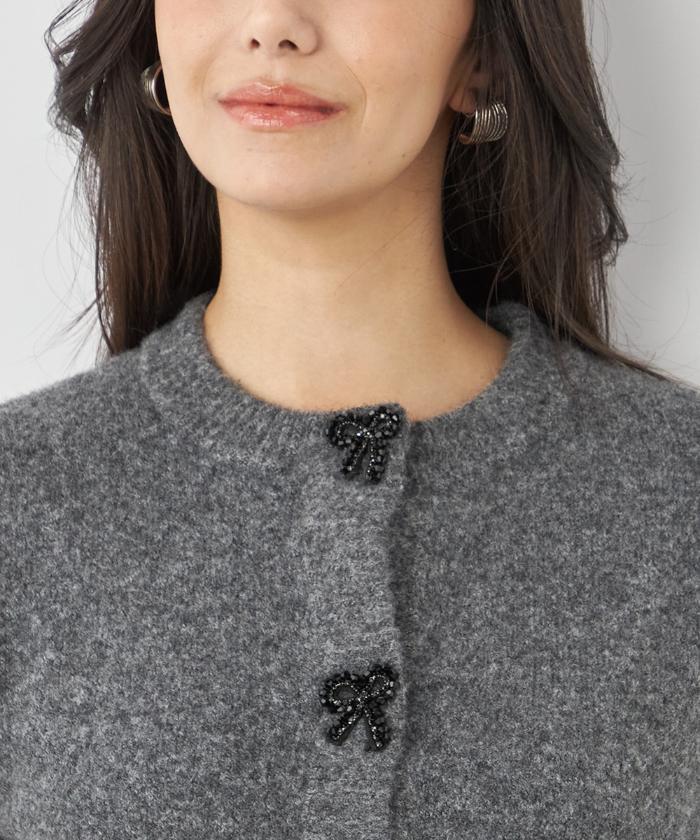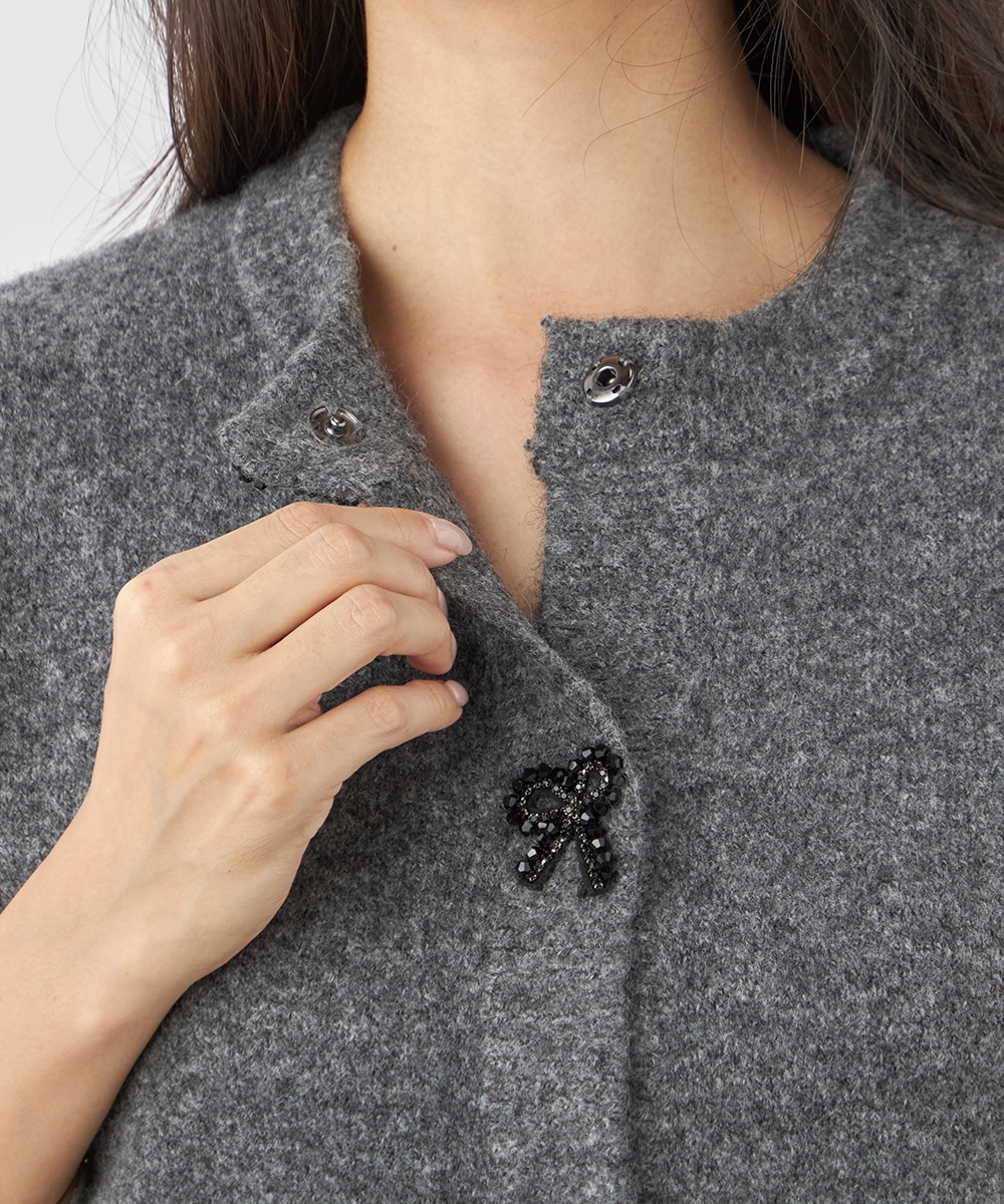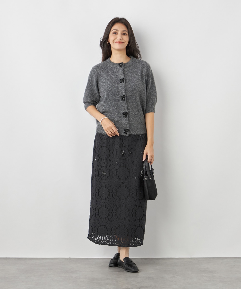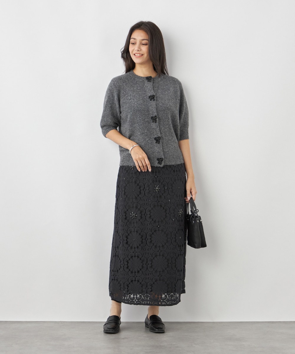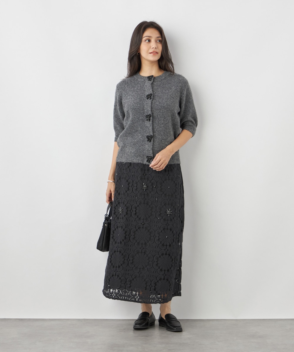 クロップド丈に五分袖でコンパクトにまとまり、すっきりと着こなせます。合わせるボトムスを選ばず、アレンジ力の高さも魅力です。ほどよい毛羽感のある表情が優しくナチュラルな雰囲気をプラスします。肌触りが柔らかくて着心地も良好です。シックなモノトーンカラーでまとめています。