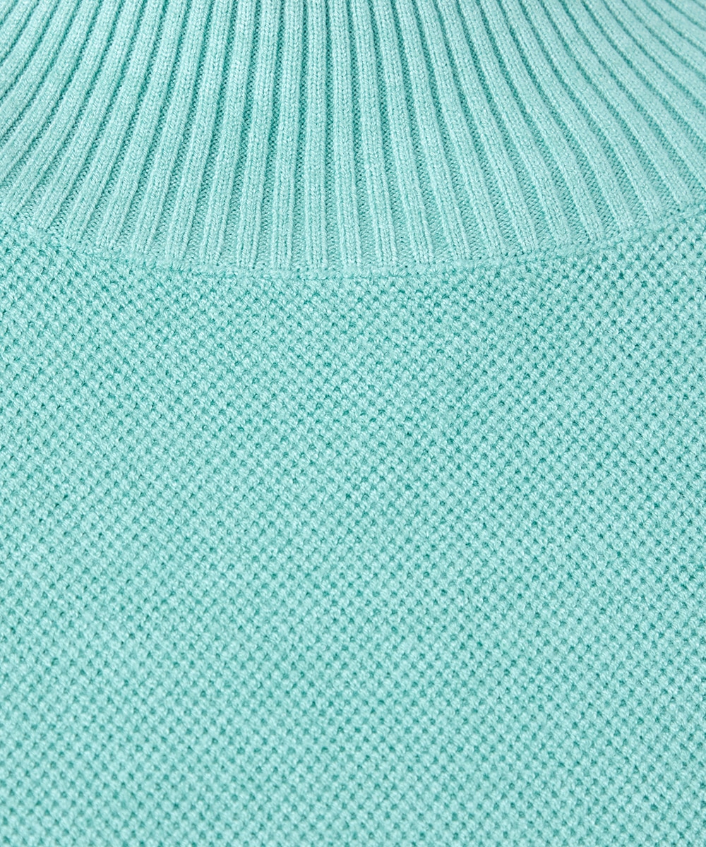 ゆったりとしたシルエットがトレンドのリラックス感を印象付けます。袖口のリブは広幅にデザインしており、手元がすっきりと見えるのも特徴です。ハイネックのデザインは大人っぽさをプラスします。単色使いで着こなしやすくまとまり、デイリーにもおすすめの1枚です。