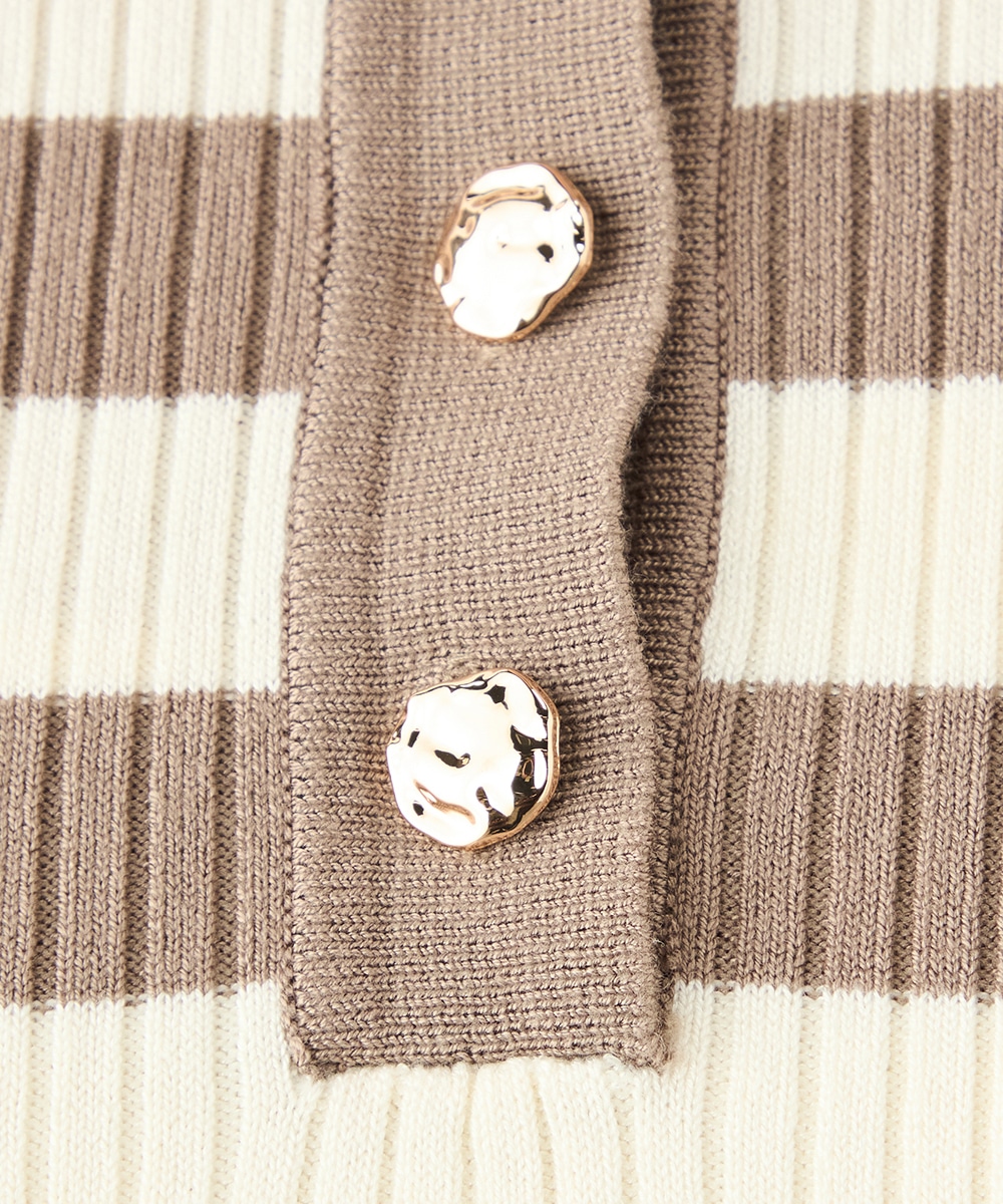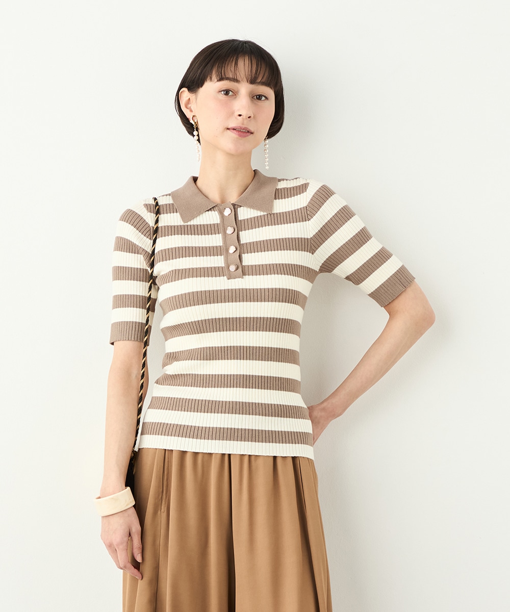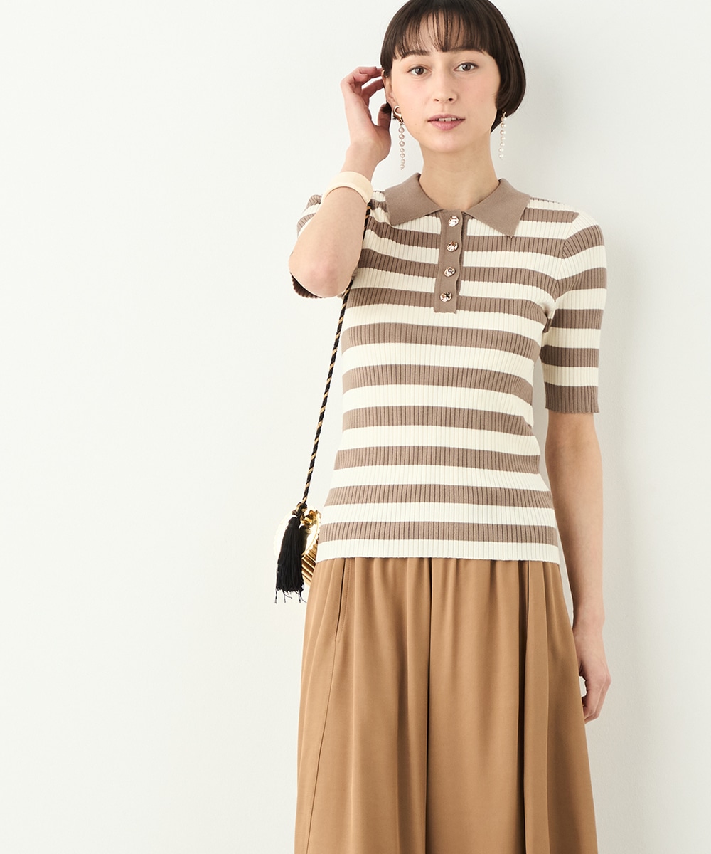 ボディにフィットするすっきりとしたシルエットに仕上げています。きれいな光沢の見られるボタンが華やかさを添えるアクセントとして有効です。柔らかく心地よい肌触りも魅力のアイテム。スカートと合わせてフェミニンに着こなすのがおすすめのコーディネートです。