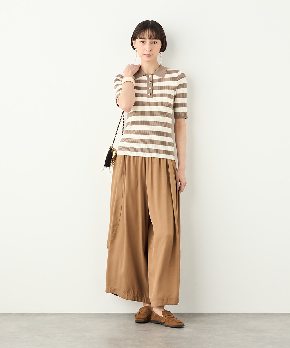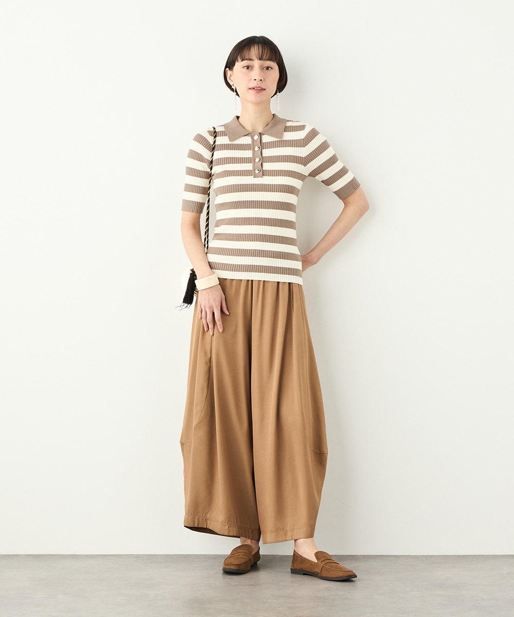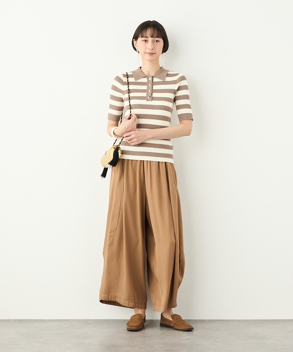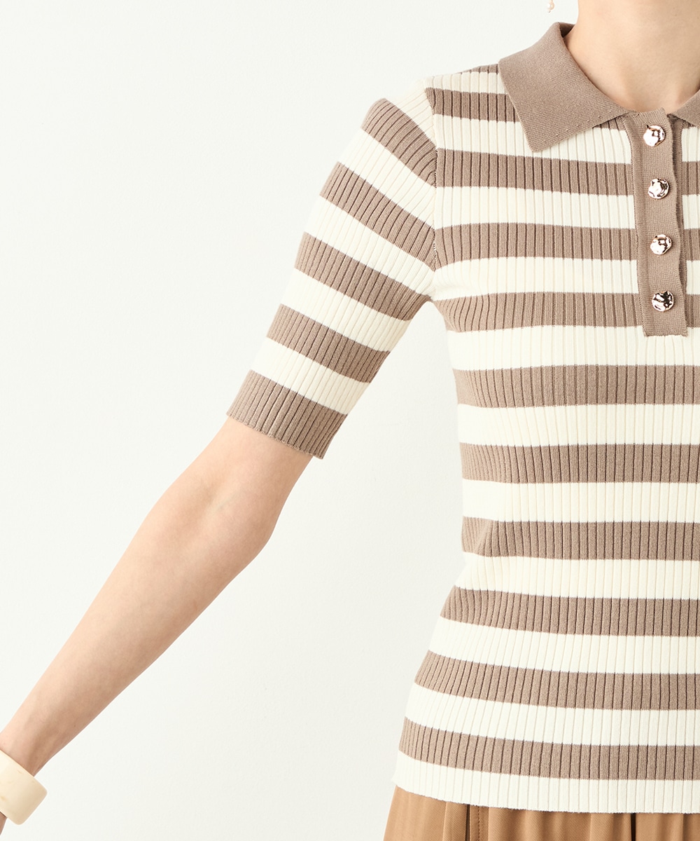 ボディにフィットするすっきりとしたシルエットに仕上げています。きれいな光沢の見られるボタンが華やかさを添えるアクセントとして有効です。柔らかく心地よい肌触りも魅力のアイテム。スカートと合わせてフェミニンに着こなすのがおすすめのコーディネートです。