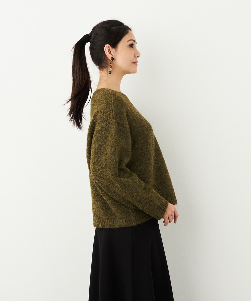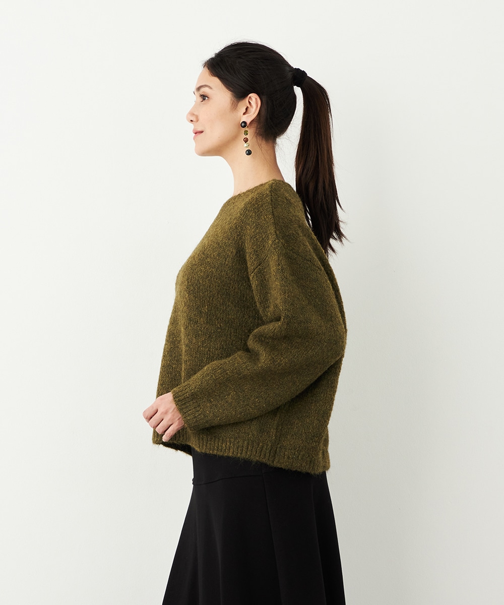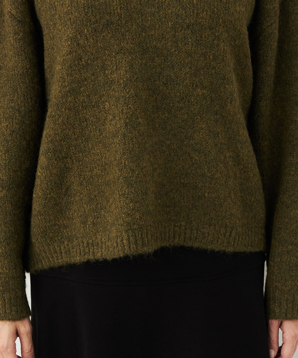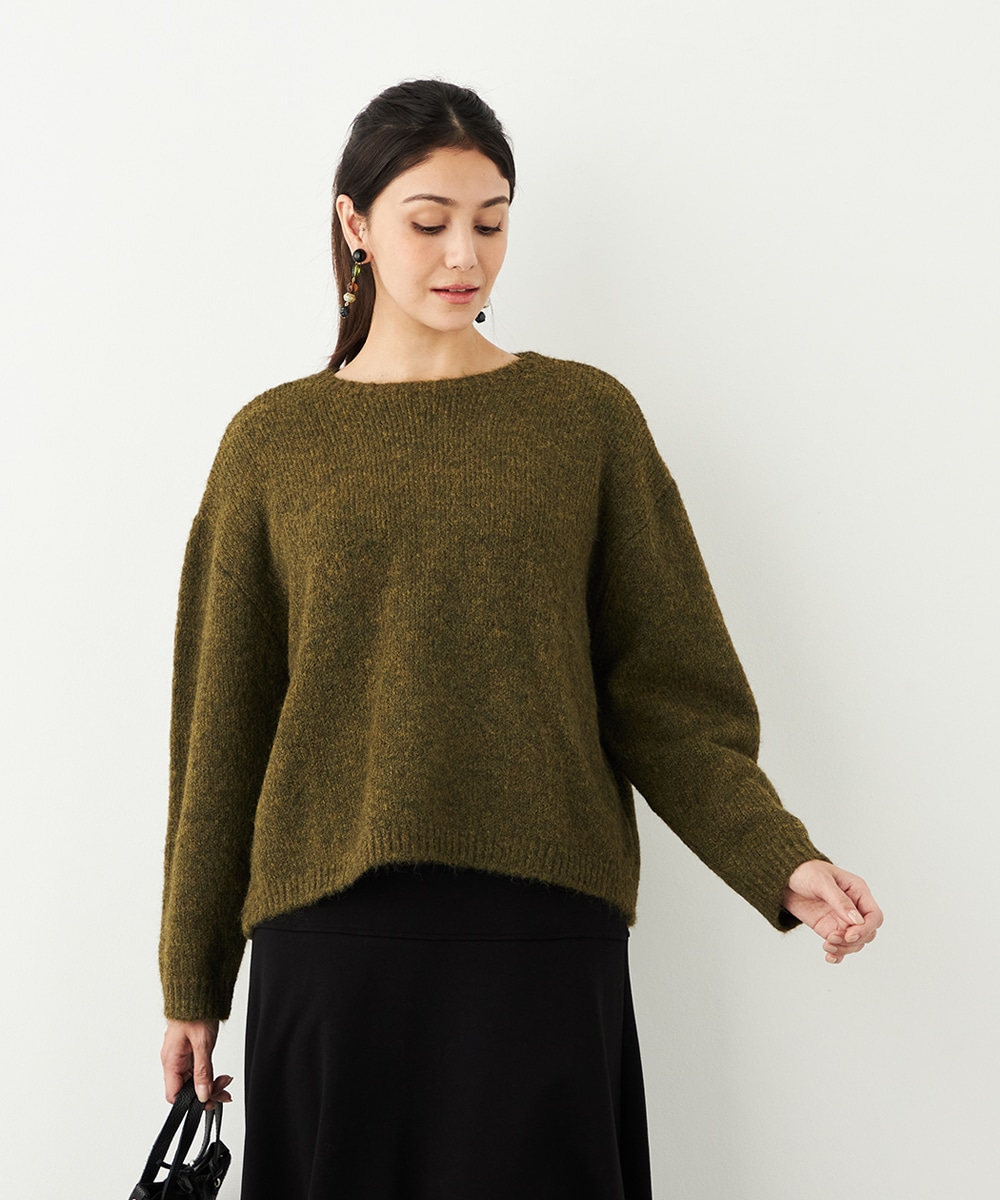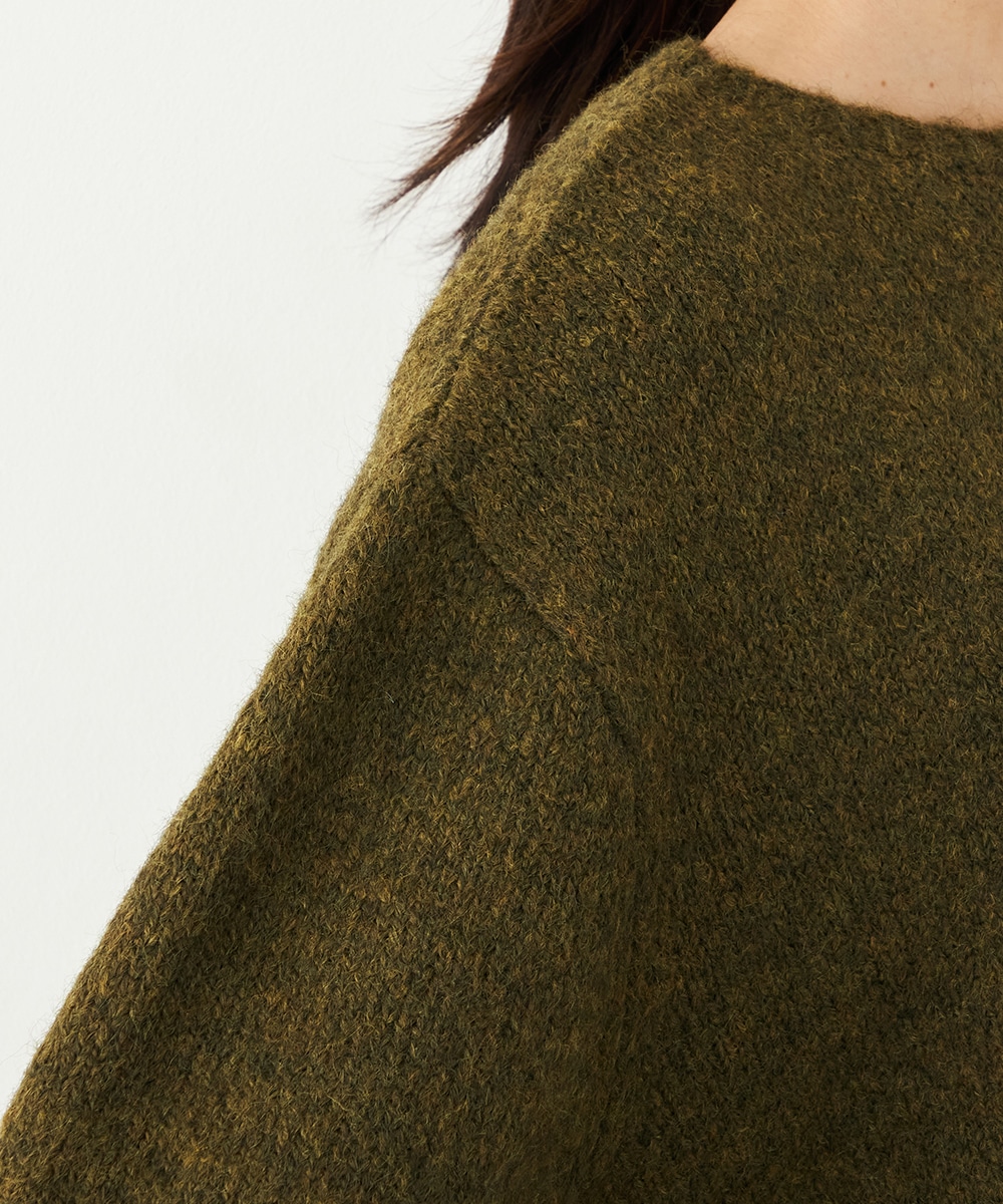 デザインはごくシンプルながらも、トレンドライクなコーディネートを楽しめるアイテムです。着丈は長すぎず短すぎず、さまざまなボトムと好相性。ほどよい毛羽感のある表情は秋冬シーズンにぴったりな暖かみを印象付けます。チクチクしにくくソフトな肌触りも魅力です。