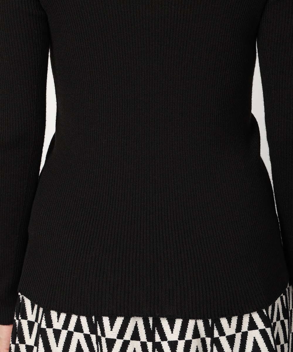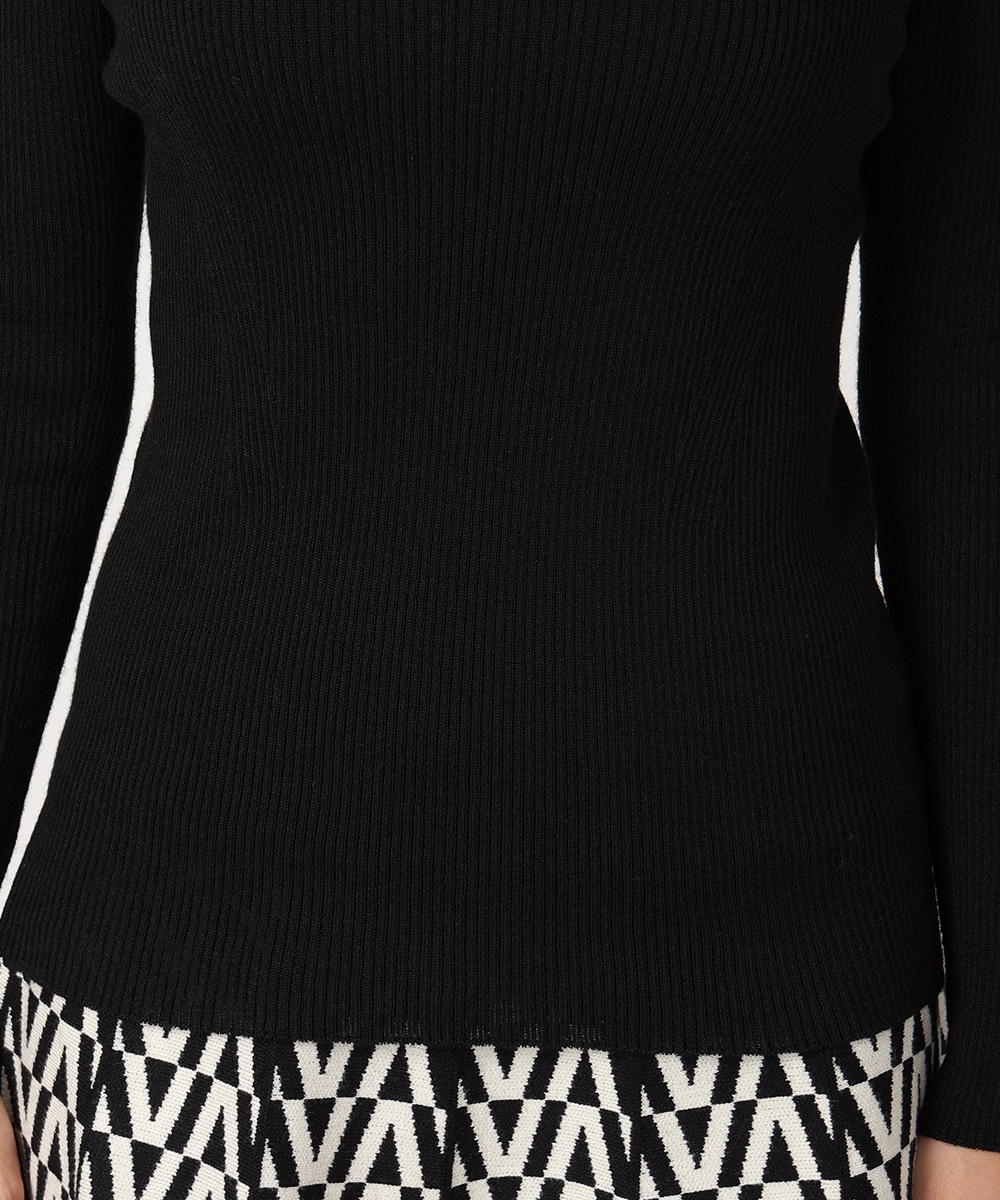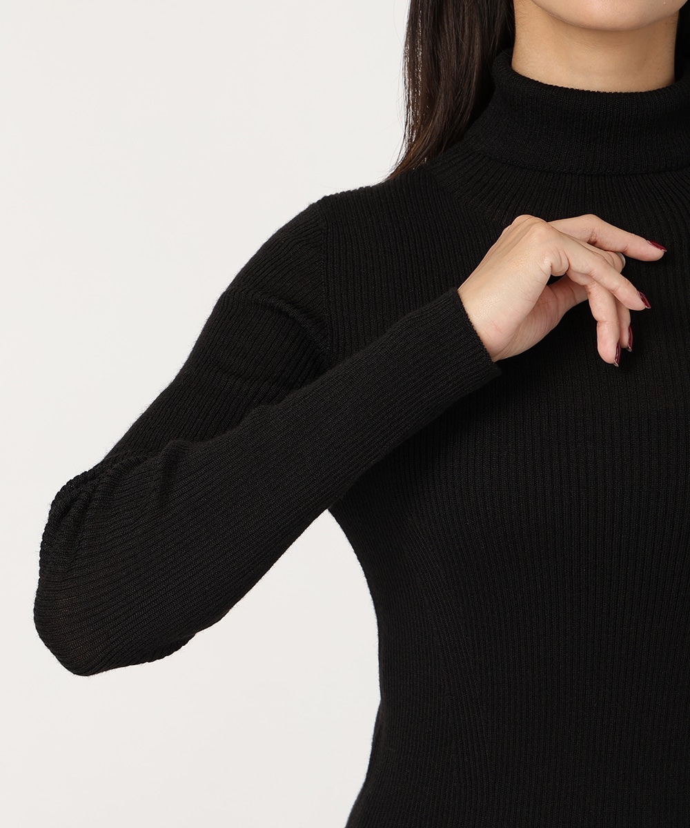 縫い目のないホールガーメント製法は、ふっくらと立体感があり優しい着心地が魅力です。程よい高さのタートルネックが顔周りを華やかに魅せ、ブラックカラーが引き締め効果にも。一枚やレイヤードなど、ロングシーズンに重宝します。