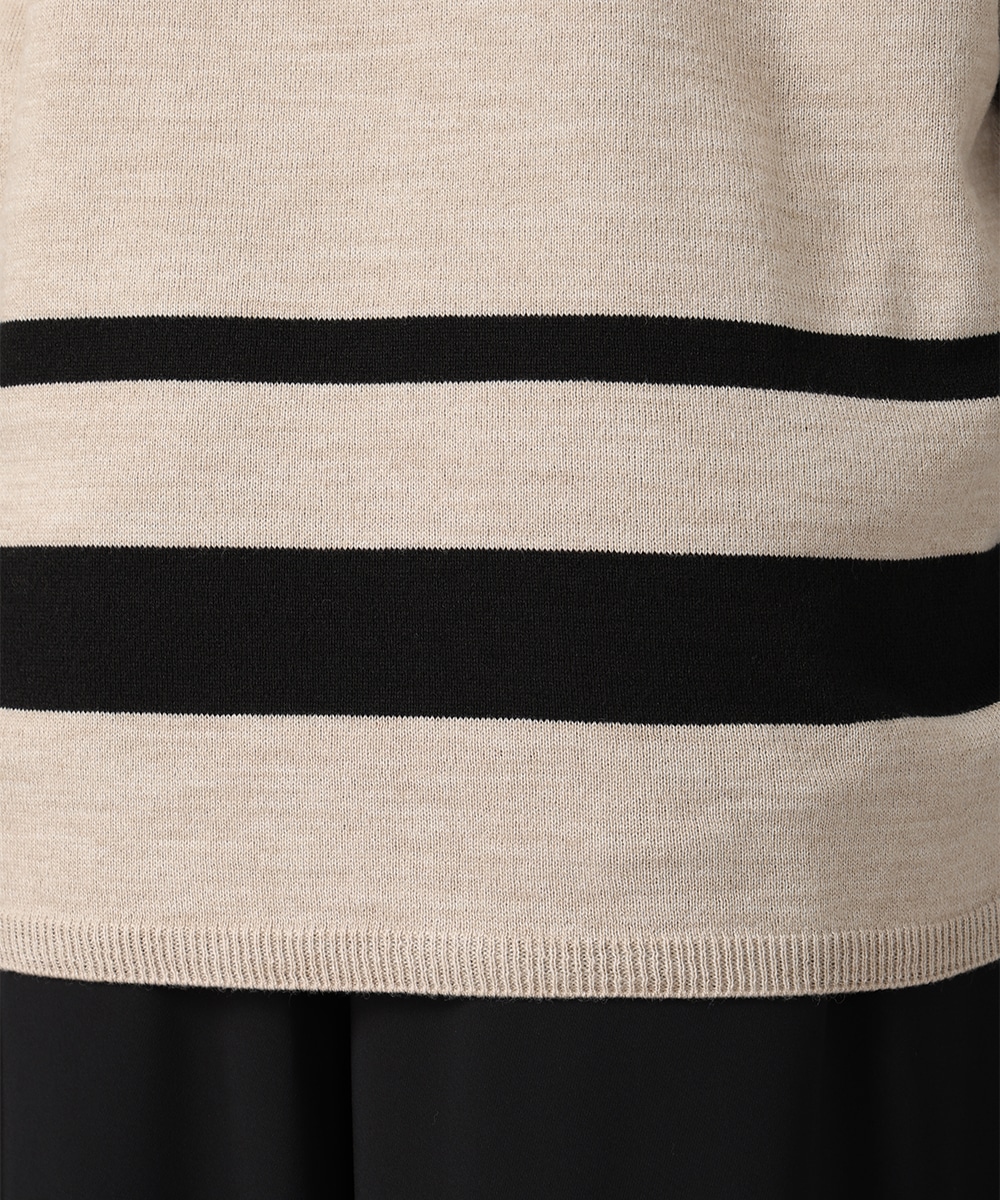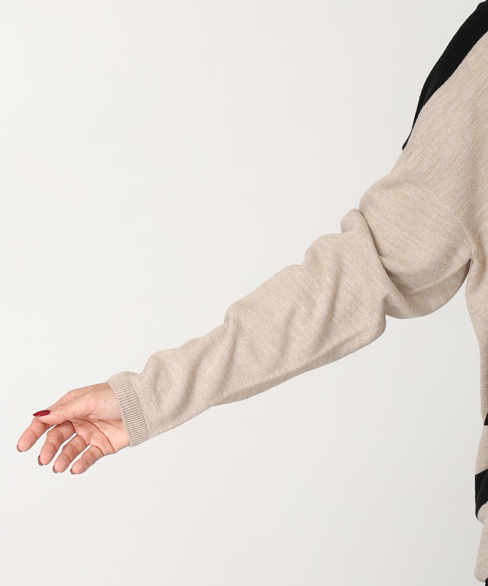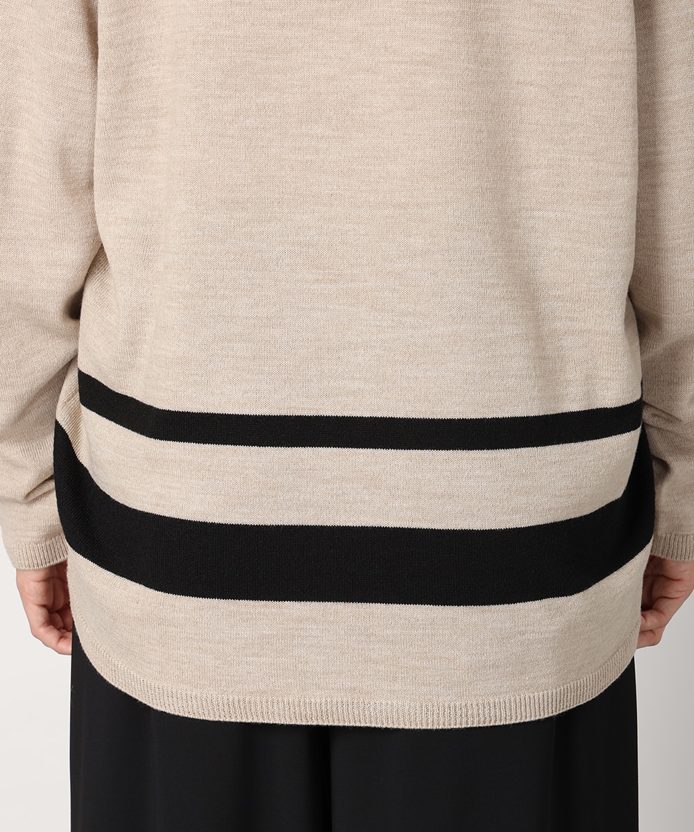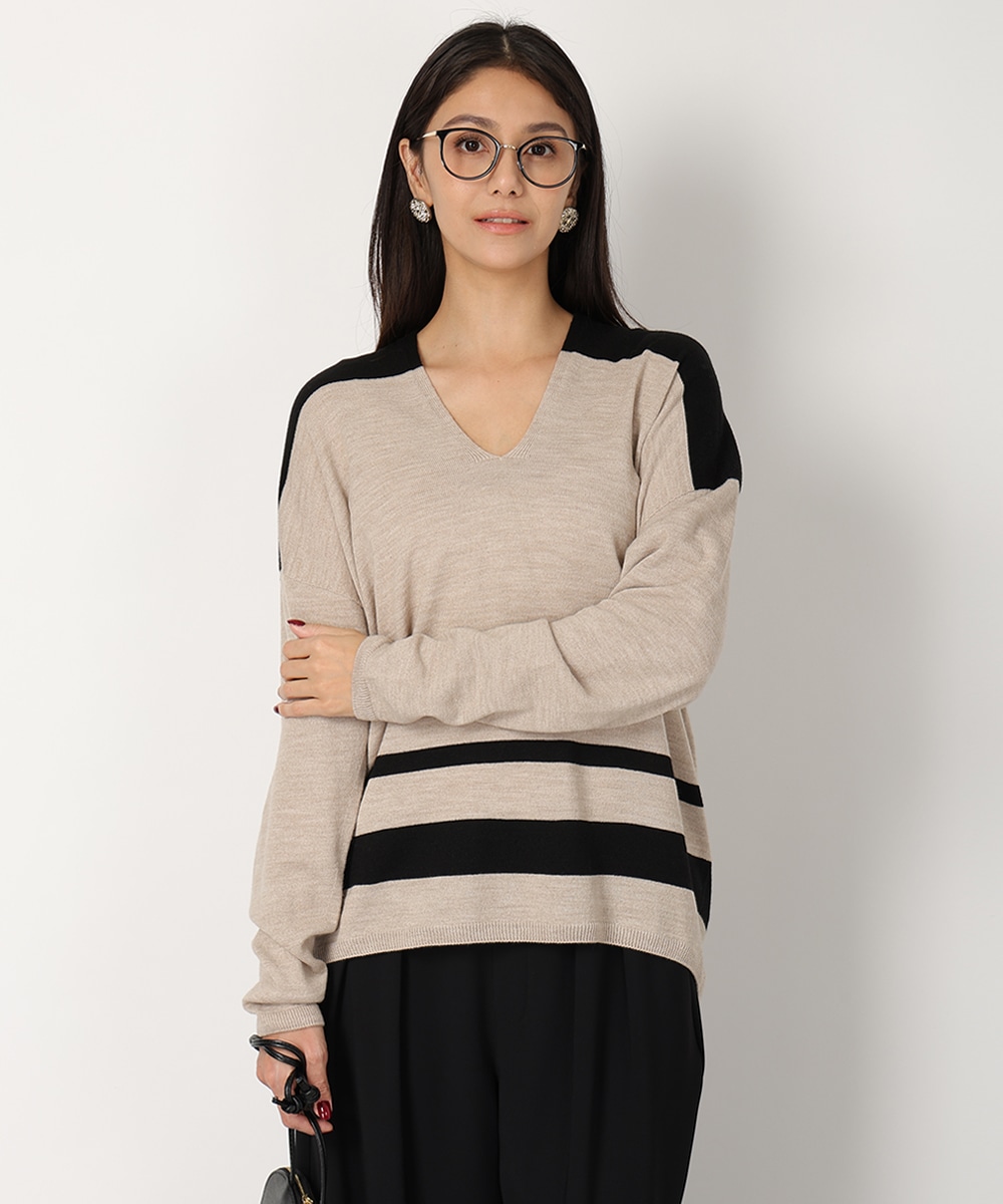 大人っぽく着こなせる落ち着いたバイカラーのパネルボーダーで仕上げました。首元からデコルテラインを美しく魅せる絶妙なVネックがポイント。縫い目のないホールガーメント製法は美しいシルエットを生み出し、さらりとした着心地を提供。リラックス感のあるパンツと合わせるだけでも、こなれた雰囲気をプラスします。
