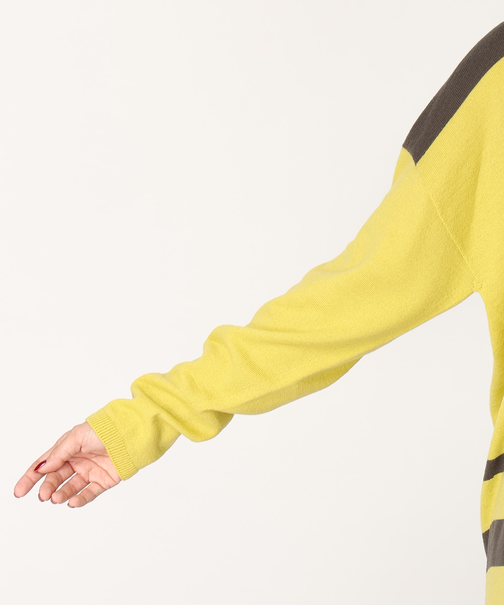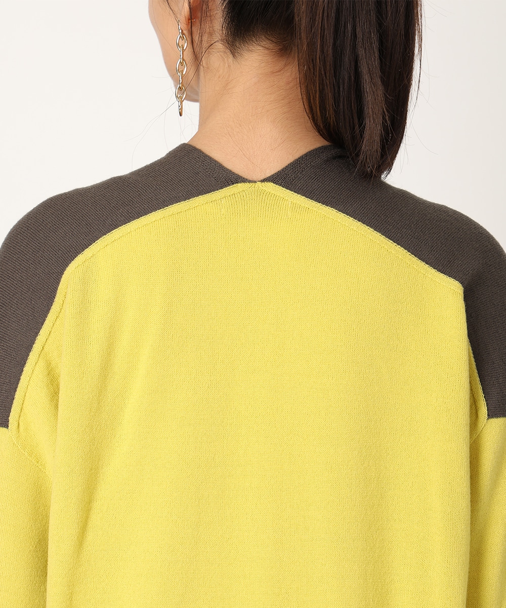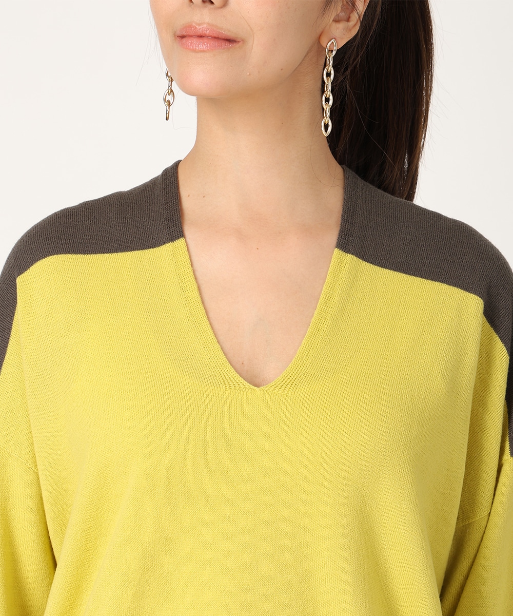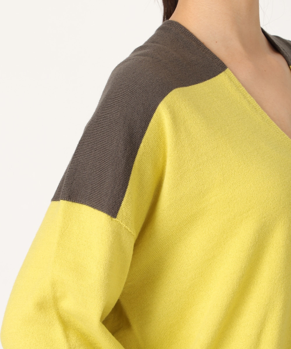 ビビットなバイカラーのパネルボーダーで華やかに仕上げました。首元からデコルテラインを美しく魅せる絶妙なVネックがポイント。縫い目のないホールガーメント製法は美しいシルエットを生み出し、さらりとした着心地を提供。リラックス感のあるボトムスと合わせるだけでも、こなれた雰囲気をプラスします。