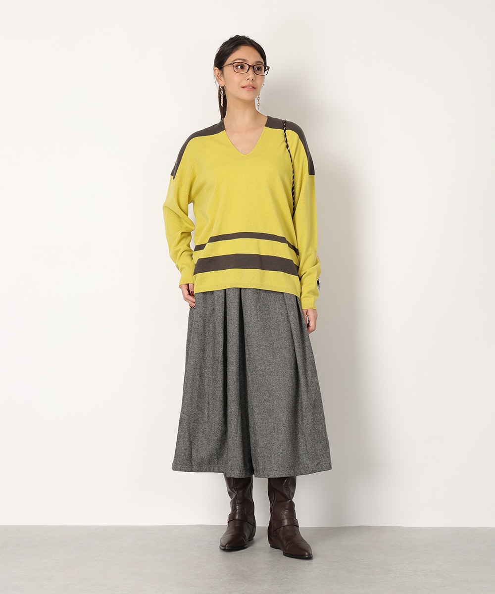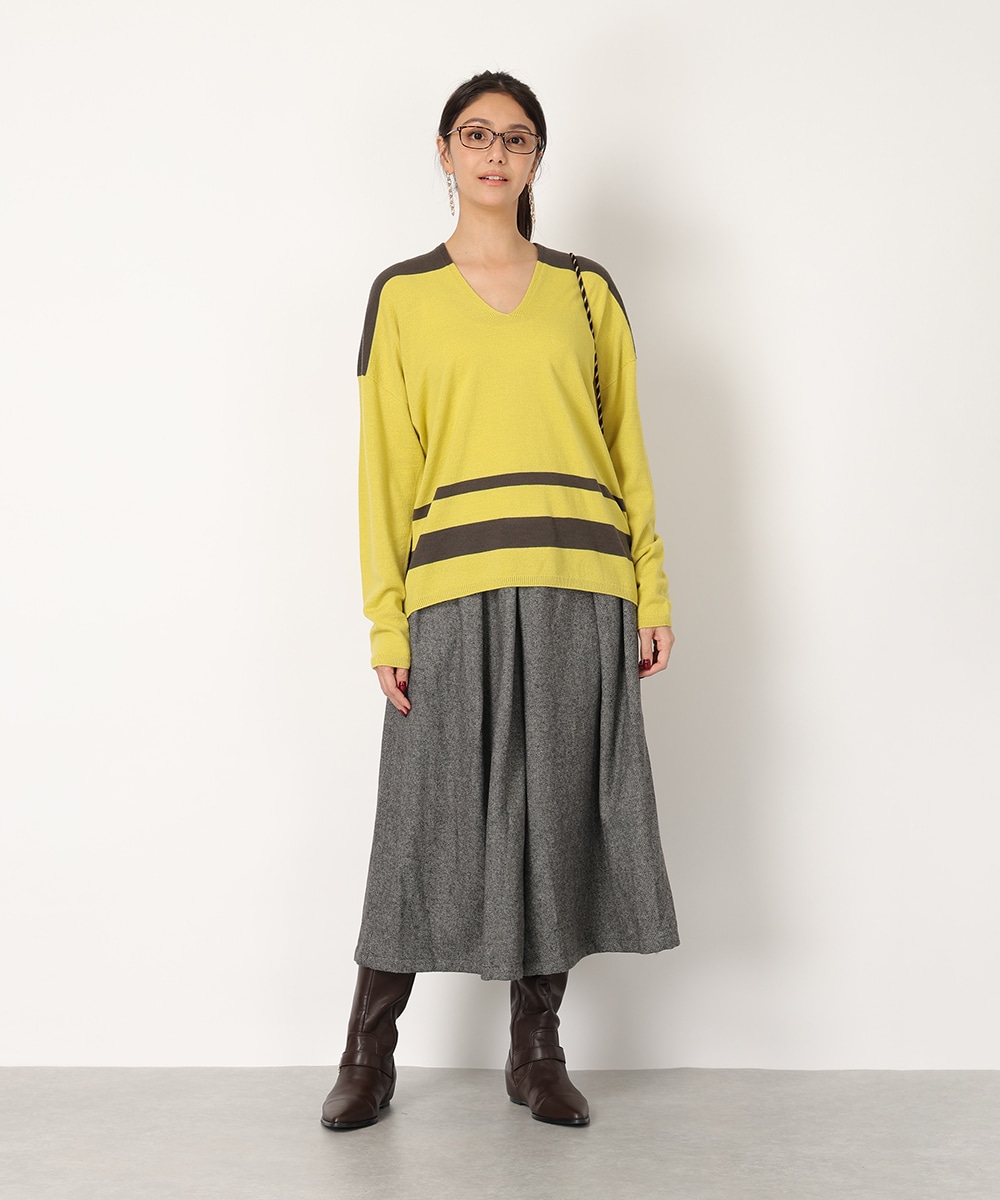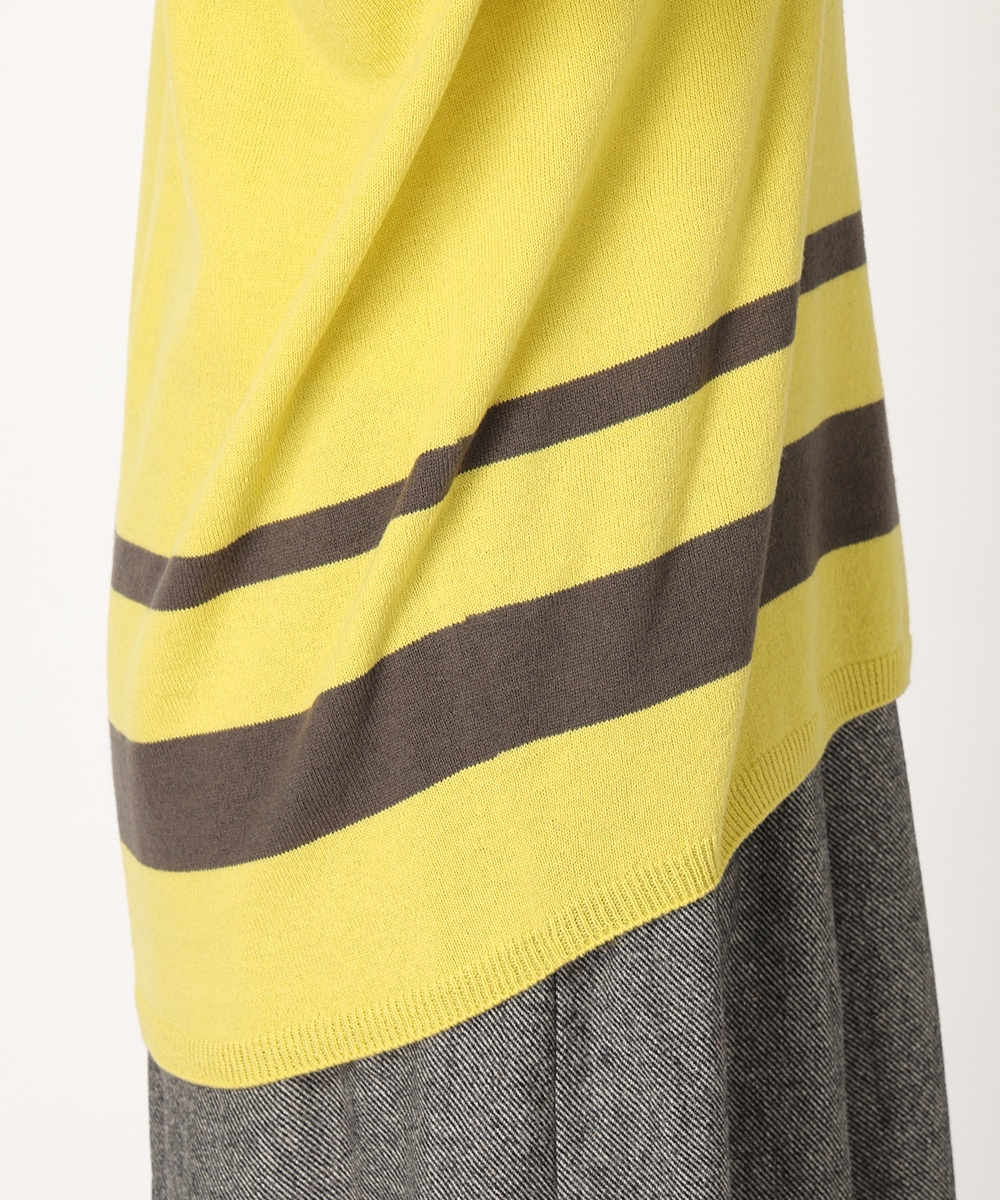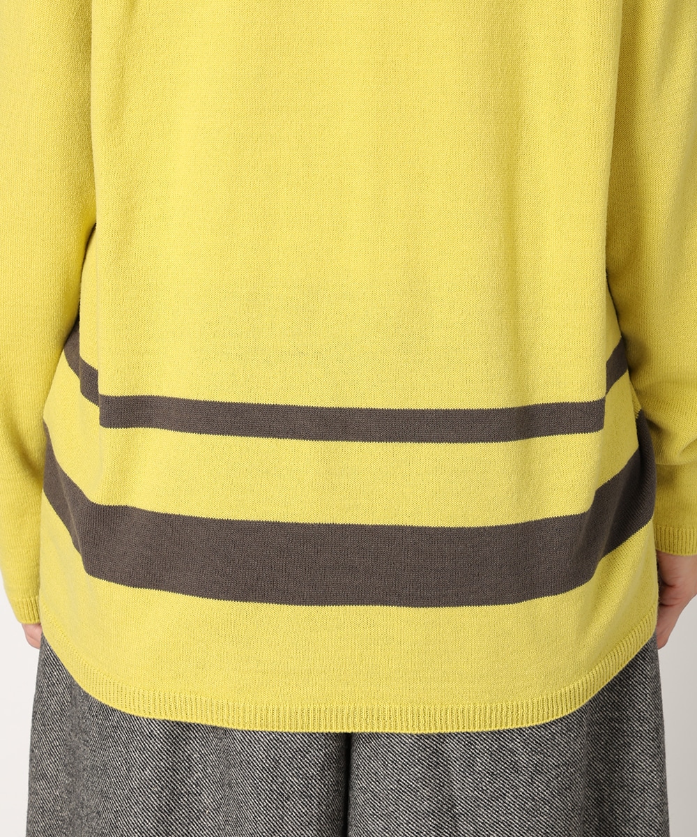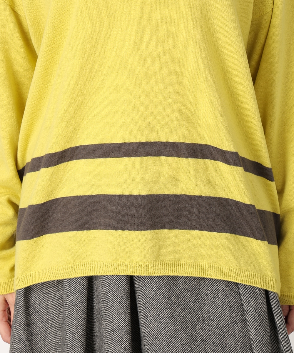 ビビットなバイカラーのパネルボーダーで華やかに仕上げました。首元からデコルテラインを美しく魅せる絶妙なVネックがポイント。縫い目のないホールガーメント製法は美しいシルエットを生み出し、さらりとした着心地を提供。リラックス感のあるボトムスと合わせるだけでも、こなれた雰囲気をプラスします。
