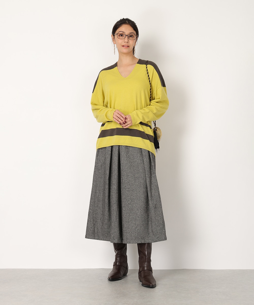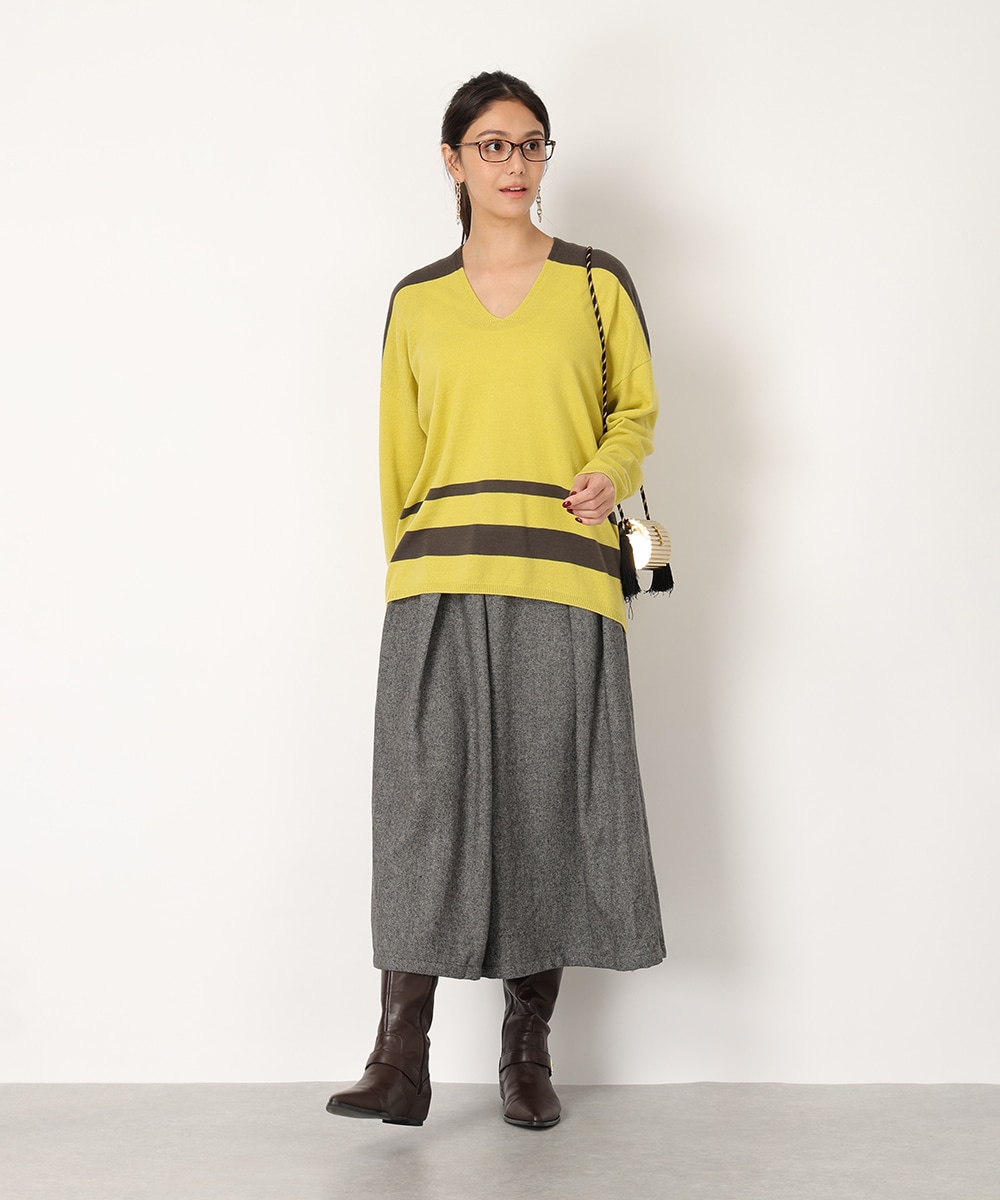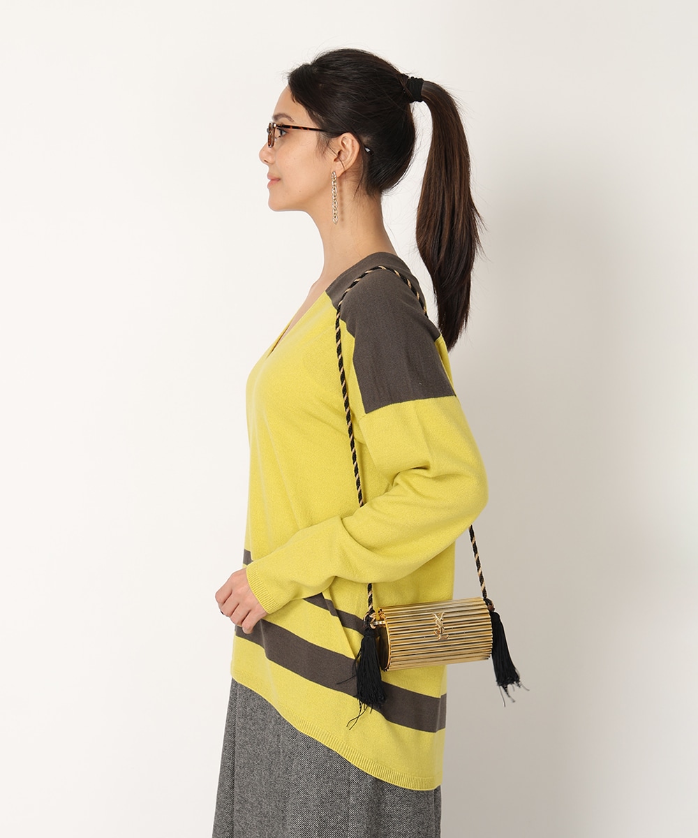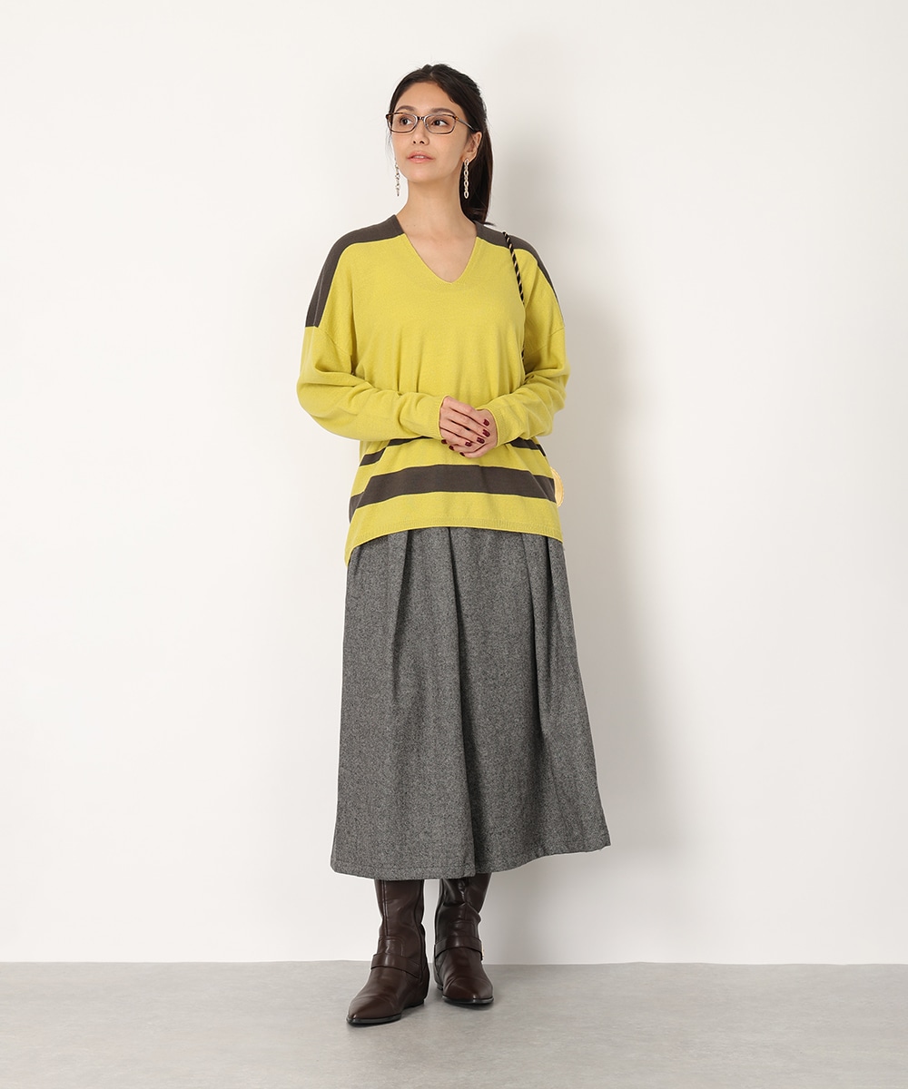 ビビットなバイカラーのパネルボーダーで華やかに仕上げました。首元からデコルテラインを美しく魅せる絶妙なVネックがポイント。縫い目のないホールガーメント製法は美しいシルエットを生み出し、さらりとした着心地を提供。リラックス感のあるボトムスと合わせるだけでも、こなれた雰囲気をプラスします。