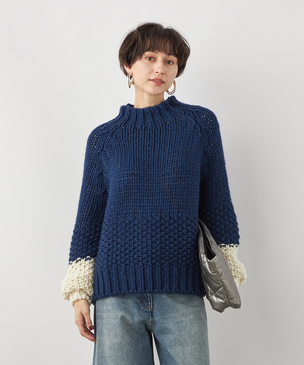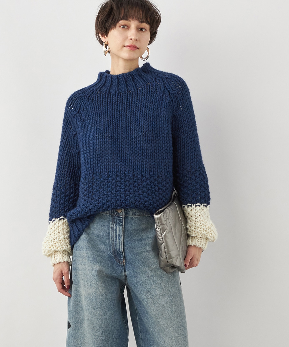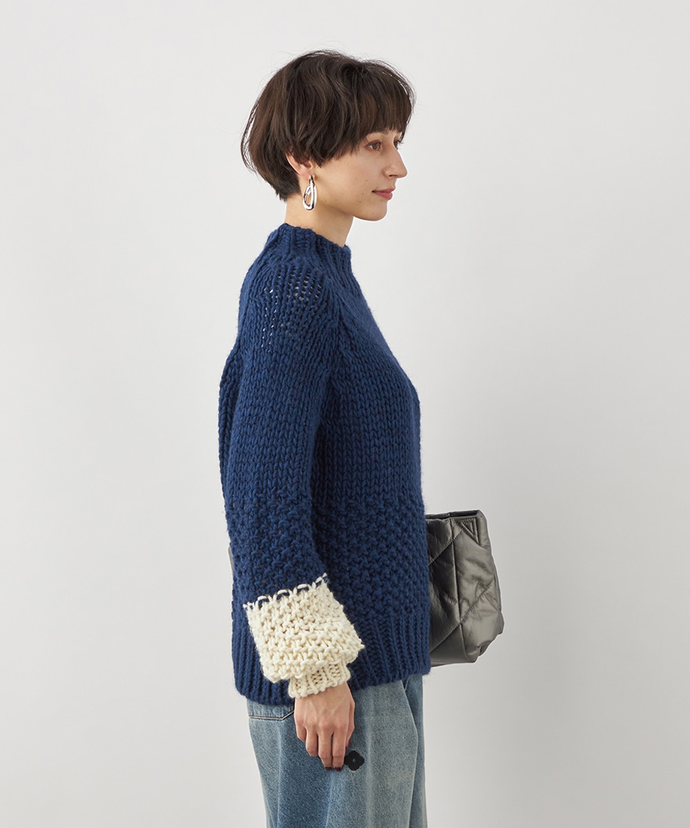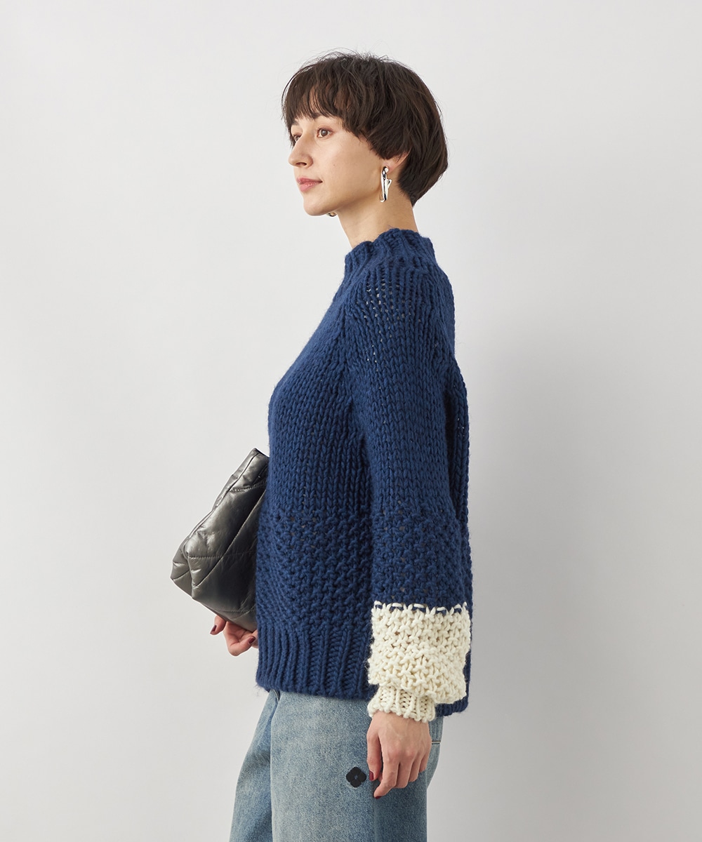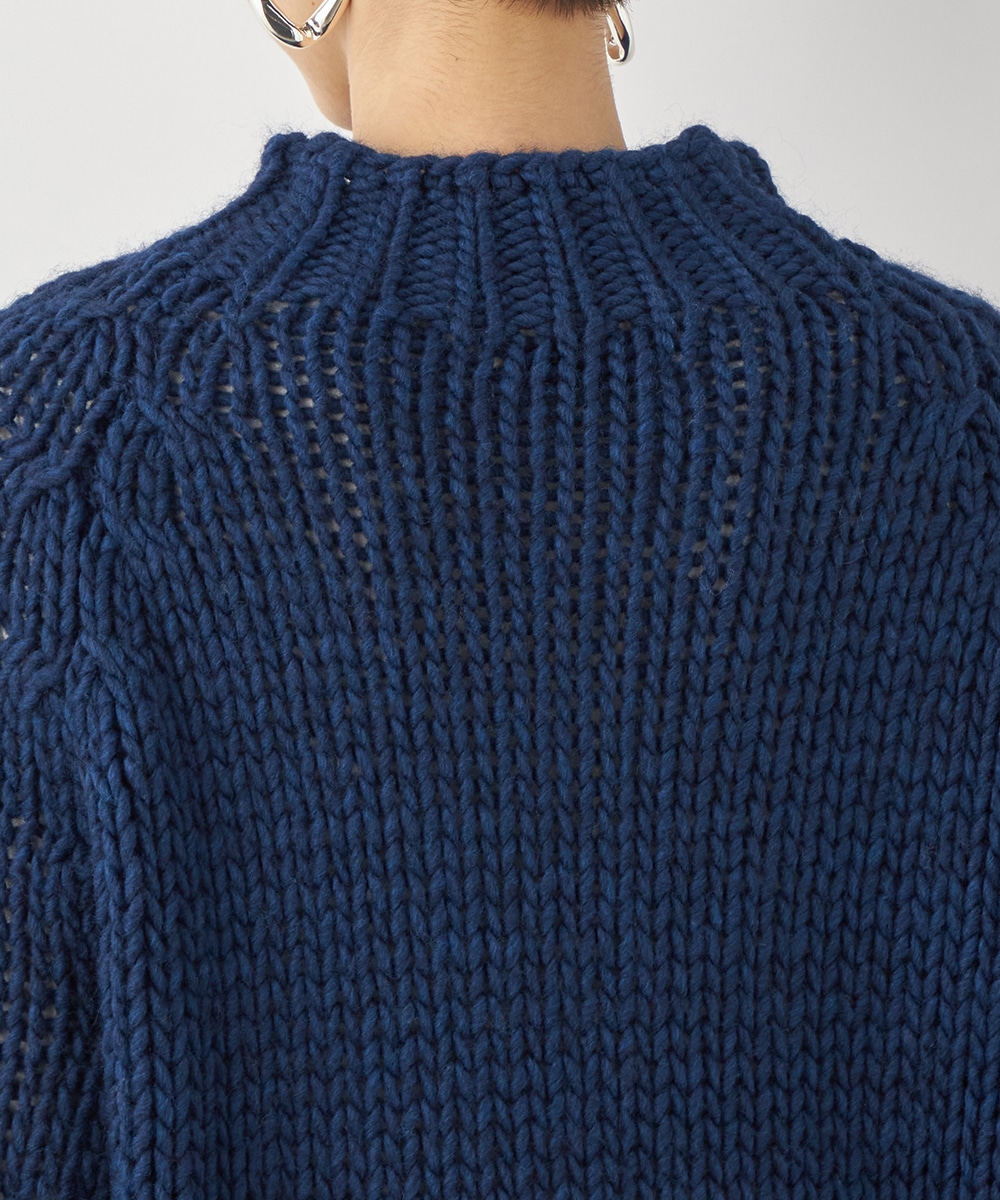 太めの糸を編み立てており、ナチュラル感のある表情に仕上がっています。編み方の違いのさりげないメリハリもこだわりのポイントです。見た目も着心地も暖かなハイネックを採用しています。シルエットは適度にゆったりとして動きやすく、普段のカジュアルにぴったりです。