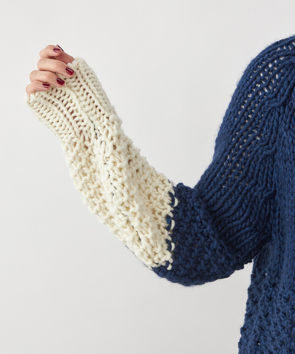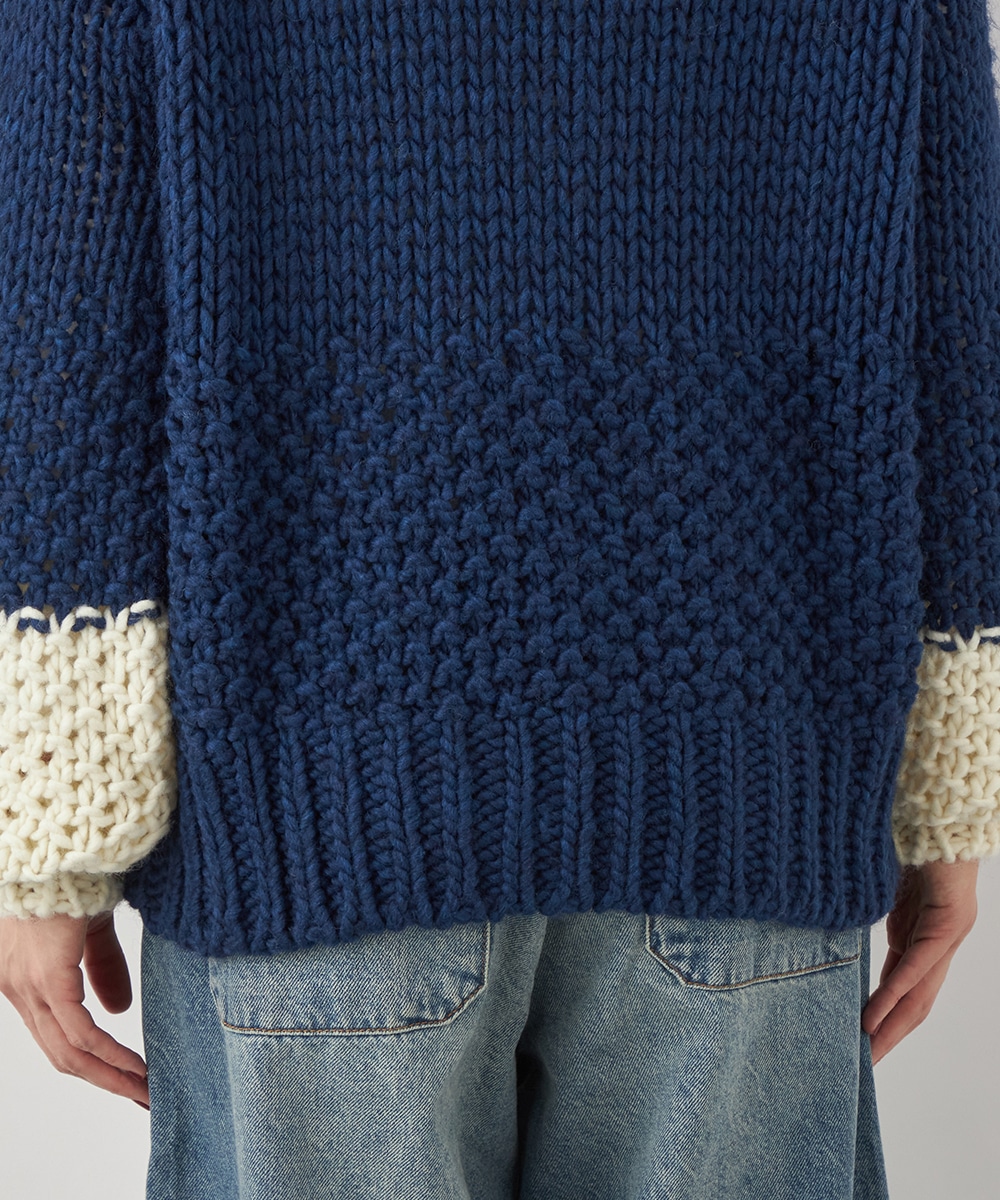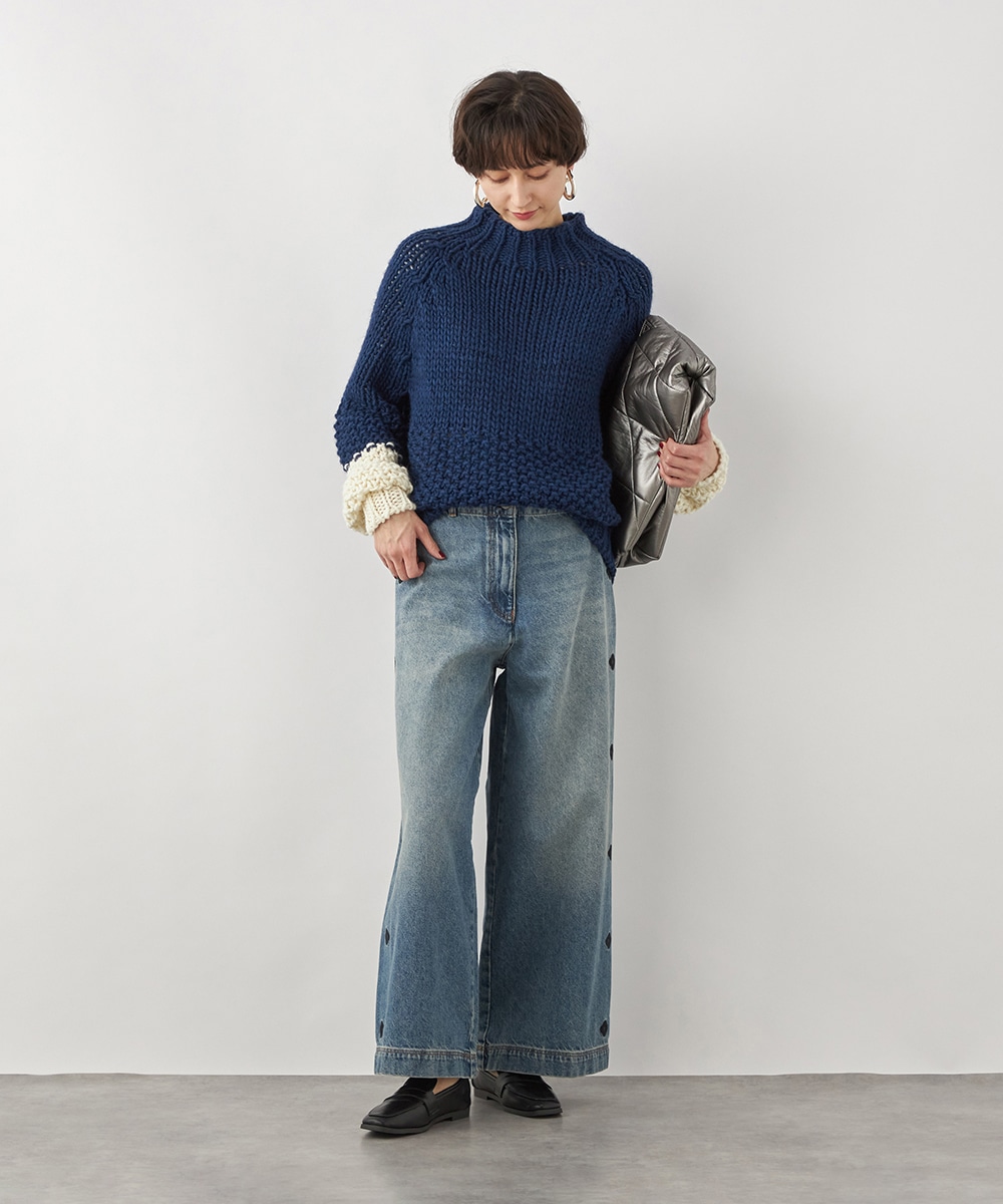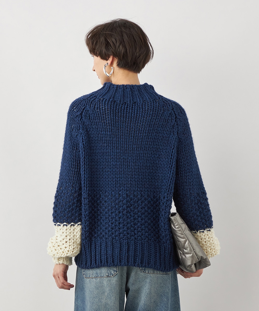 太めの糸を編み立てており、ナチュラル感のある表情に仕上がっています。編み方の違いのさりげないメリハリもこだわりのポイントです。見た目も着心地も暖かなハイネックを採用しています。シルエットは適度にゆったりとして動きやすく、普段のカジュアルにぴったりです。