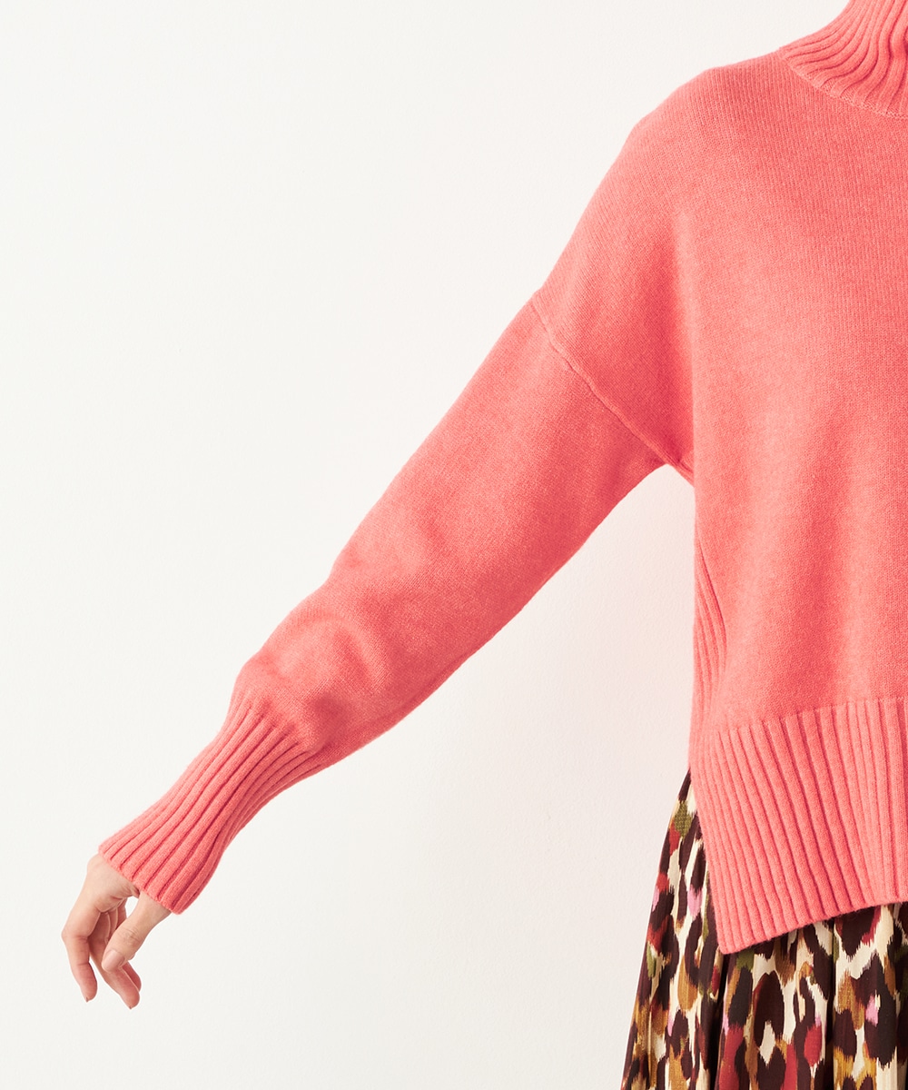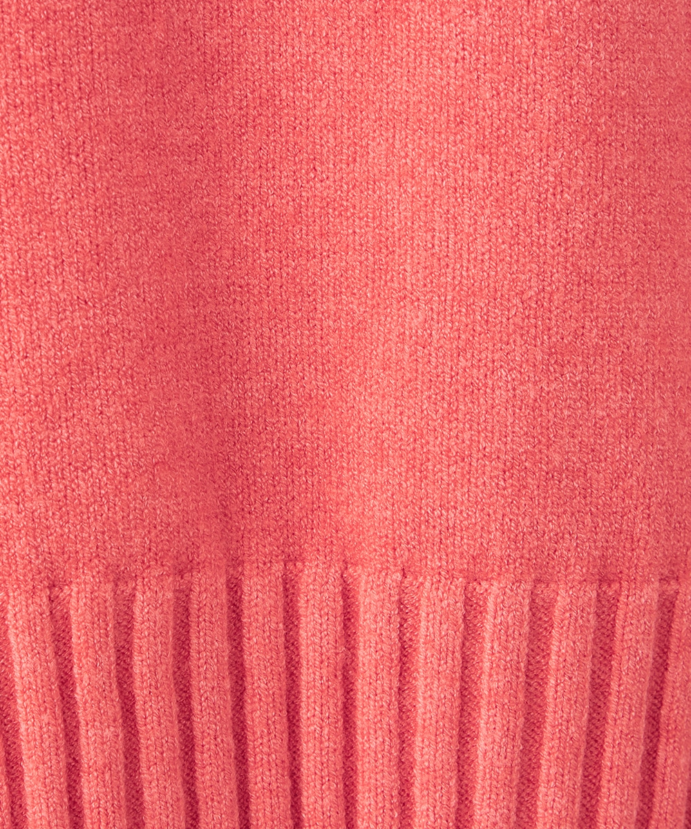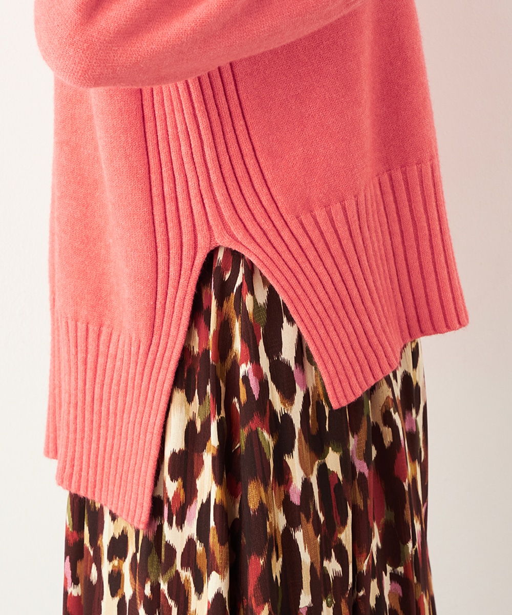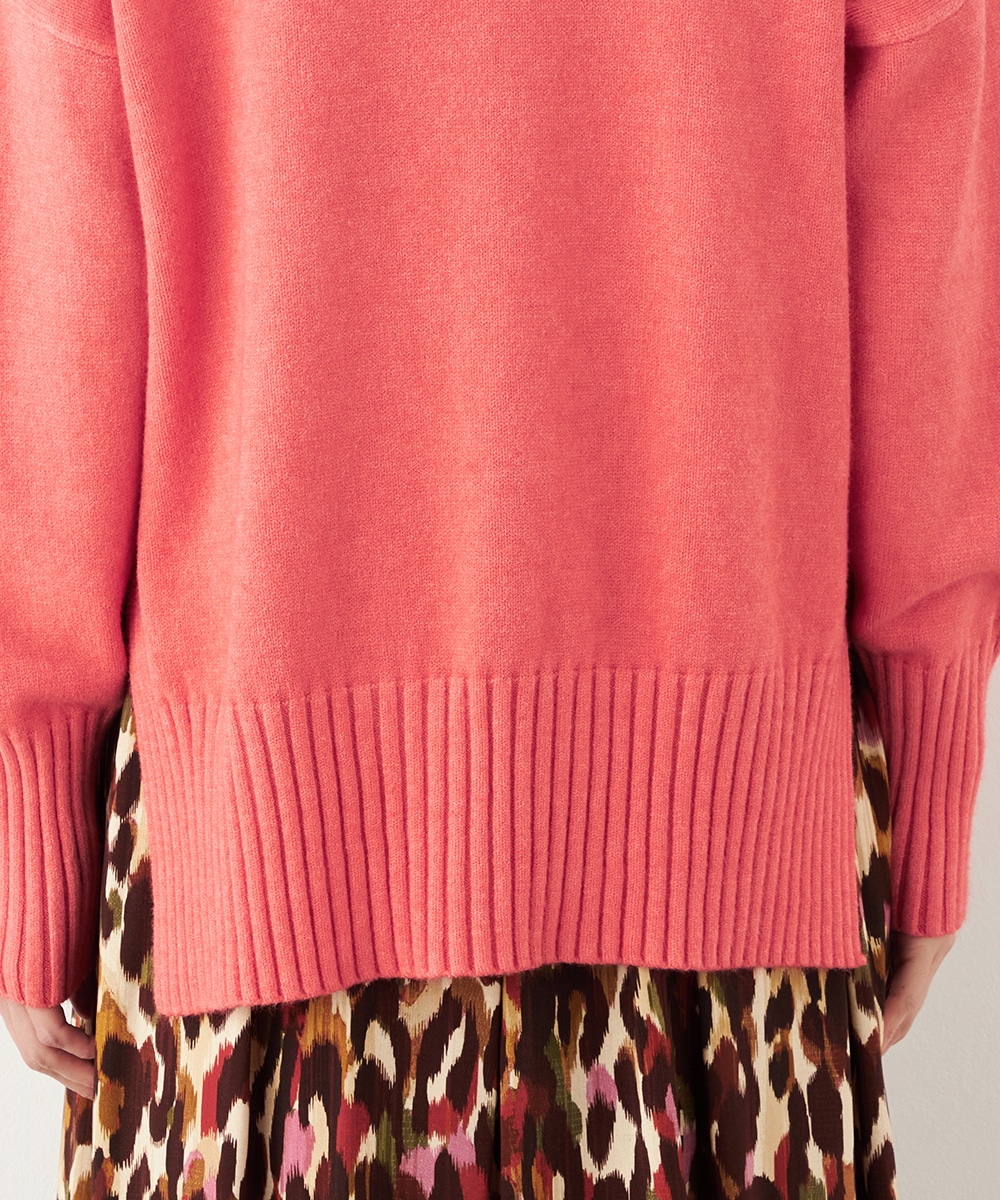 ヒップをさりげなくカバーできるのもポイントです。ドロップショルダーのゆったりとしたシルエットがトレンド感をプラス。両サイドのリブ編みが縦ラインを強調して、すっきりとしたスタイルを演出します。今年はキュートなピンクとシックなブラウンの2色展開です。