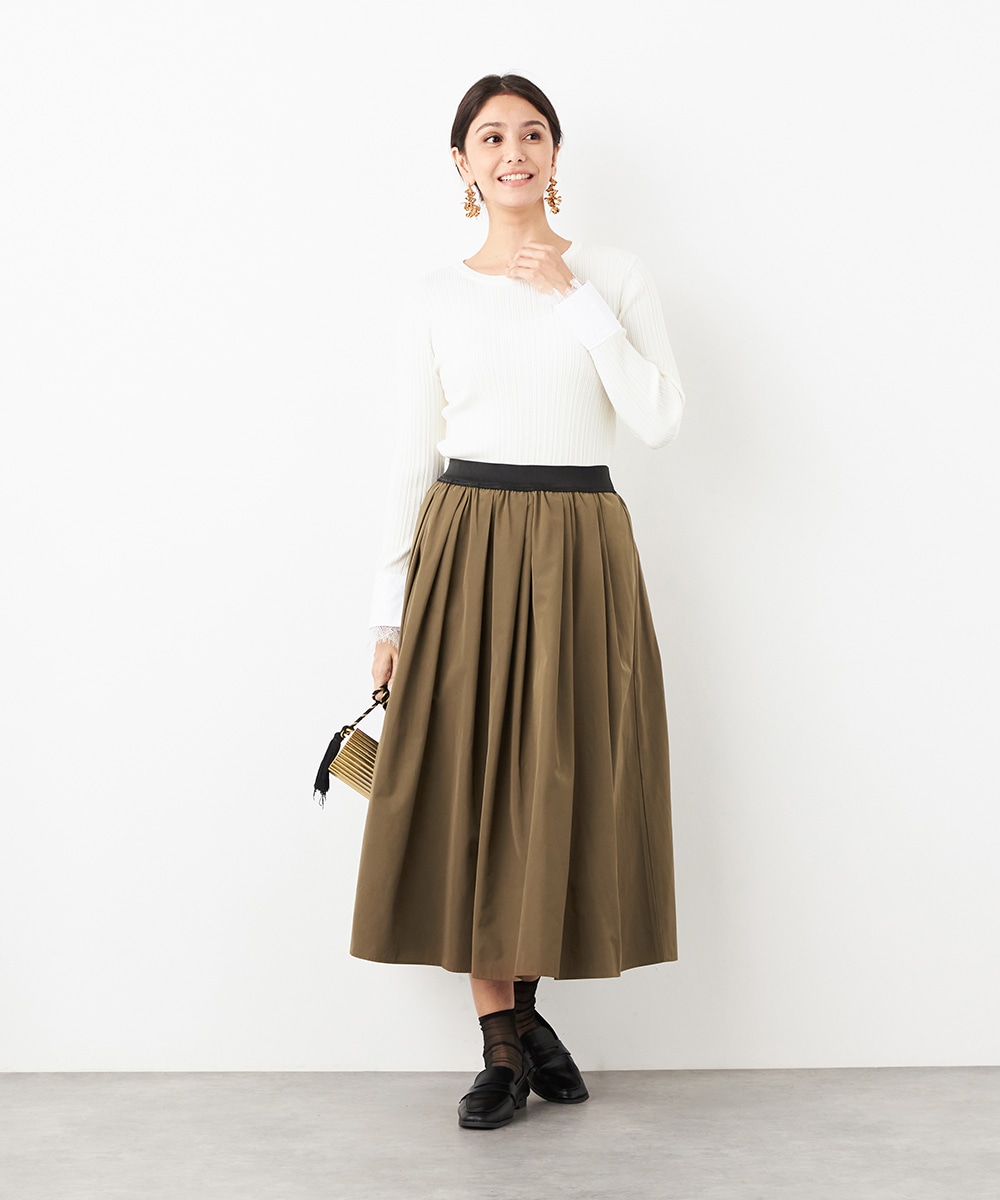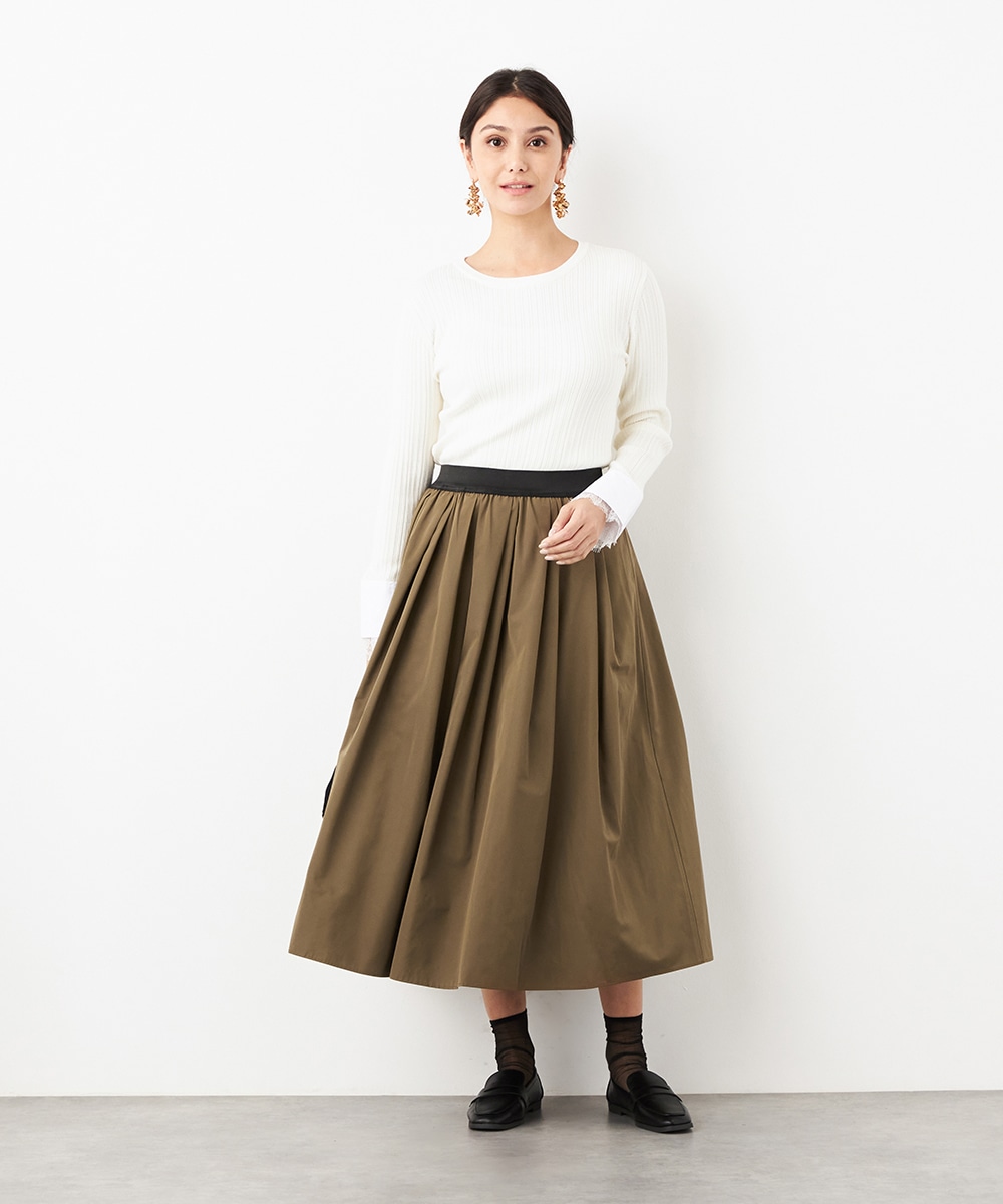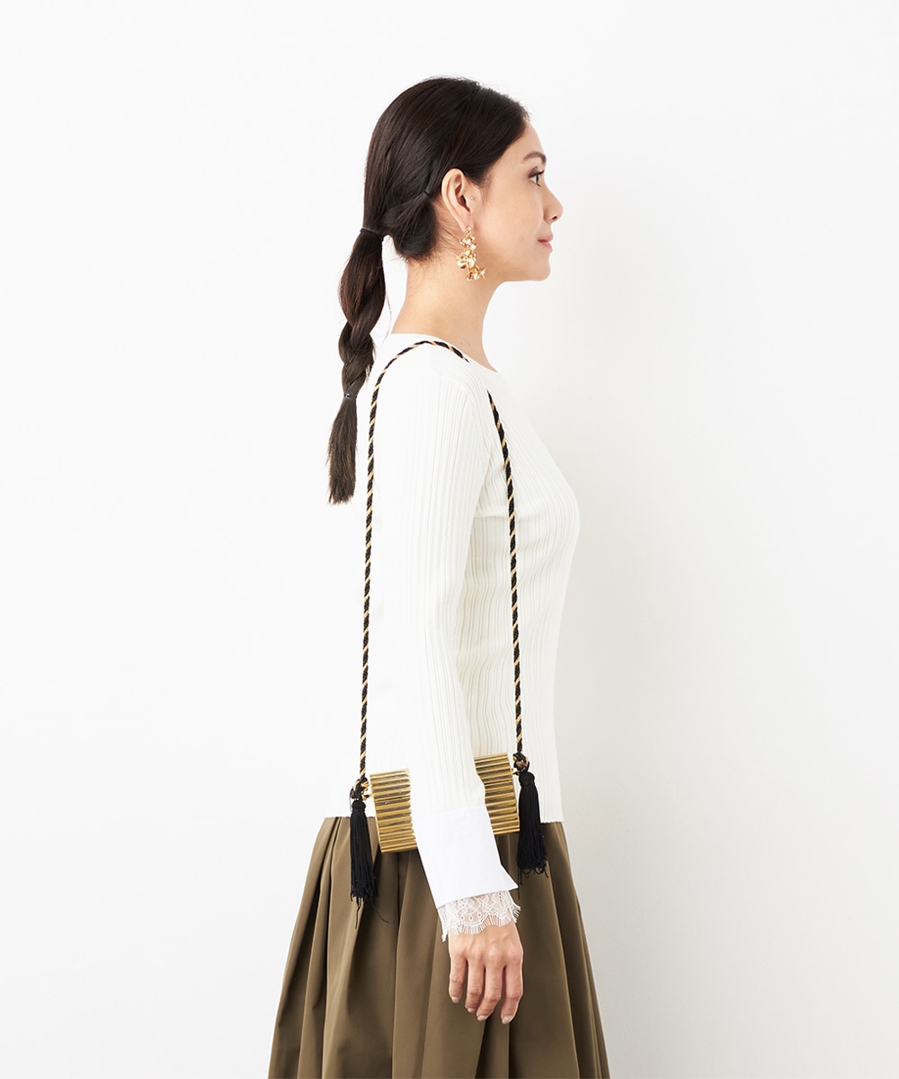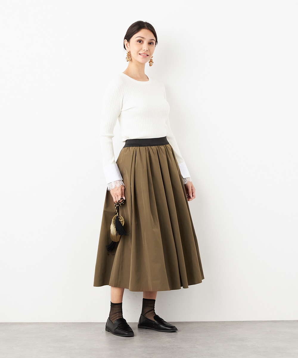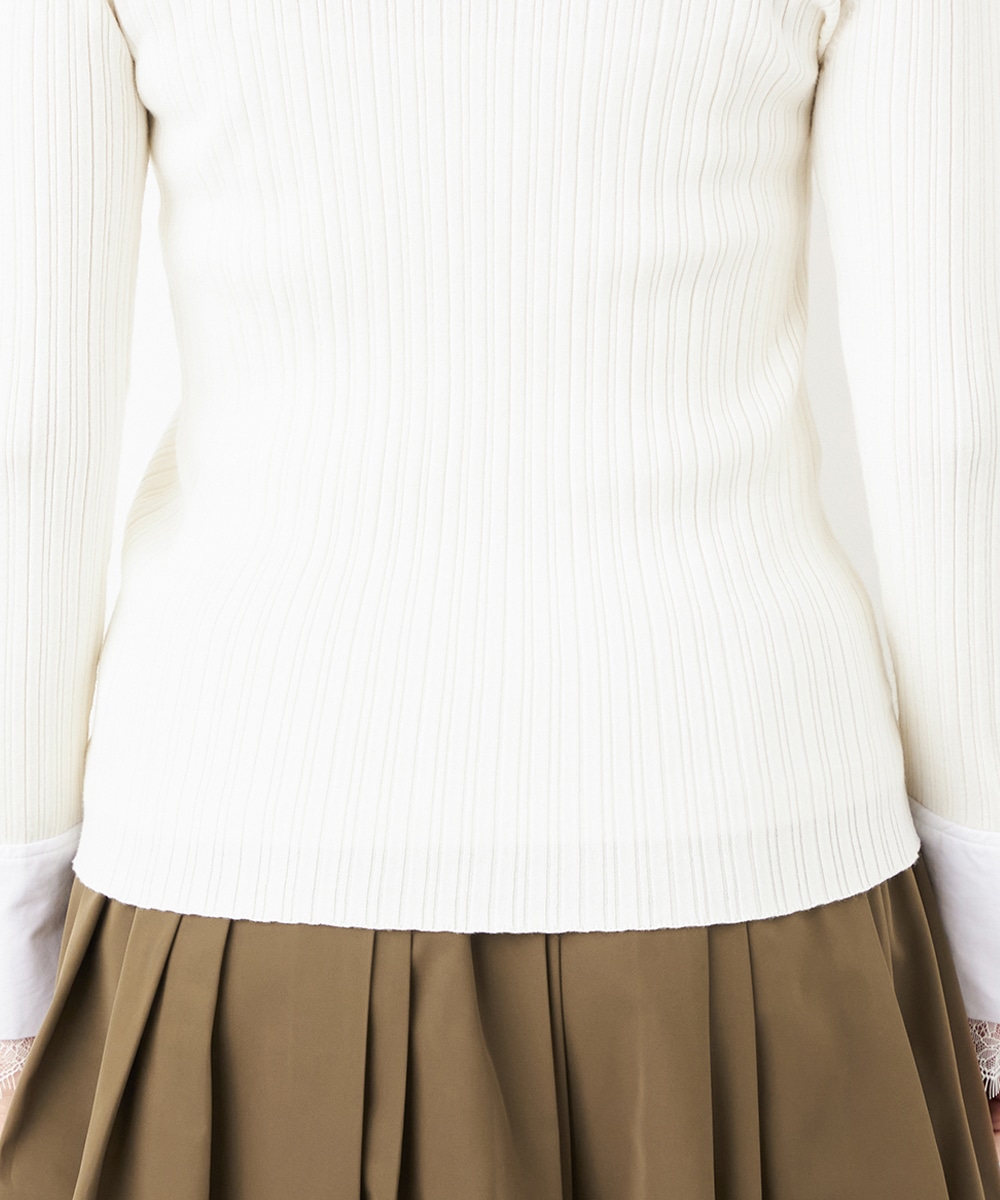 すっきりと着こなせるリブニット地にカフスデザインを取り入れて、シャツ風の袖口に仕上げています。内側には繊細なレースをあしらい、クラシカルな雰囲気をプラス。ほどよい存在感があり、一枚着としても活躍します。ボリュームのあるフレアスカートともバランス良く合わせられるアイテムです。