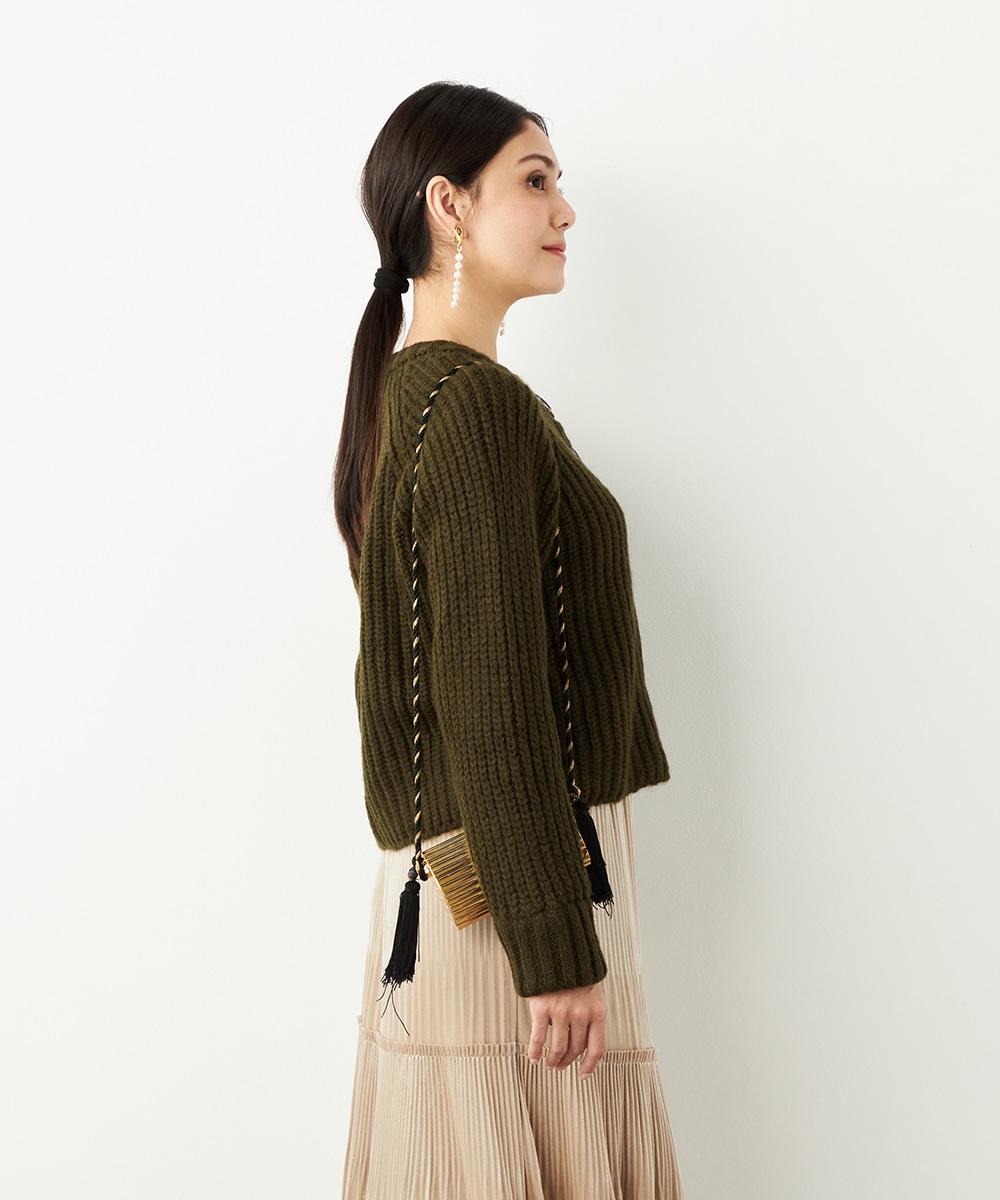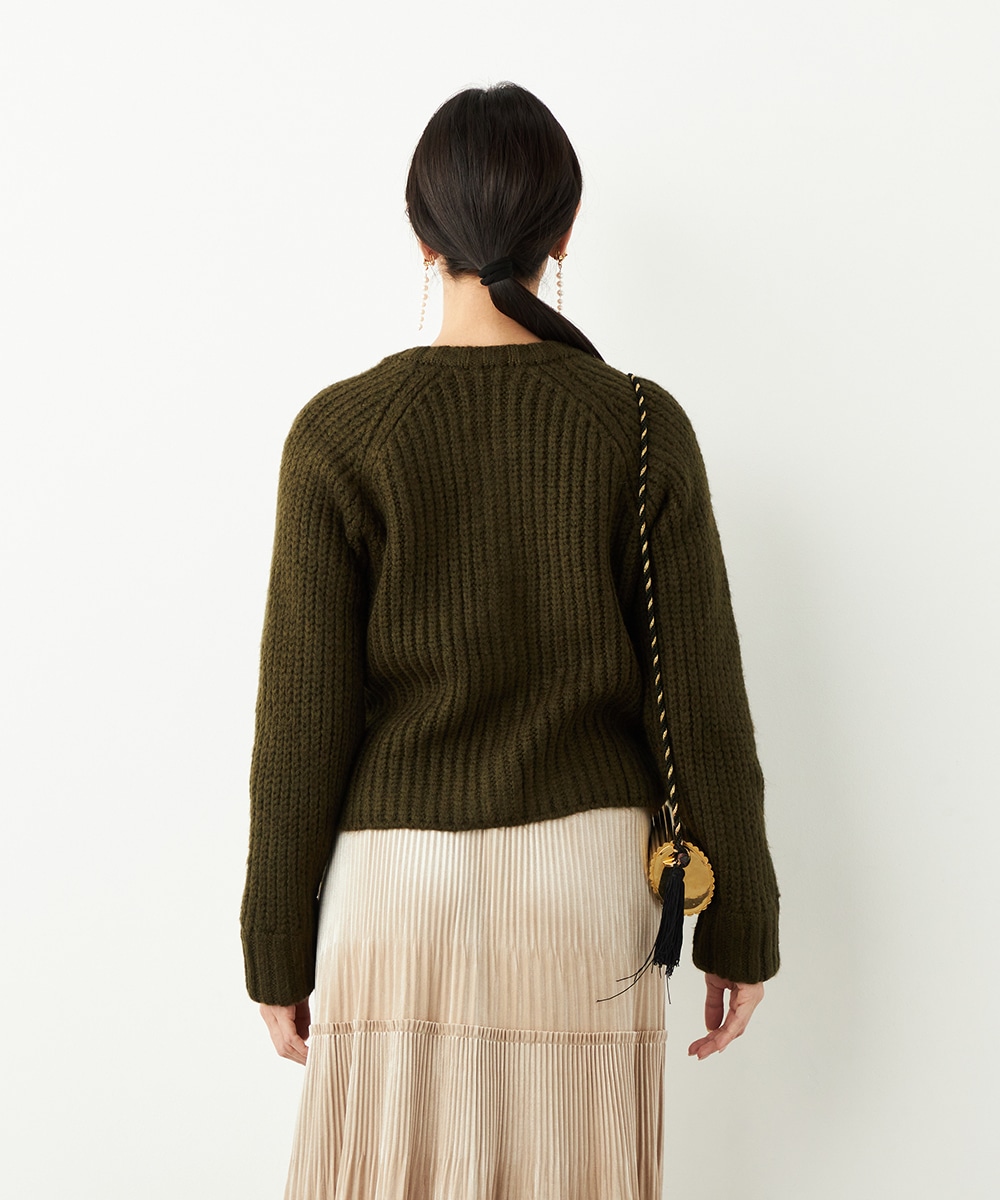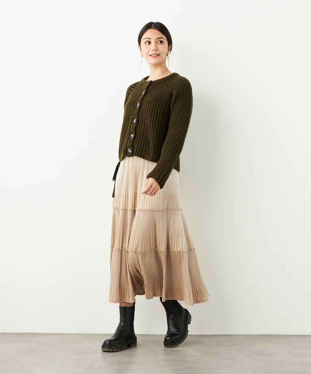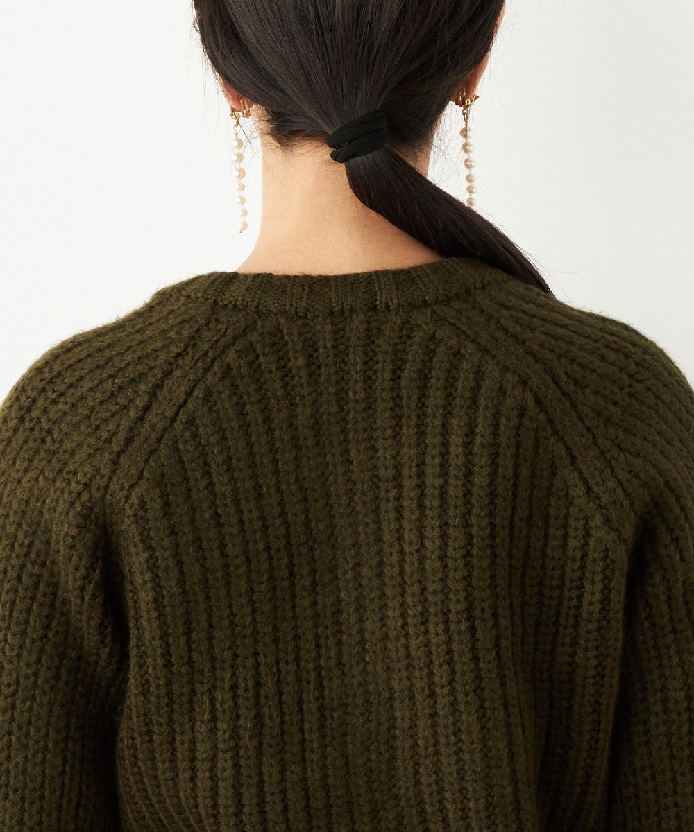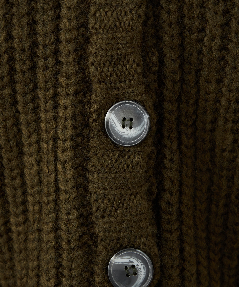 適度なゆとりのあるシルエットと短めの着丈のバランスが今年らしい印象です。大きめのボタンがアクセントとしても効いています。羽織にするのはもちろん、フロントを留めてプルオーバー風の一枚着として活用するのも素敵なアレンジ。さまざまなコーディネートに活用できます。