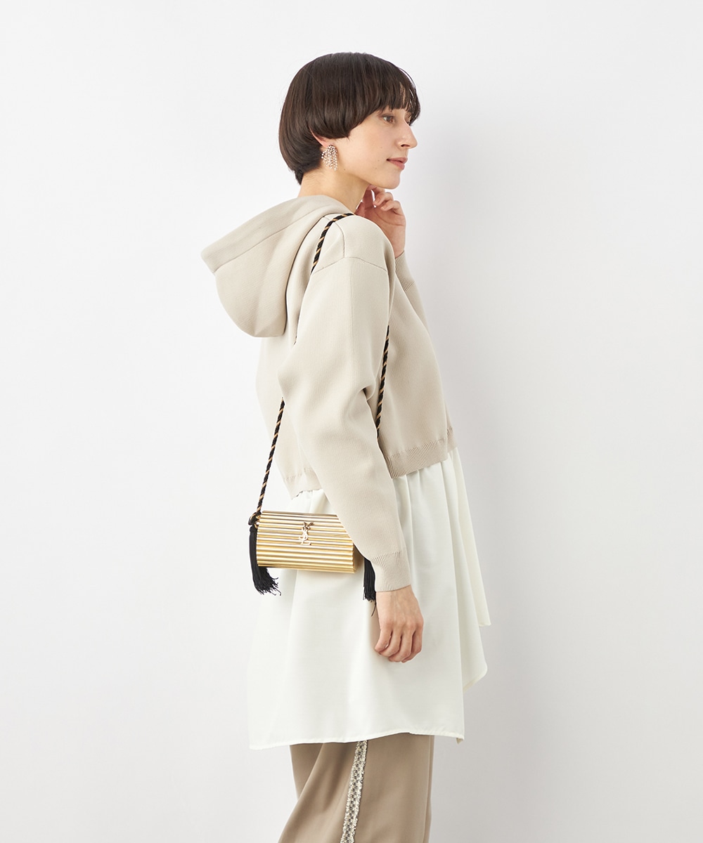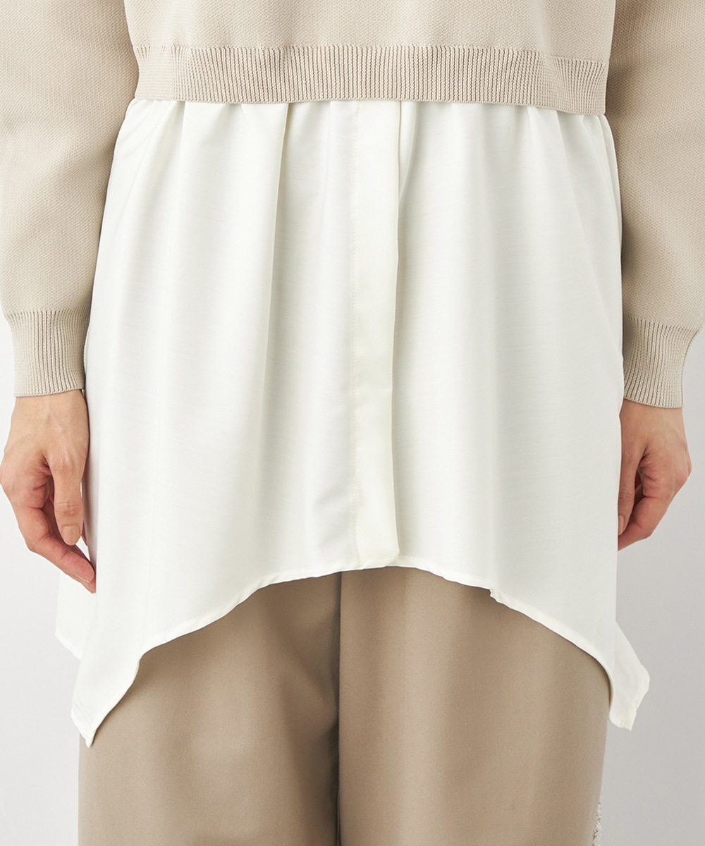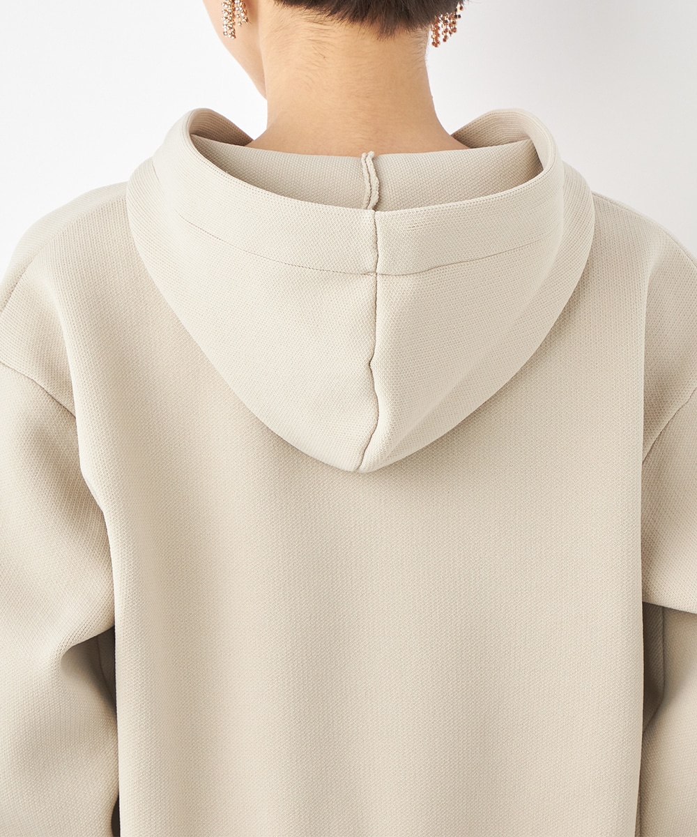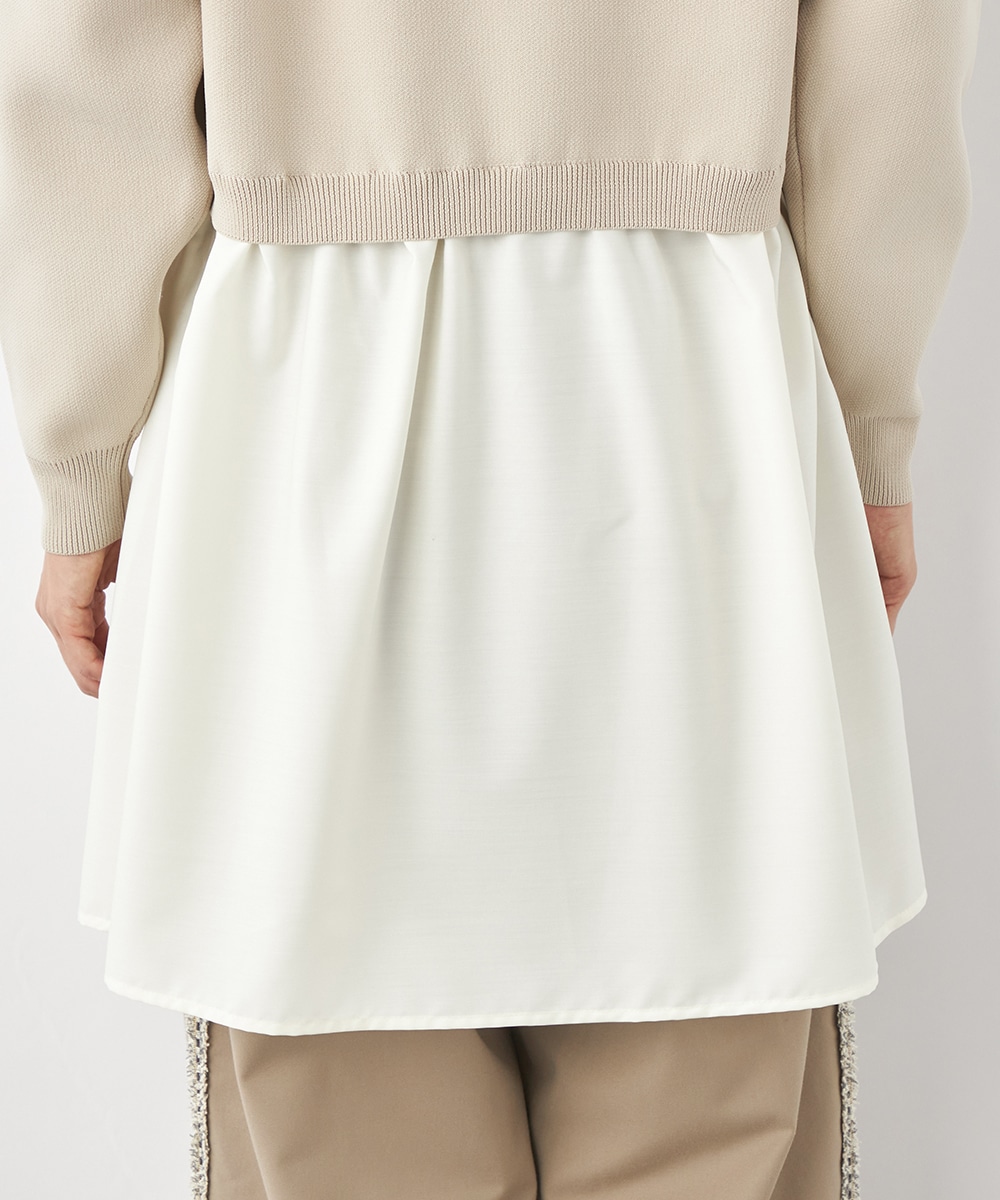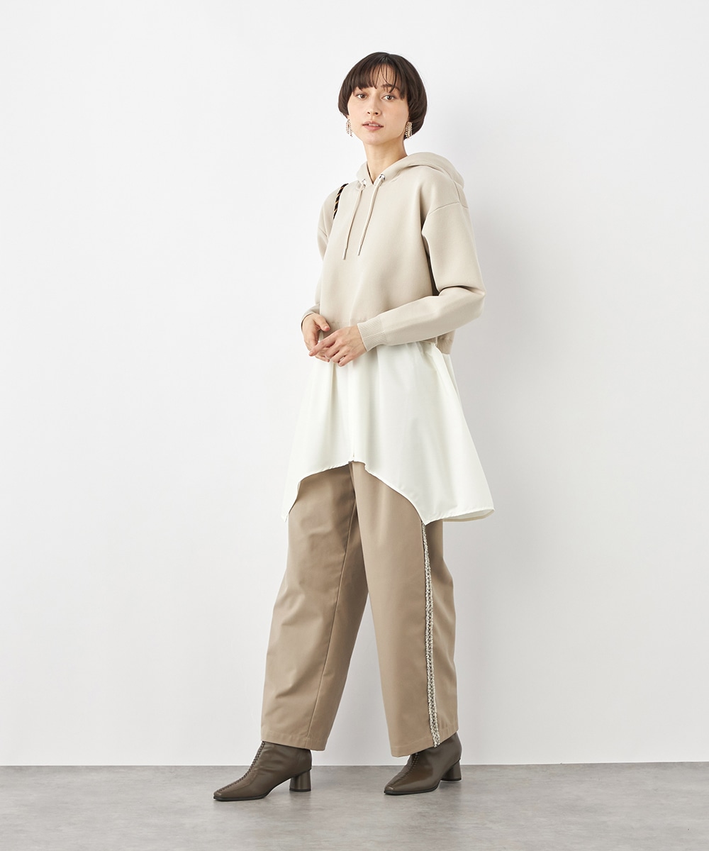 ニットパーカー×シャツのレイヤードルックを1枚で楽しめるドッキングデザインです。ドロップショルダーのゆったりとしたシルエットがトレンドのリラックス感を印象付けるポイント。ポリエステル素材を使用しており、重くなりがちなフードも軽やかな着心地に仕上がっています。