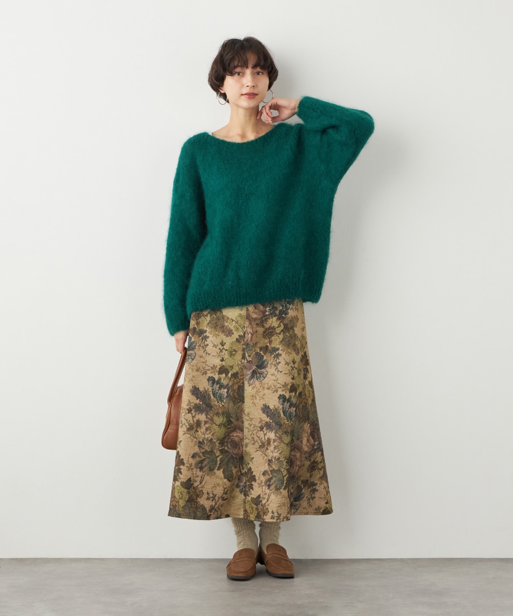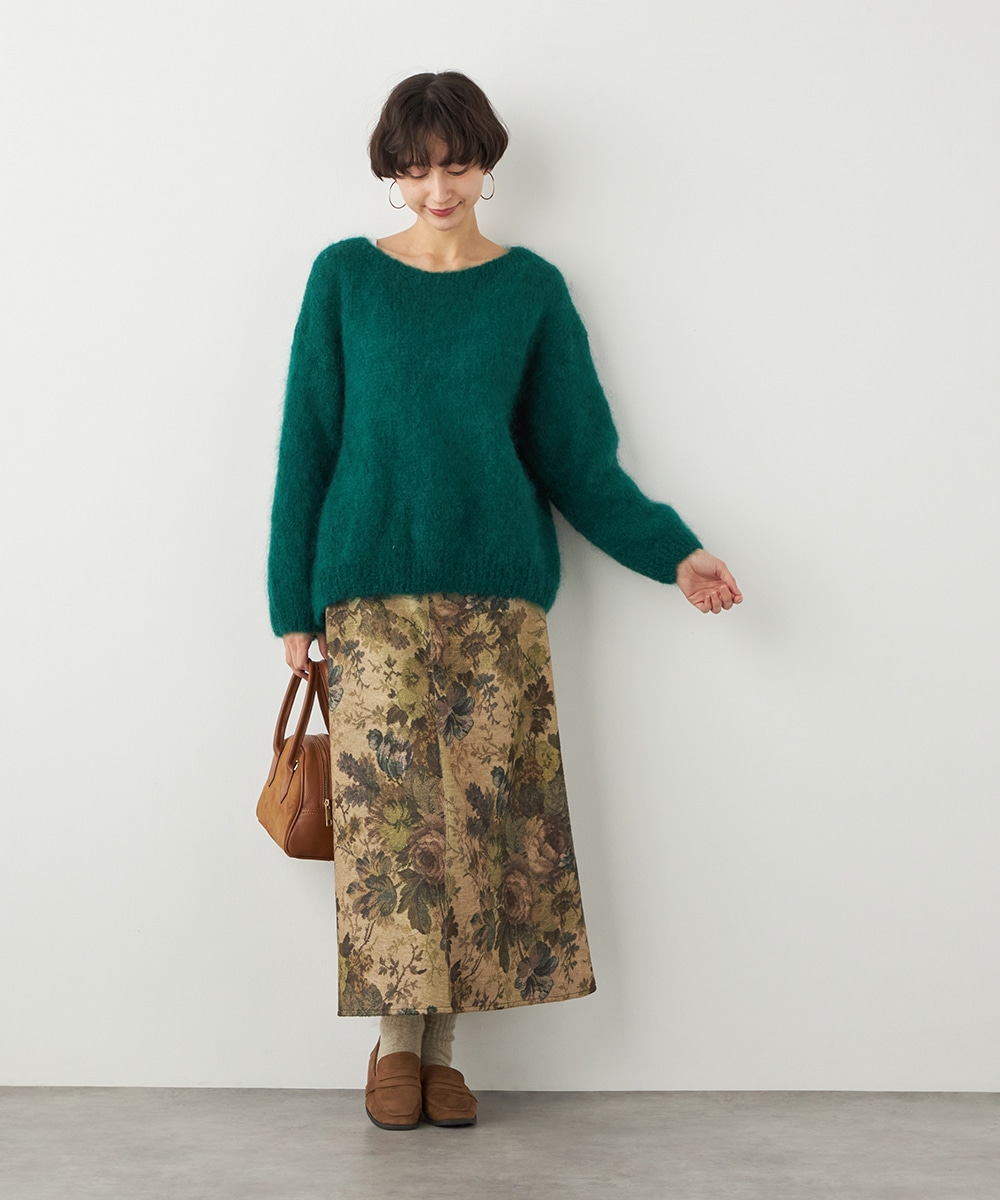 絶妙なルーズ感のあるシルエットがトレンドライクな印象です。ネックは広めにカッティングしており、フェイスラインがすっきりと見えます。長すぎない着丈で着こなしやすく、さまざまなボトムスと好相性。コーディネートの主役としても脇役としても便利なアイテムです。