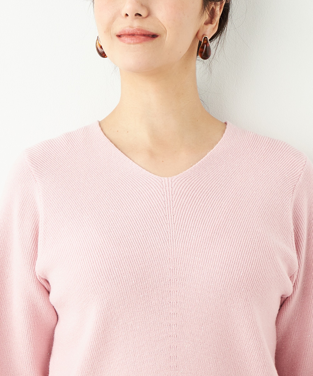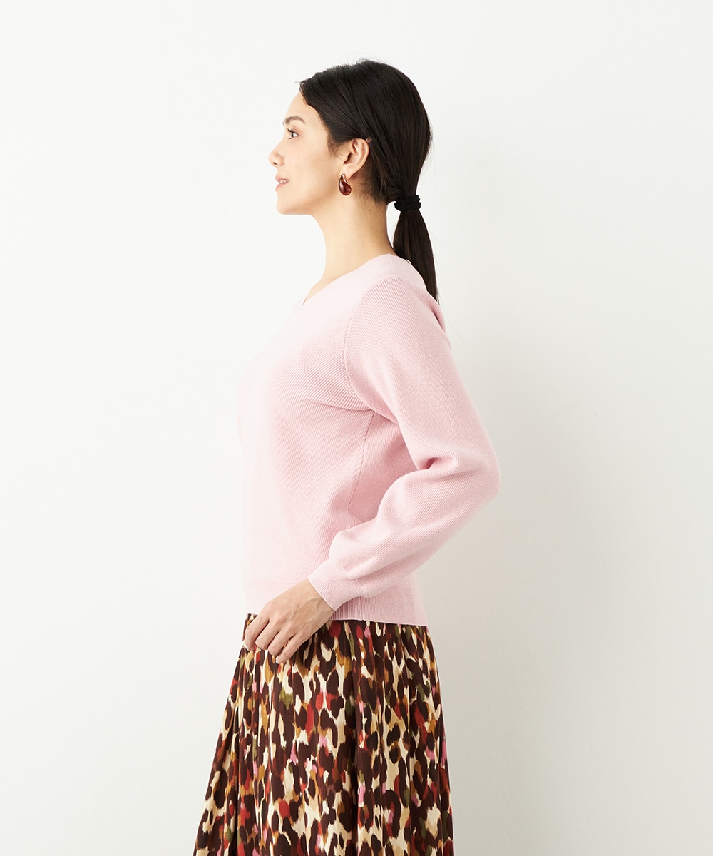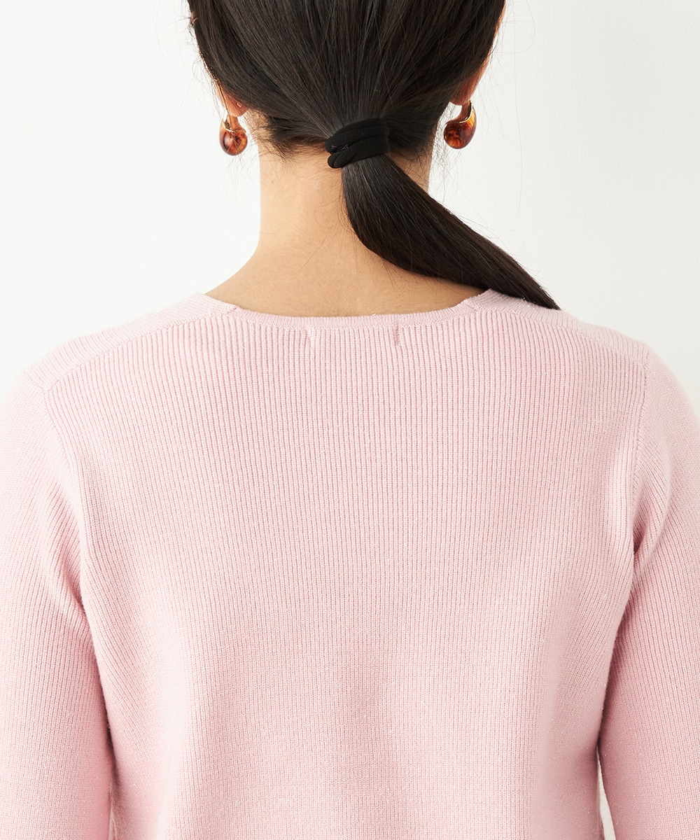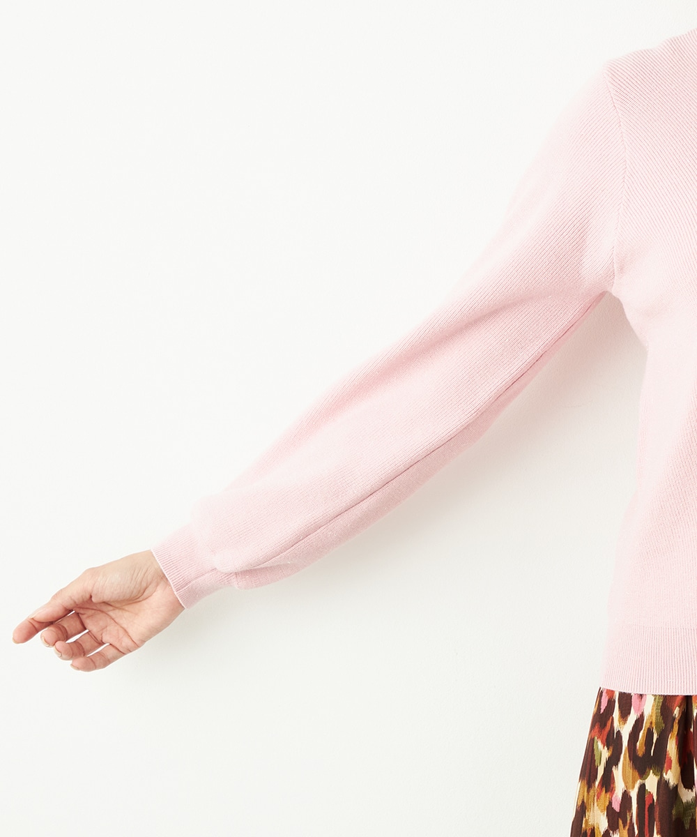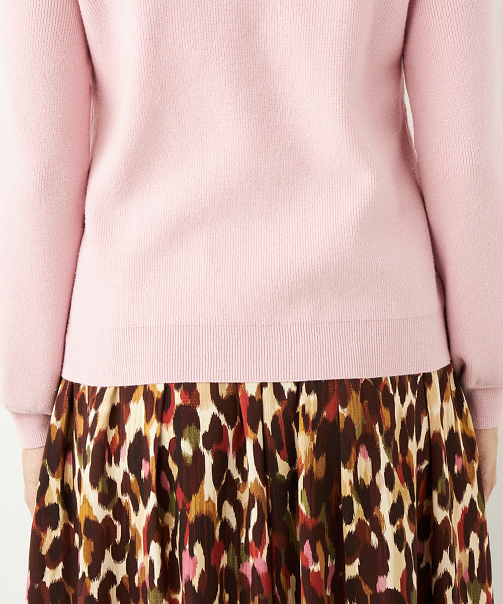 ソフトな風合いで繊細な煌めきが見られる糸を使用しています。シンプルなデザインが素材の持ち味を引き立てるポイントです。一部カラーはスカートと同カラーでご用意していますので、トップスインでベルトをするとワンピース風のセットアップコーディネートを楽しめます。