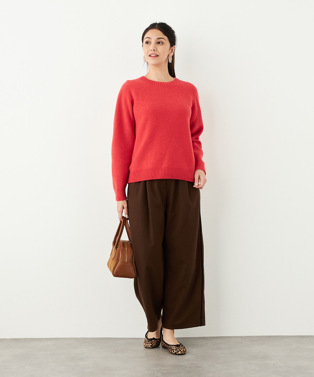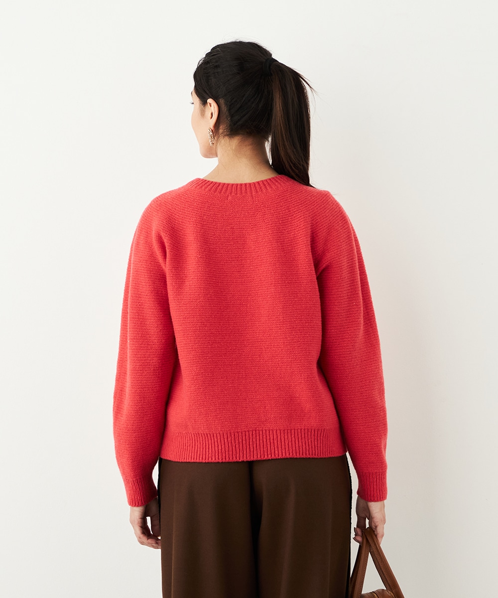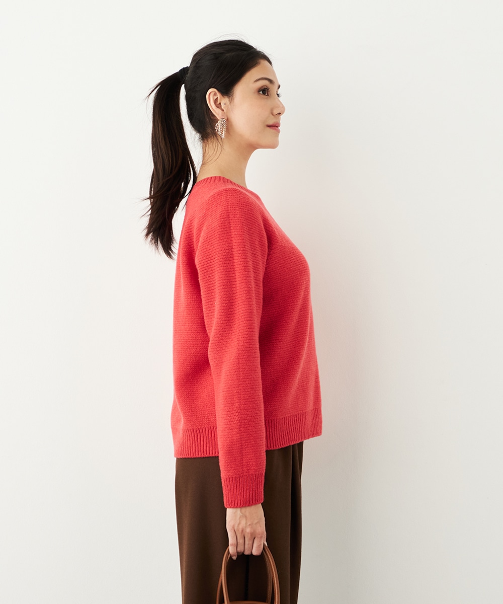 カシミヤをブレンドした柔らかなニット素材に、新潟県・魚沼の澄んだ水で特別な洗い加工を施し、格別の風合いを実現しました。着心地が良く、普段使いにもぴったりなアイテムです。装飾を省いたごくシンプルなデザインで、さまざまなコーディネートを楽しめます。シルエットは適度なゆとりで動きやすく、リラックス感のある1枚です。