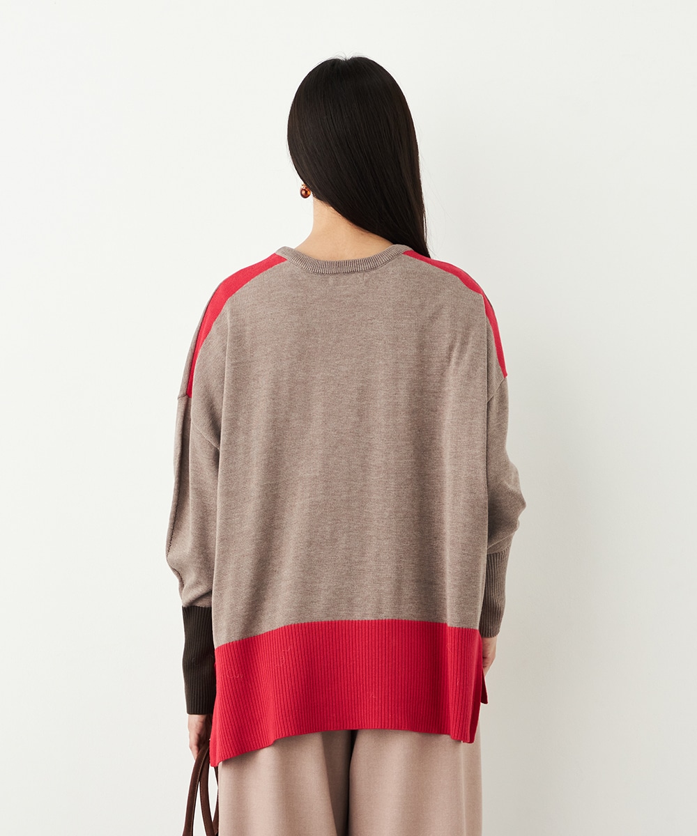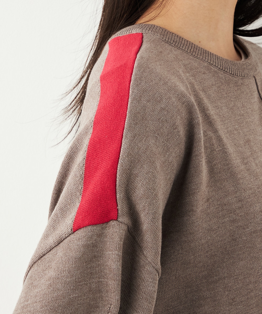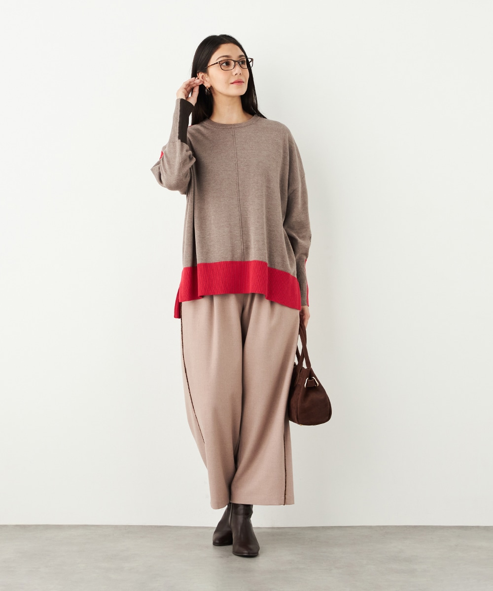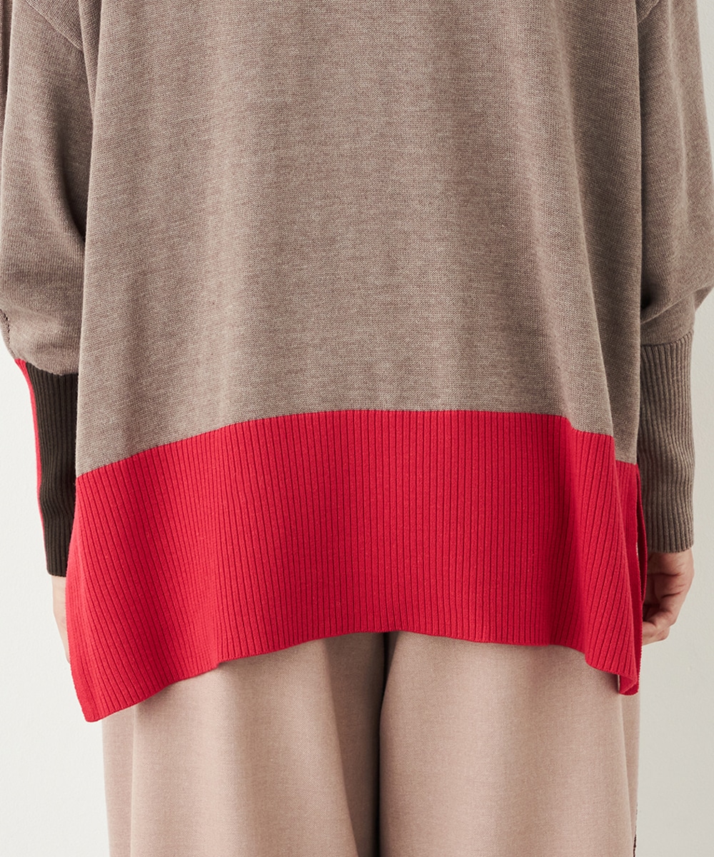 ベーシックカラーをベースに、部分的にアクセントカラーを取り入れています。存在感がありながらも主張しすぎず、品良く着こなせるデザインです。袖口のリブは長めにしたことで、手首の細さが強調されて女性らしさが際立ちます。着丈の前後差やサイドスリットもこだわりのポイントです。