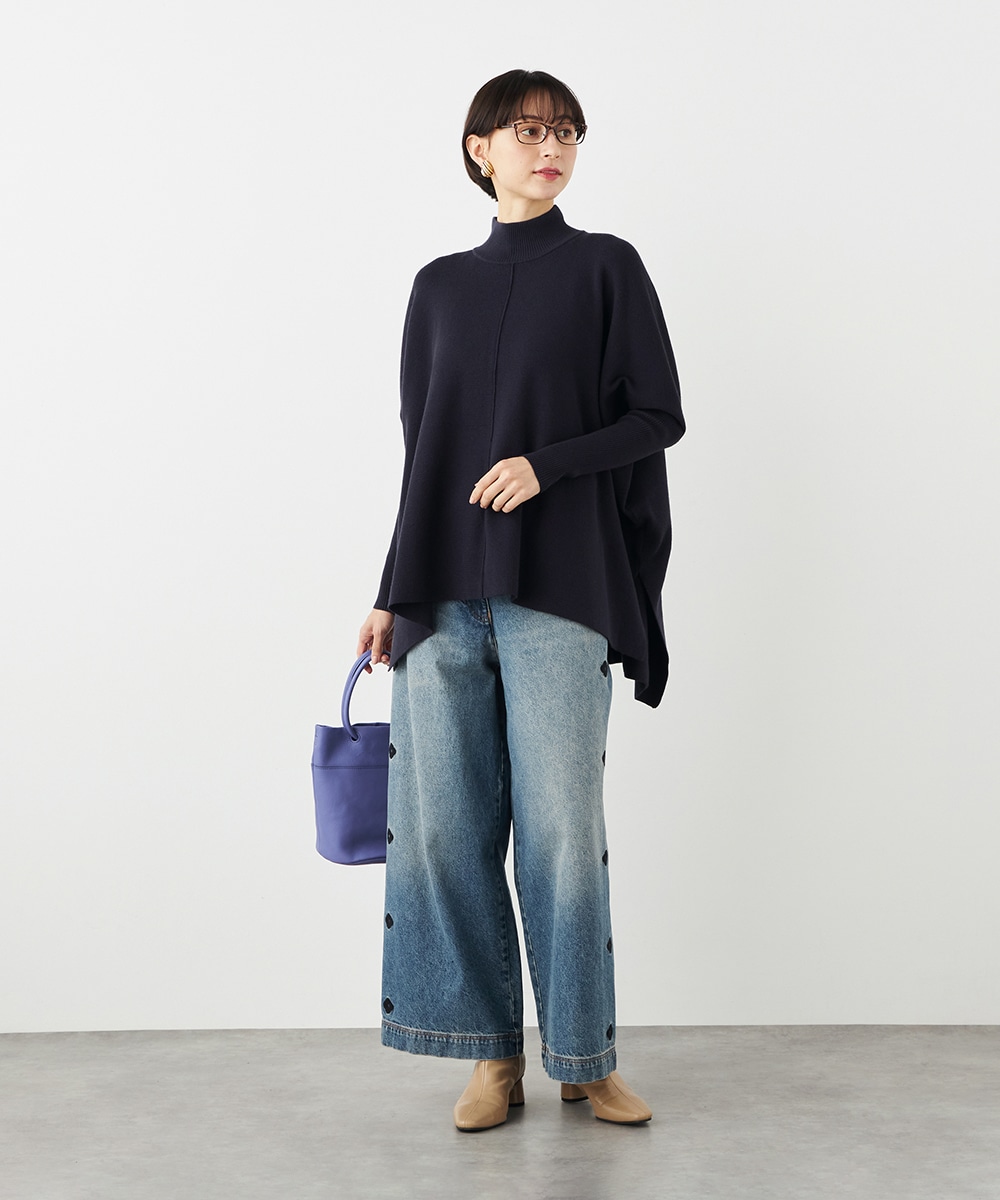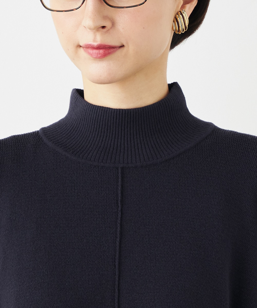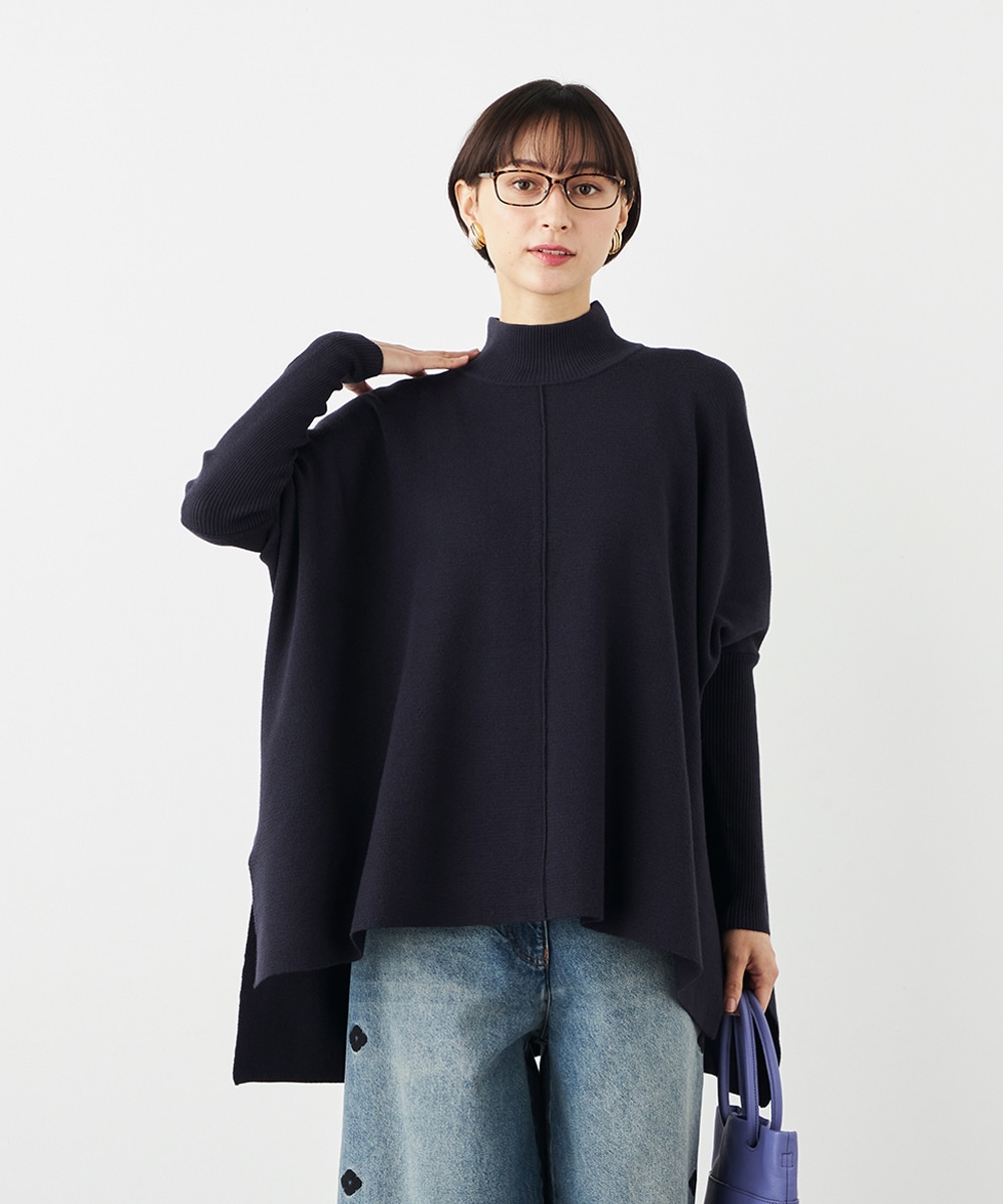 袖のリブを長めにしたことにより、すっきりと着こなせてコートのインに合わせやすいのもポイントです。ソフトな編み地で動いた際の揺れ感がきれいに現れて、エレガントに着こなせます。顔映りの良いレッドと大人っぽくシックなネイビーのカラー。ボトムスはパンツを選ぶのがおすすめです。