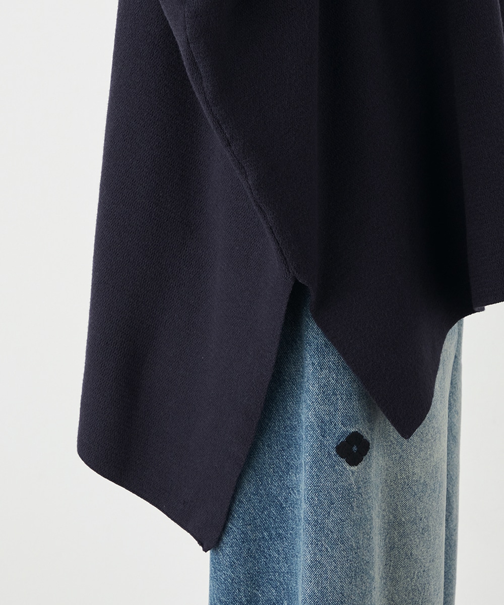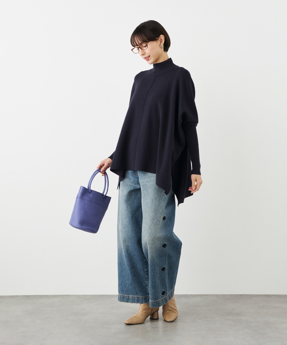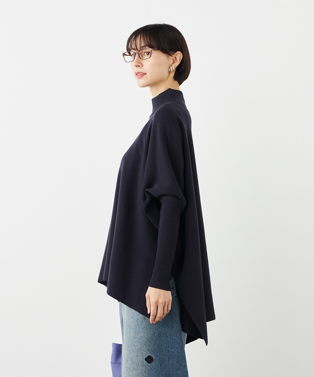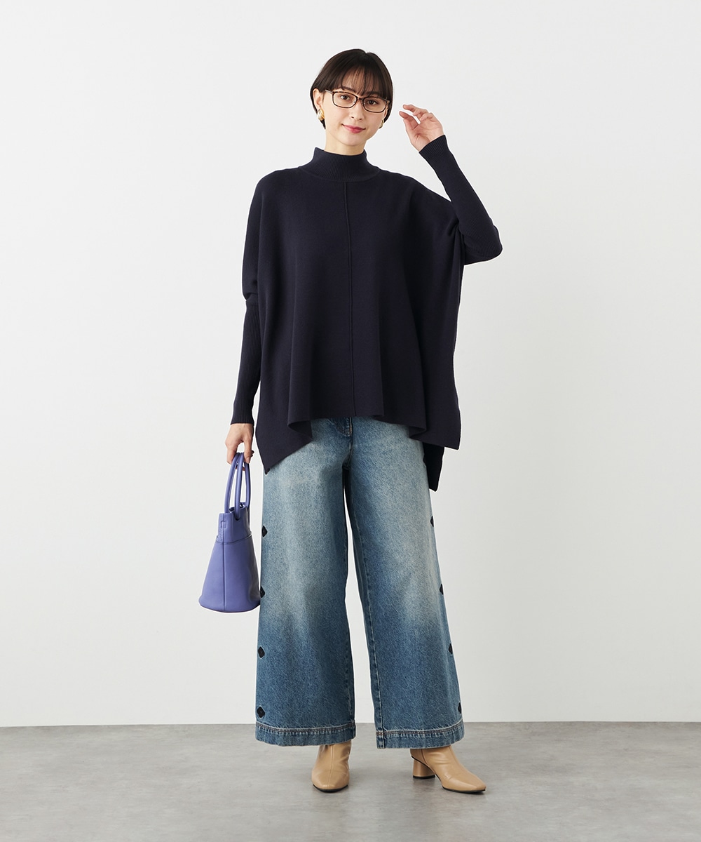 袖のリブを長めにしたことにより、すっきりと着こなせてコートのインに合わせやすいのもポイントです。ソフトな編み地で動いた際の揺れ感がきれいに現れて、エレガントに着こなせます。顔映りの良いレッドと大人っぽくシックなネイビーのカラー。ボトムスはパンツを選ぶのがおすすめです。