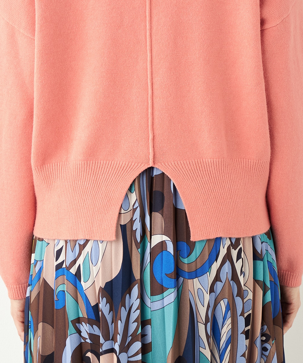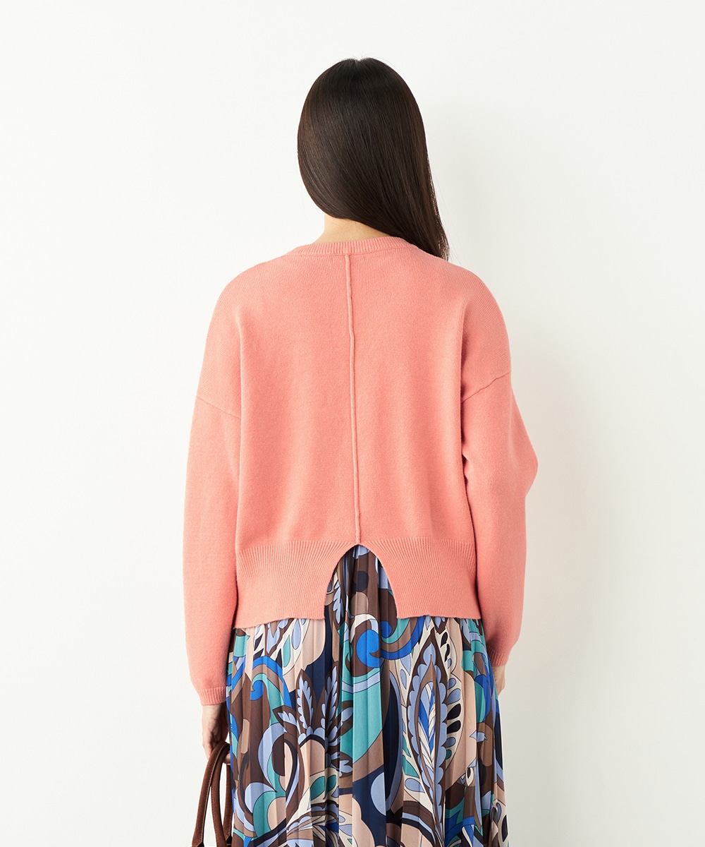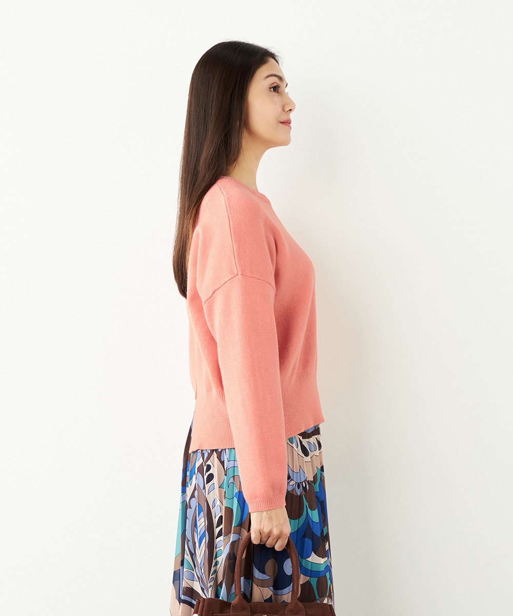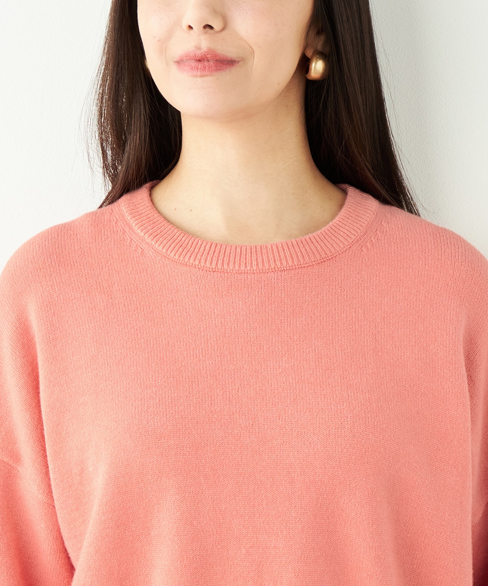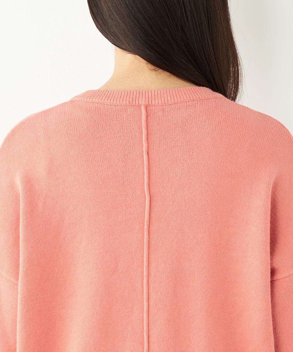 ドロップショルダーのゆったりとしたシルエットながらも、短めの丈感でコンパクトにまとまっています。バックの裾にはスリットがデザインされて印象的な後ろ姿に仕上がります。シンプルで着こなしやすく、デイリーコーディネートにも重宝。柔らかく心地よい肌触りも魅力です。