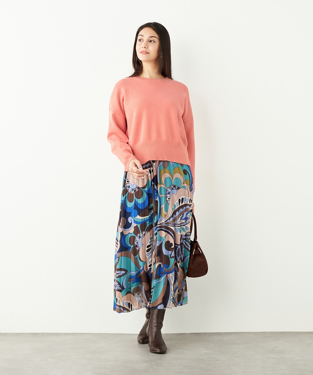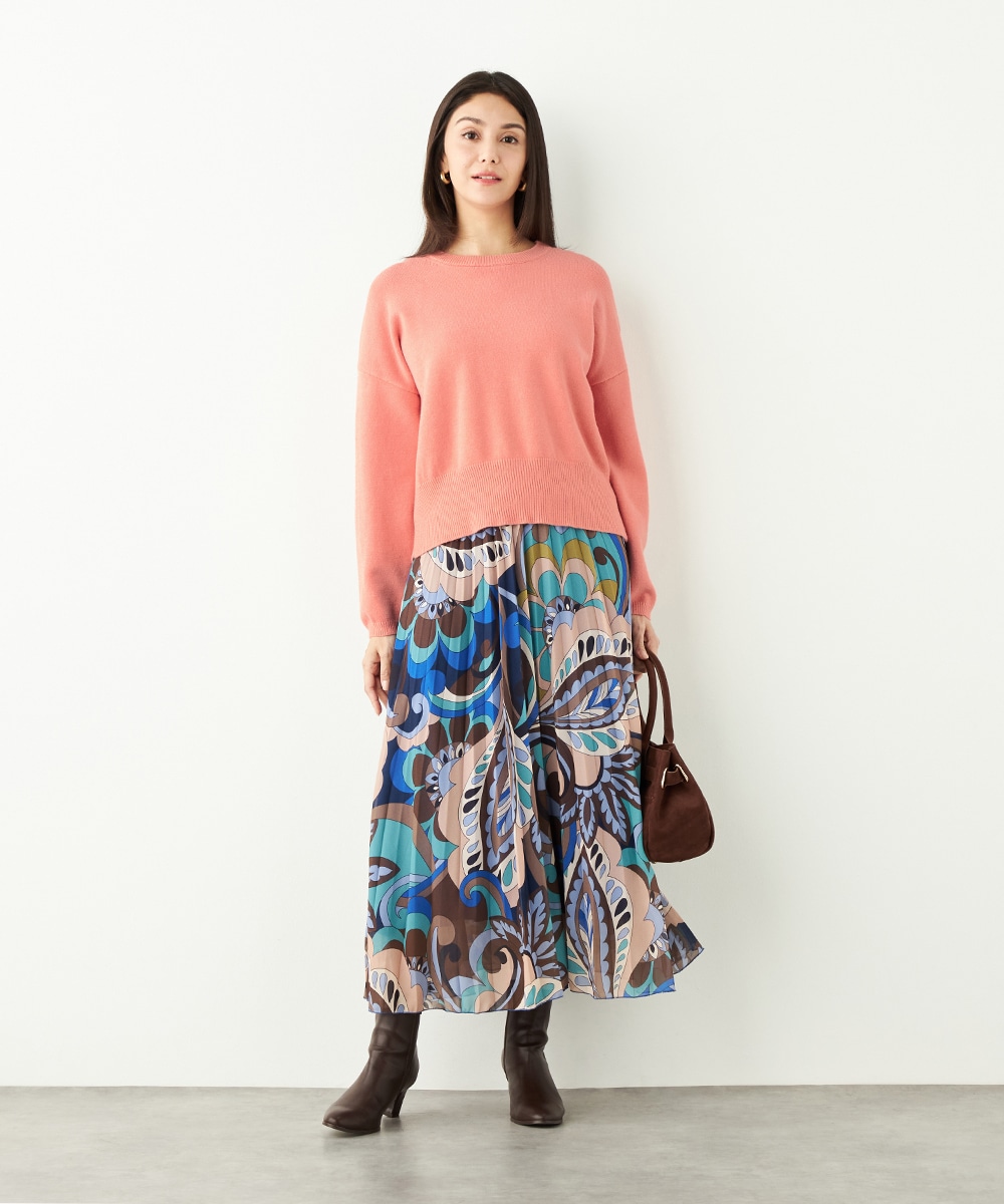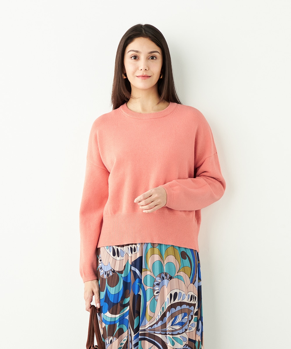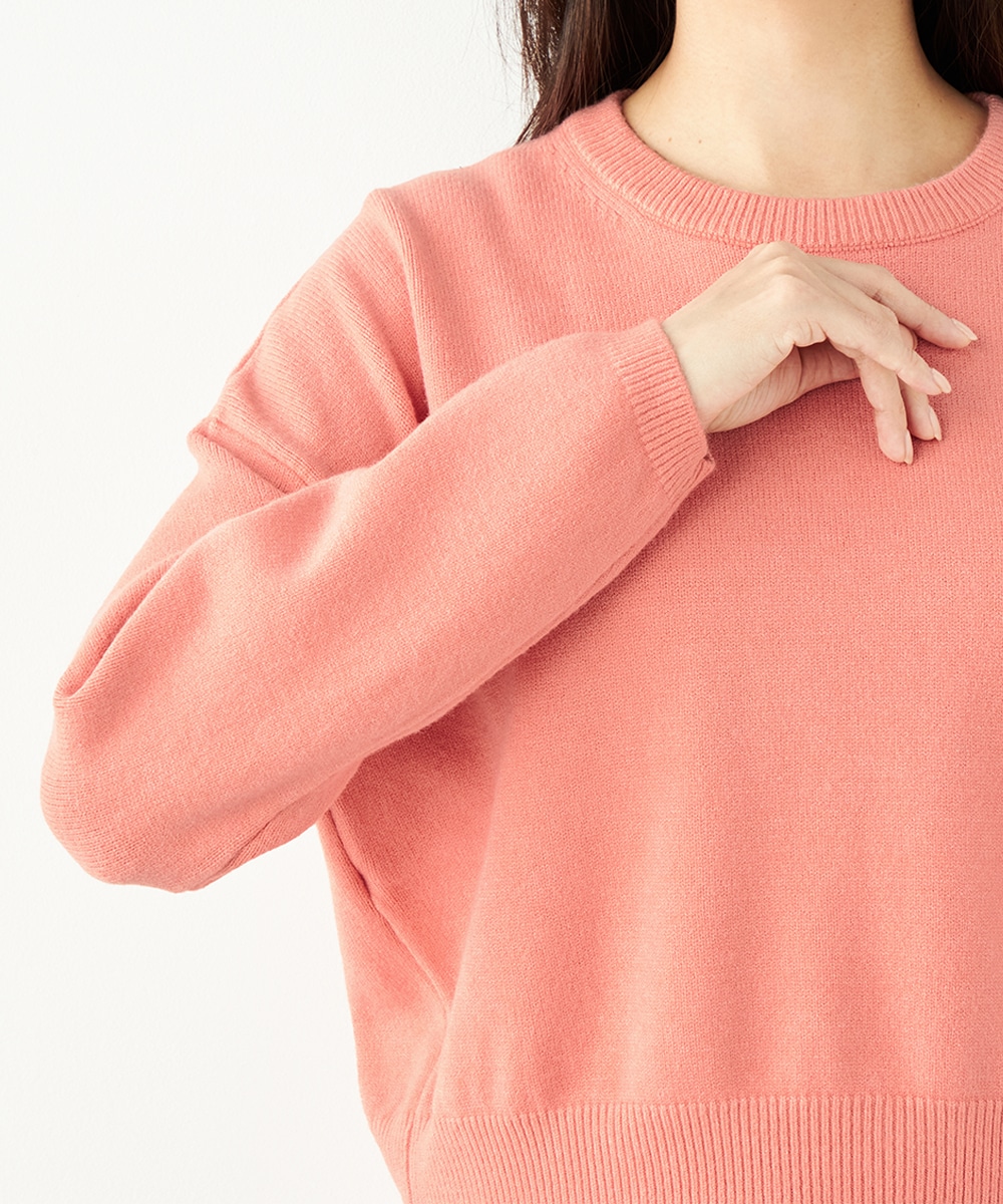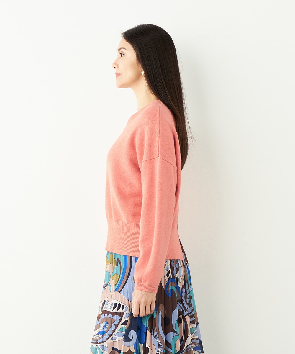 ドロップショルダーのゆったりとしたシルエットながらも、短めの丈感でコンパクトにまとまっています。バックの裾にはスリットがデザインされて印象的な後ろ姿に仕上がります。シンプルで着こなしやすく、デイリーコーディネートにも重宝。柔らかく心地よい肌触りも魅力です。